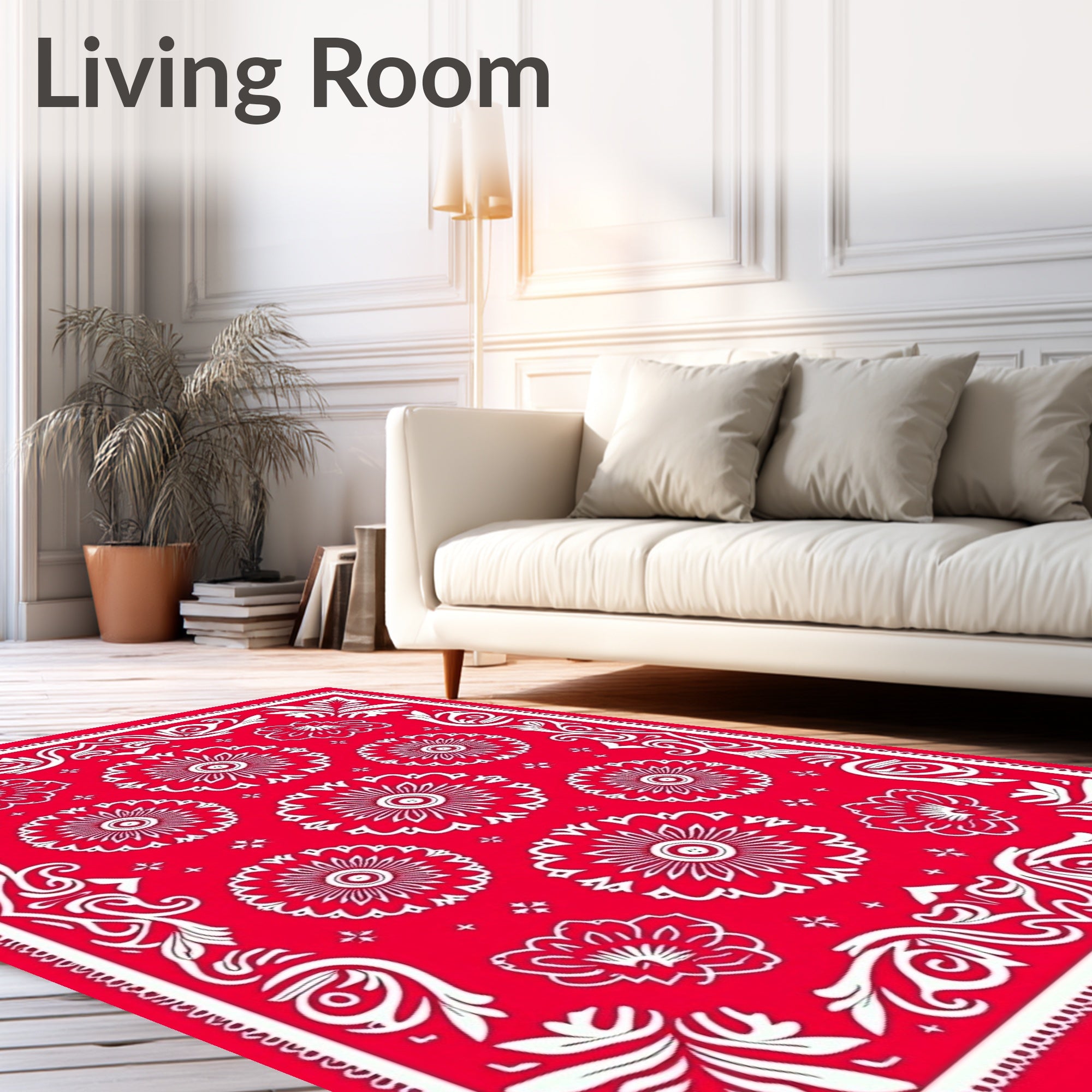 Ultra Soft Area Rug, Non Slip, Stain Resistant, Washable Area Rugs for Living Room, Bedroom, Nordic Inspired Starburst Medallion and Botanical Scrollwork Design(Red) Overview: