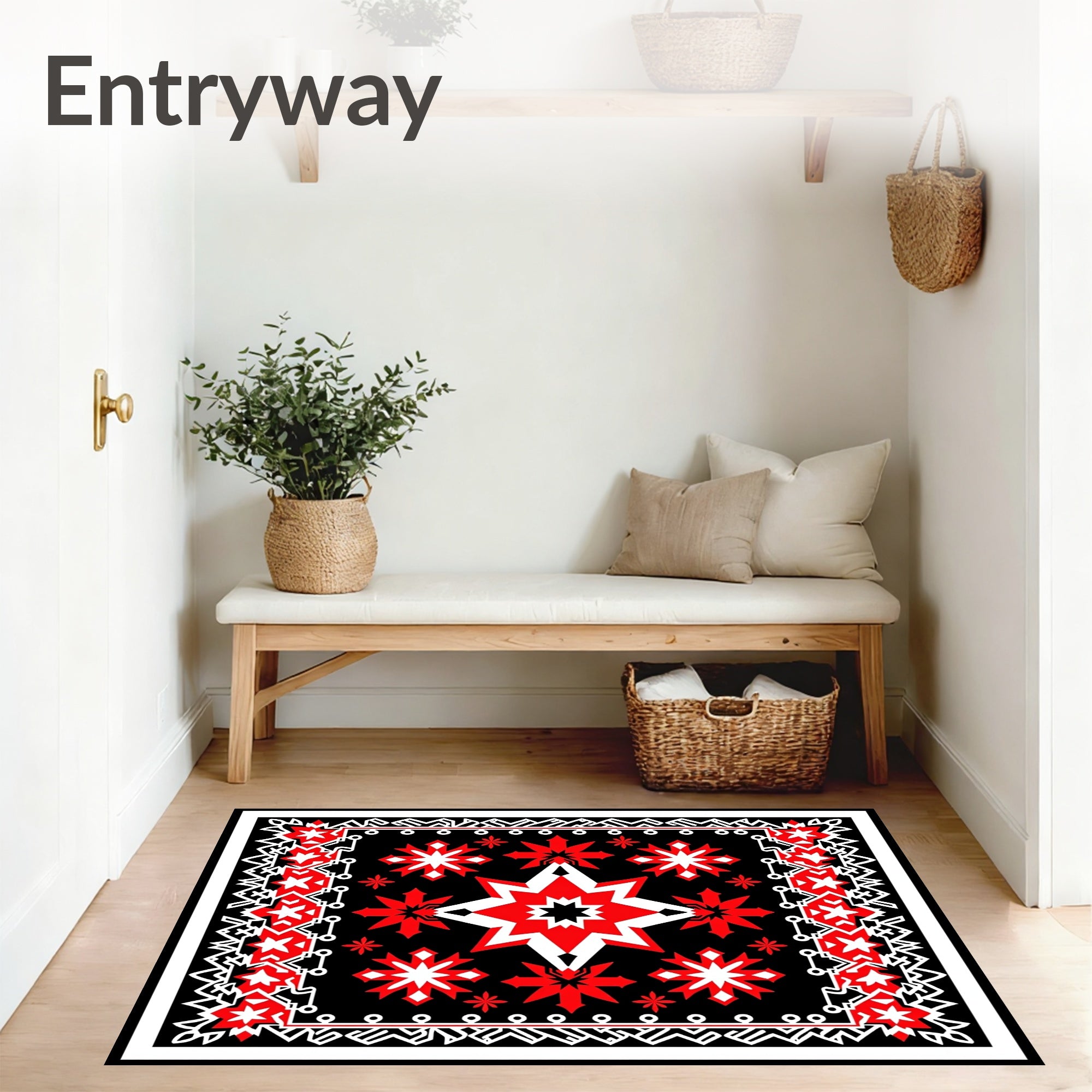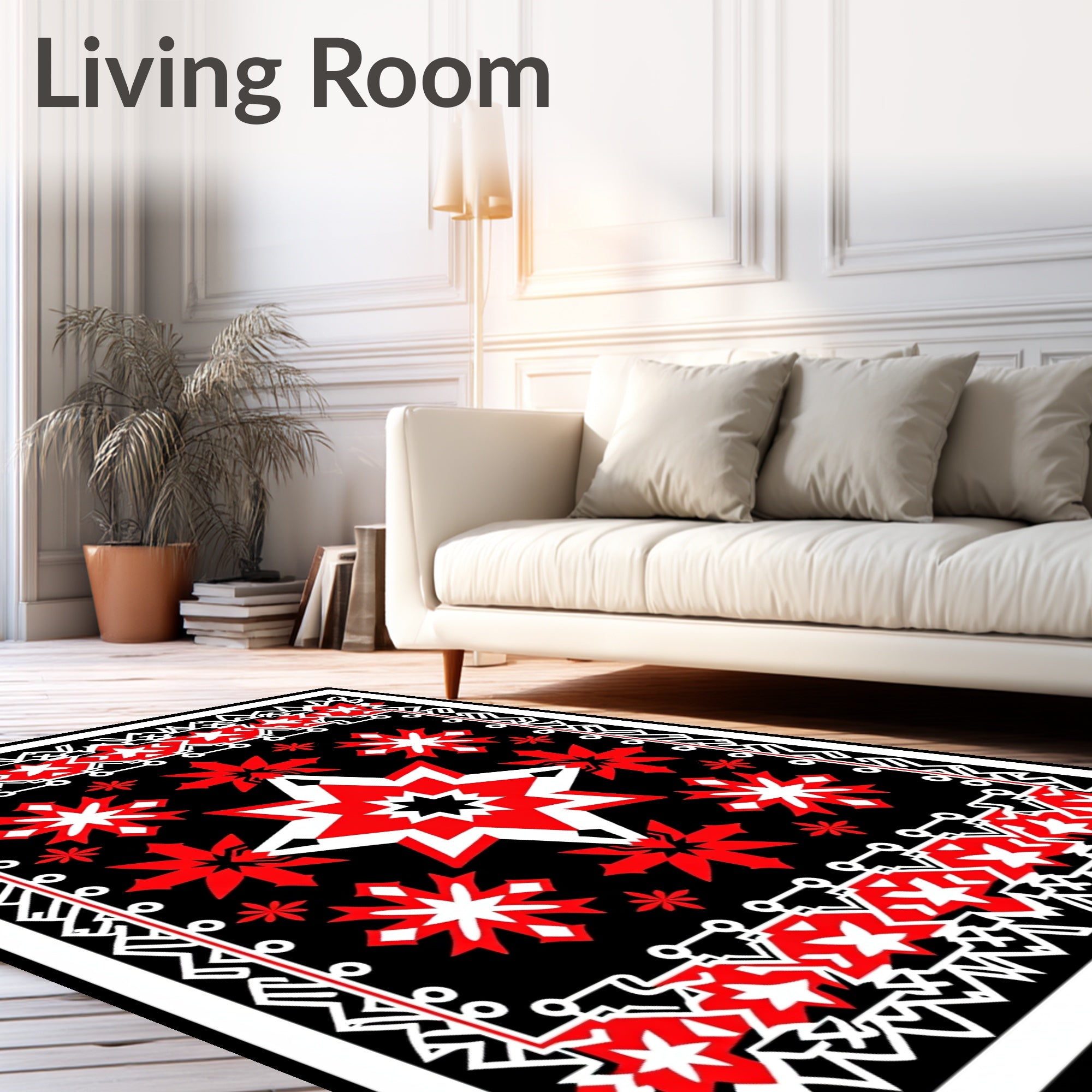 Flatwoven High Traffic Area Rug, Nordic Yuletide, Non Slip, Stain Resistant, Washable Area Rugs for Living Room, Bedroom (Red) Overview: