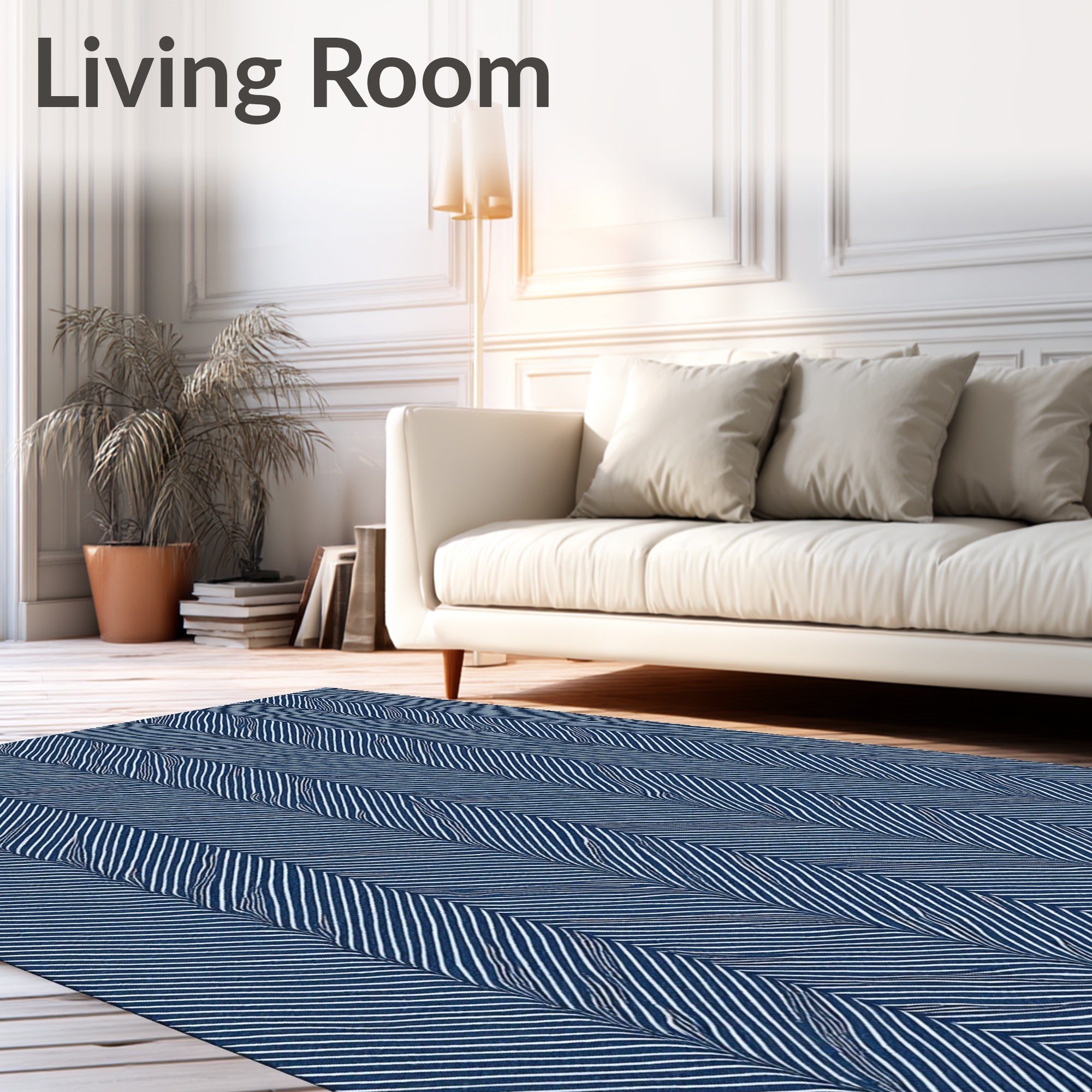 Ultra Soft Area Rug, Non Slip, Stain Resistant, Washable Area Rugs for Living Room, Bedroom, Nordic Zigzag Herringbone Crosshatch Contemporary Design(Blue) Overview: