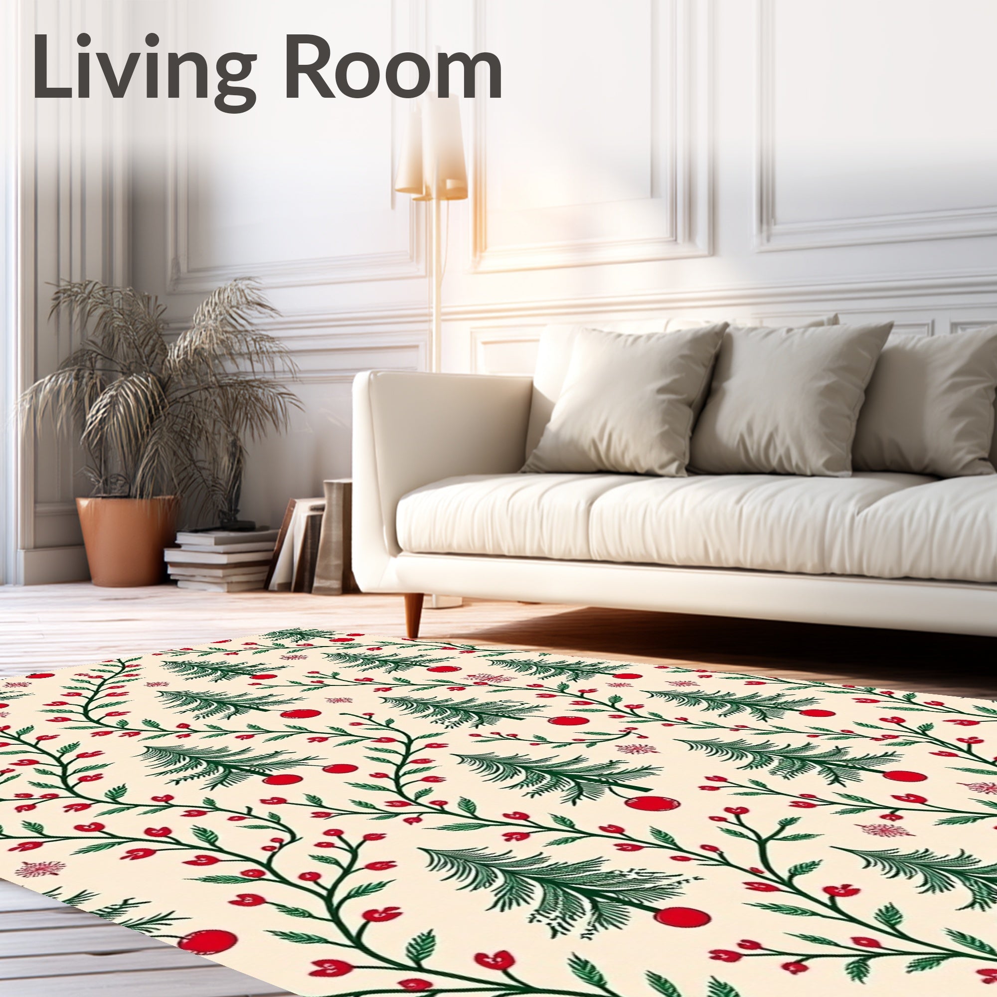 Flatwoven High Traffic Area Rug, North Pole Magic Spruce Walkway Embellished Bauble Accents, Non Slip, Stain Resistant, Washable Area Rugs for Living Room, Bedroom (Beige) Overview: