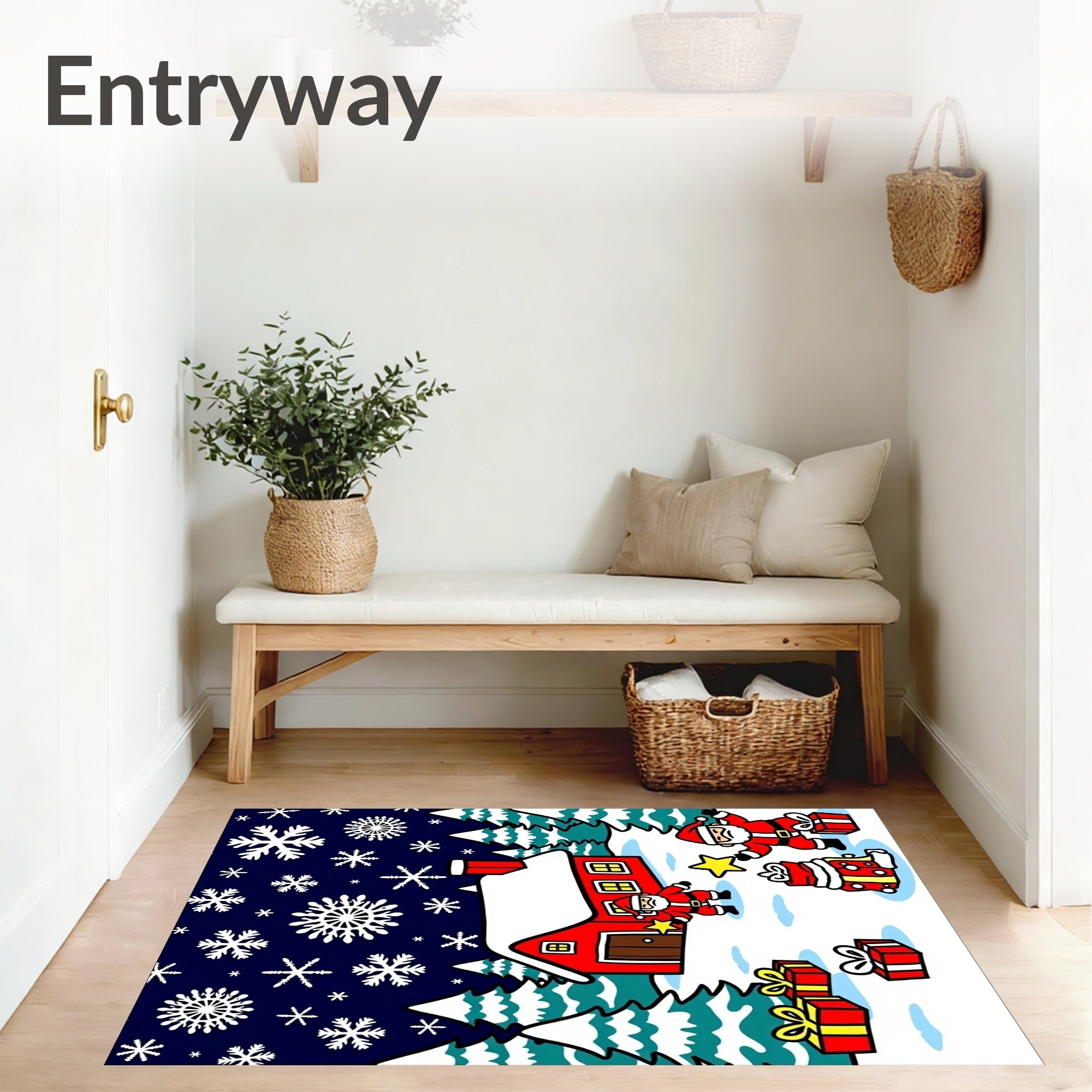 Ultra Soft Area Rug, Non Slip, Stain Resistant, Washable Area Rugs for Living Room, Bedroom, North Pole Workshop Magical Winter Wonderland Floor Covering(Red) Overview: