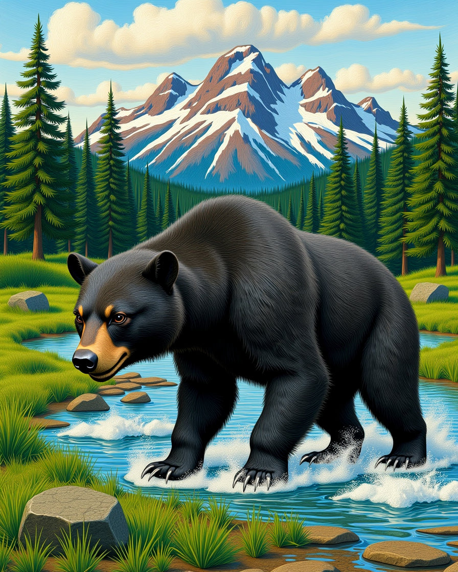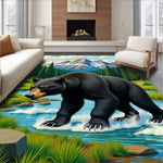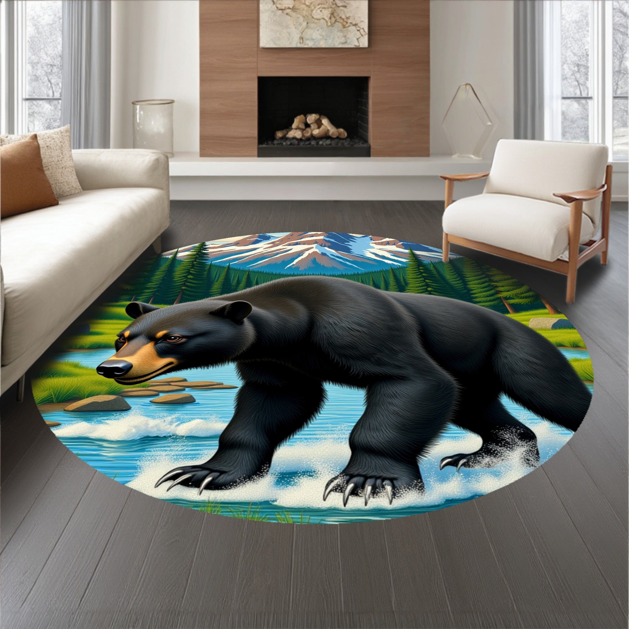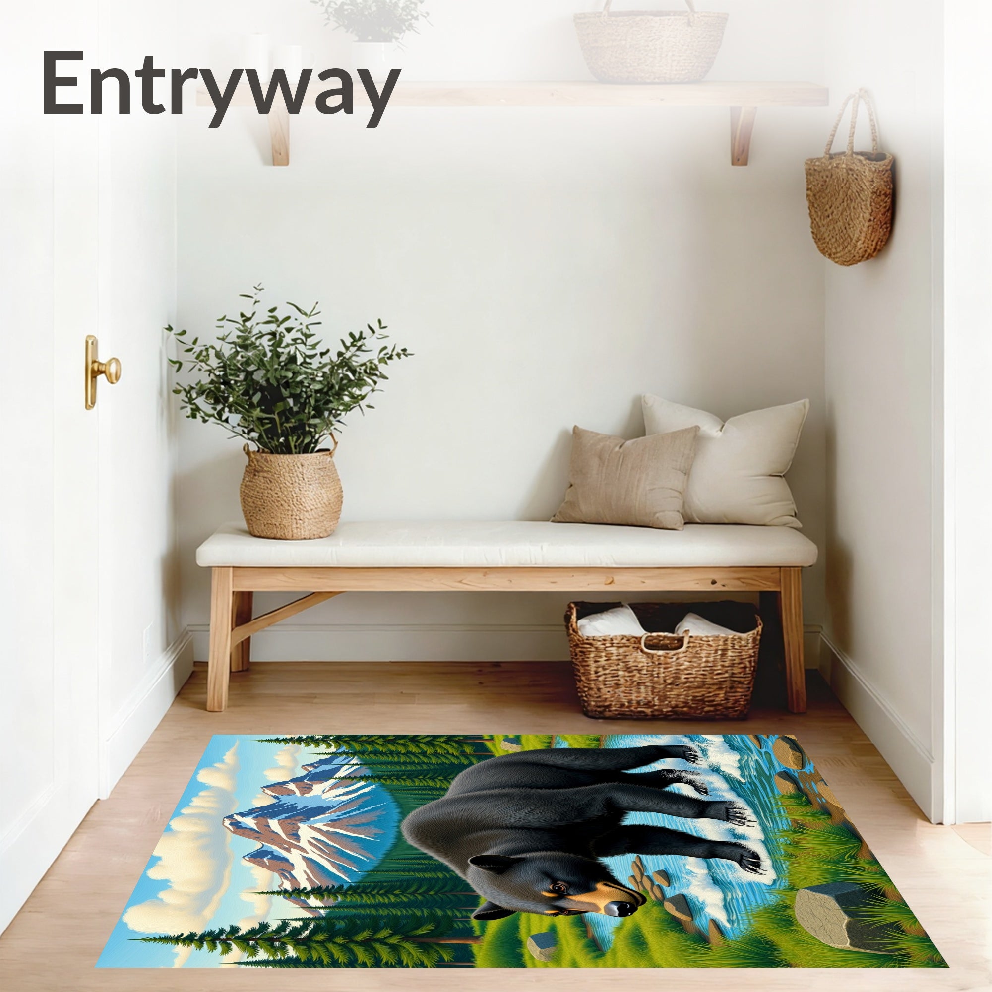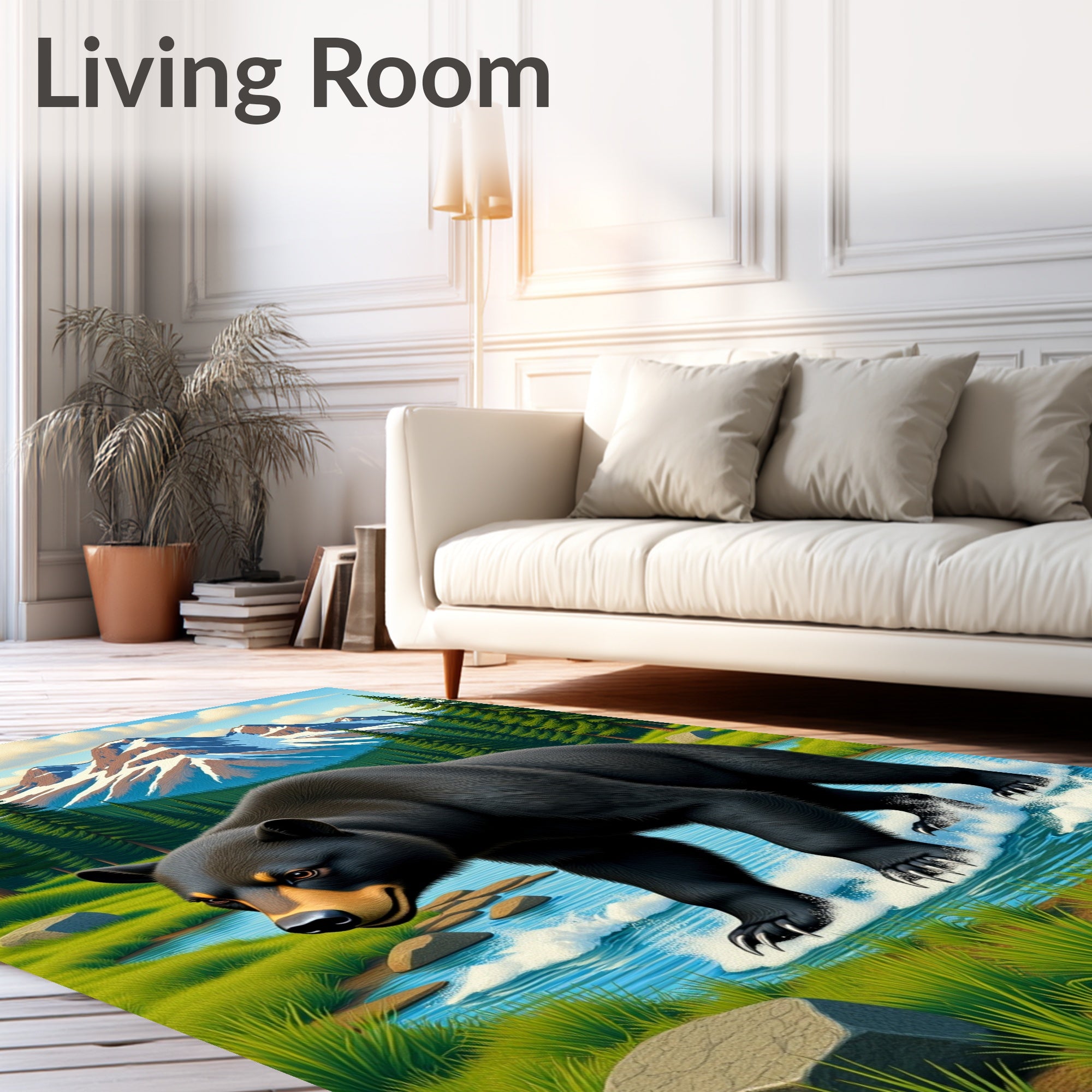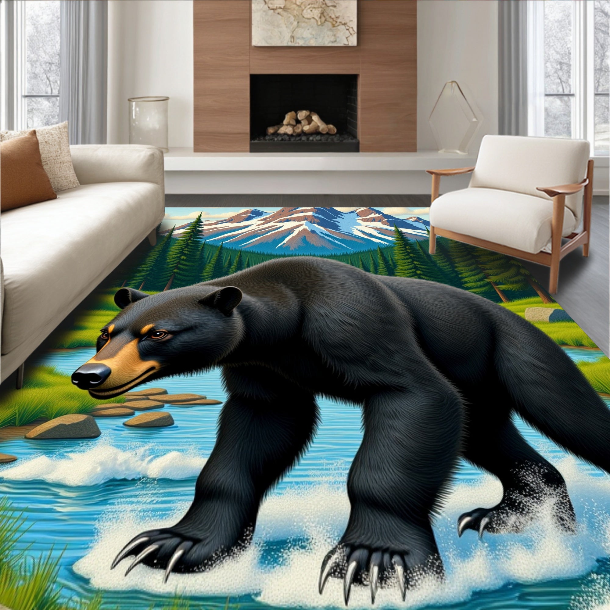Ultra Soft Area Rug, Non Slip, Stain Resistant, Washable Area Rugs for Living Room, Bedroom, North Woods Wandering Bruin Expedition Trail Adornment(Black) Overview: