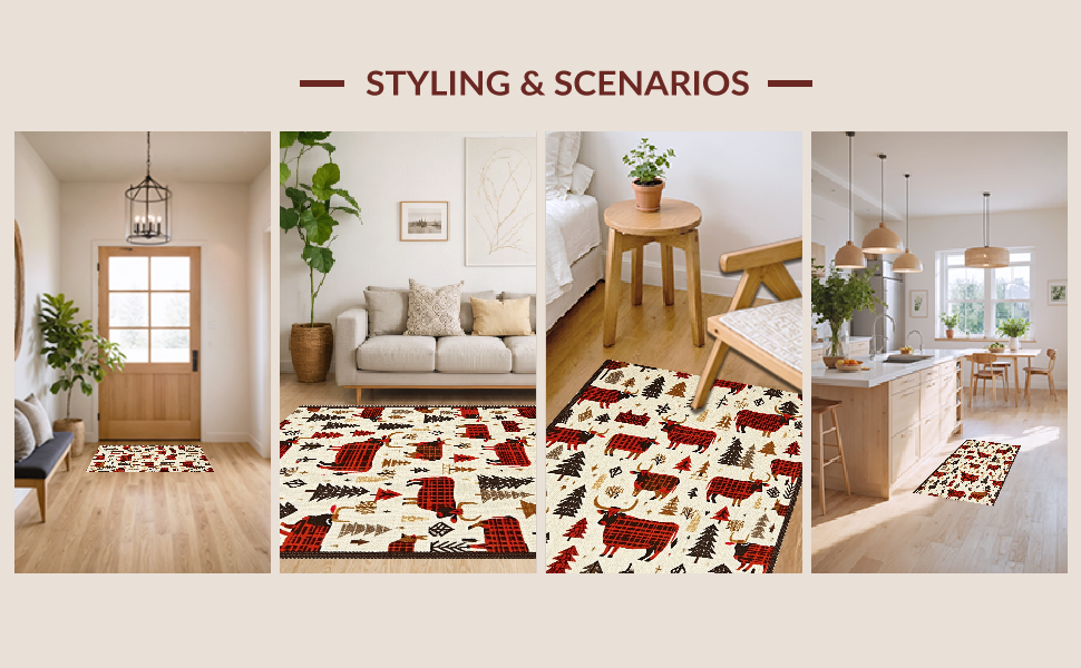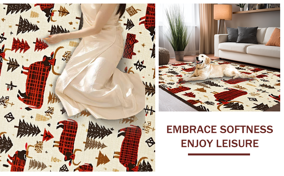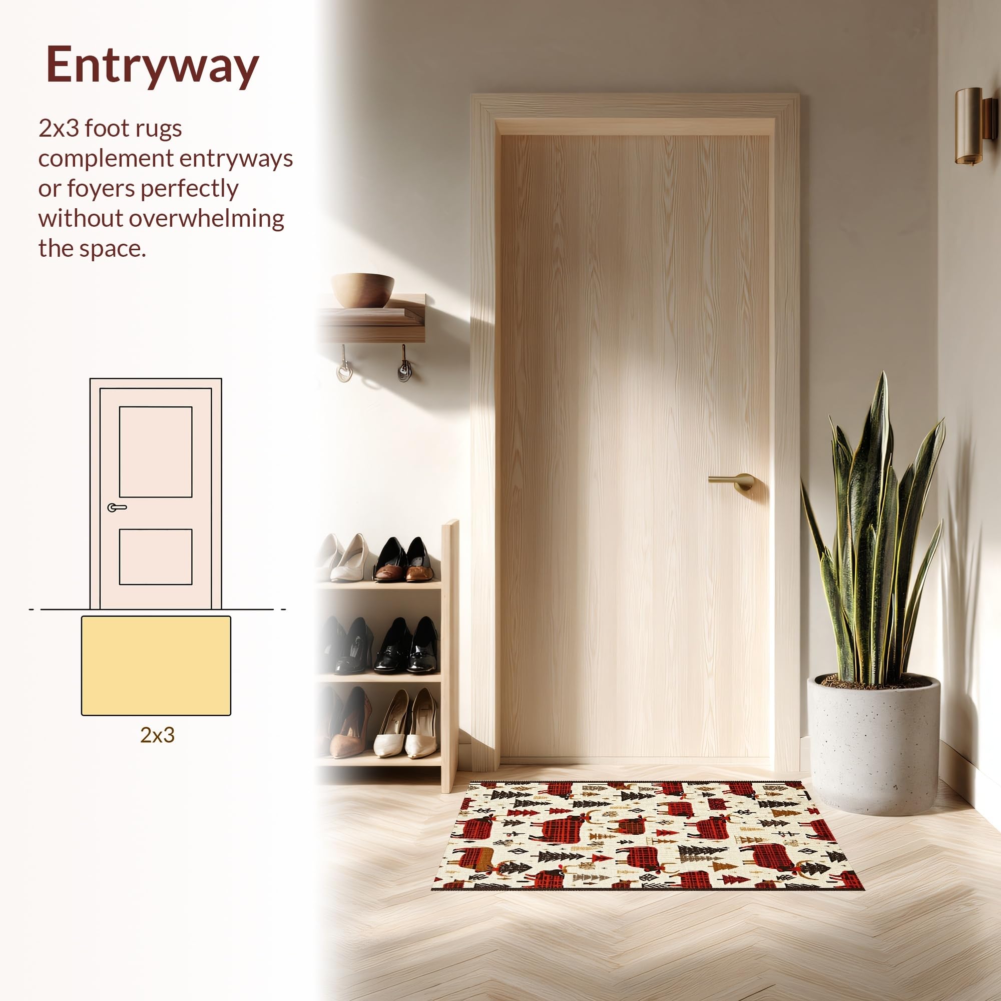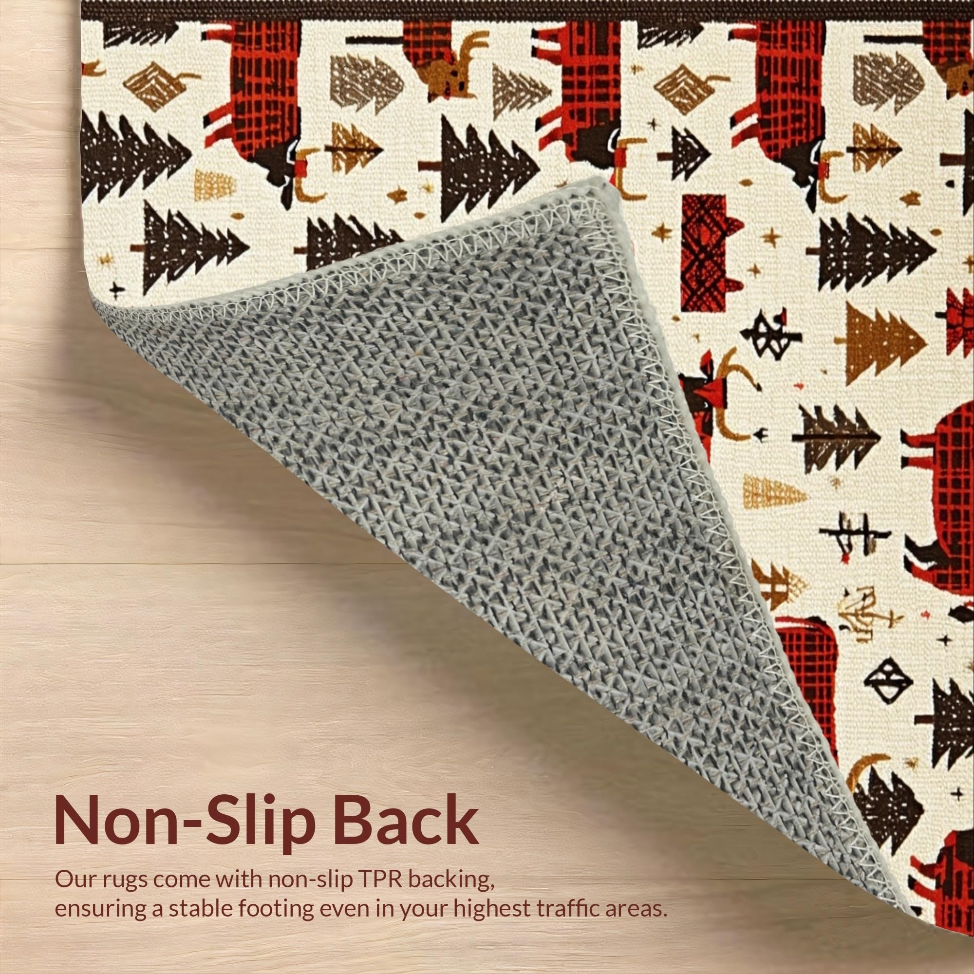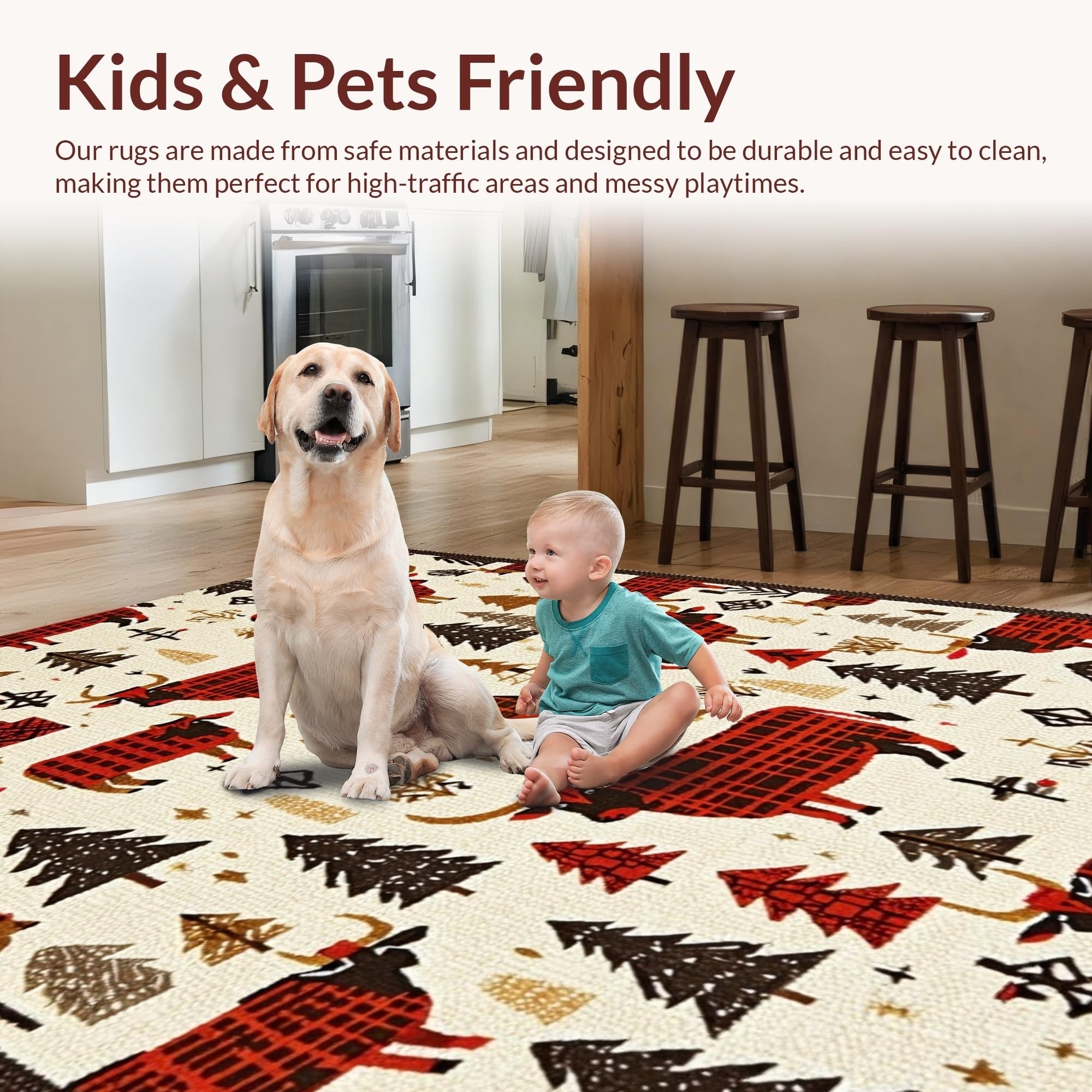 Ultra Soft Area Rug, Non Slip, Stain Resistant, Washable Area Rugs for Living Room, Bedroom, Nostalgic Countryside Festive Theme(Beige) Overview: