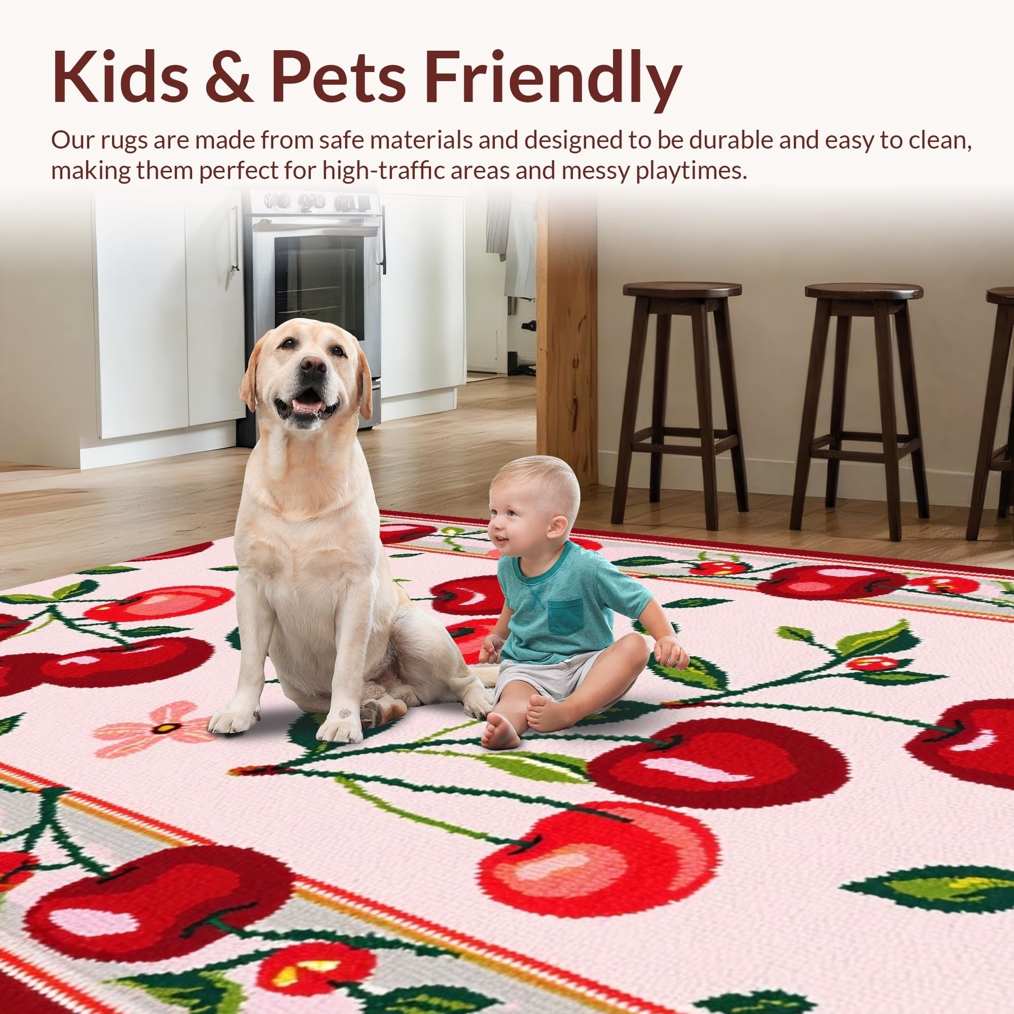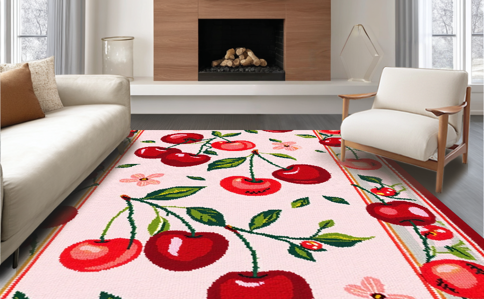 Ultra Soft Area Rug, Non Slip, Stain Resistant, Washable Area Rugs for Living Room, Bedroom, Nostalgic Red Playful Theme(Red) Overview: