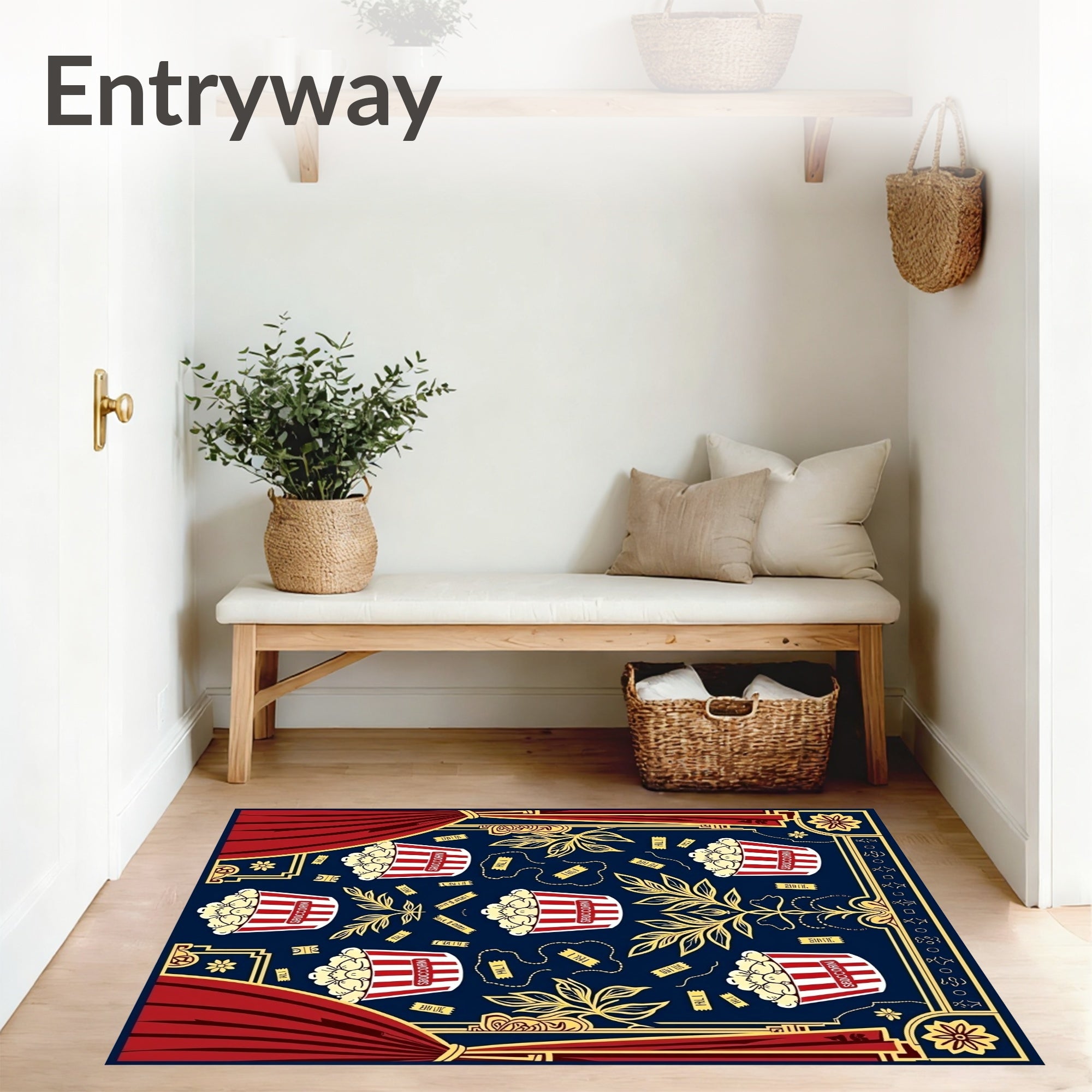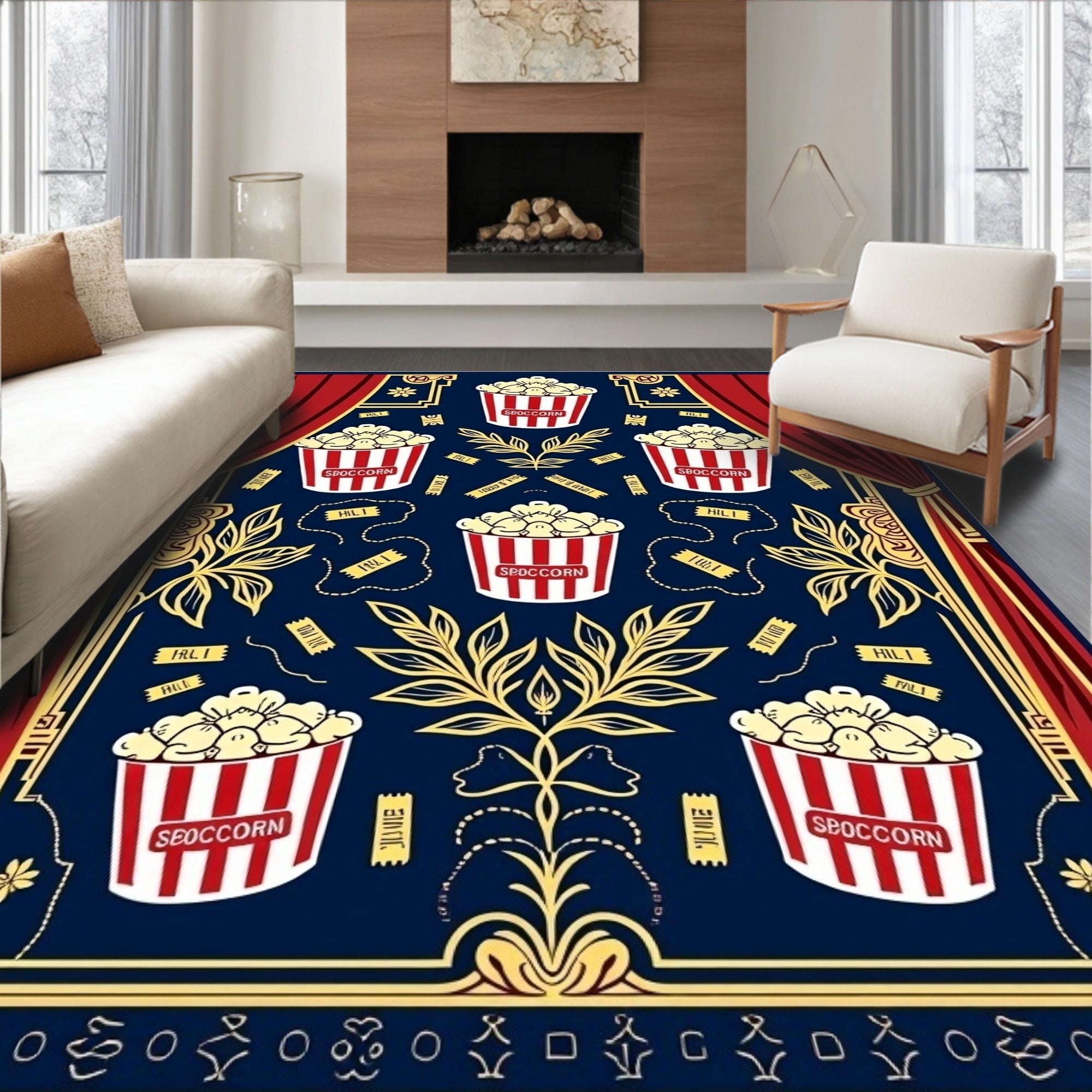 Ultra Soft Area Rug, Non Slip, Stain Resistant, Washable Area Rugs for Living Room, Bedroom, Nostalgic Snack Circular Flooring Entertainment Hub Accent(Red) Overview: