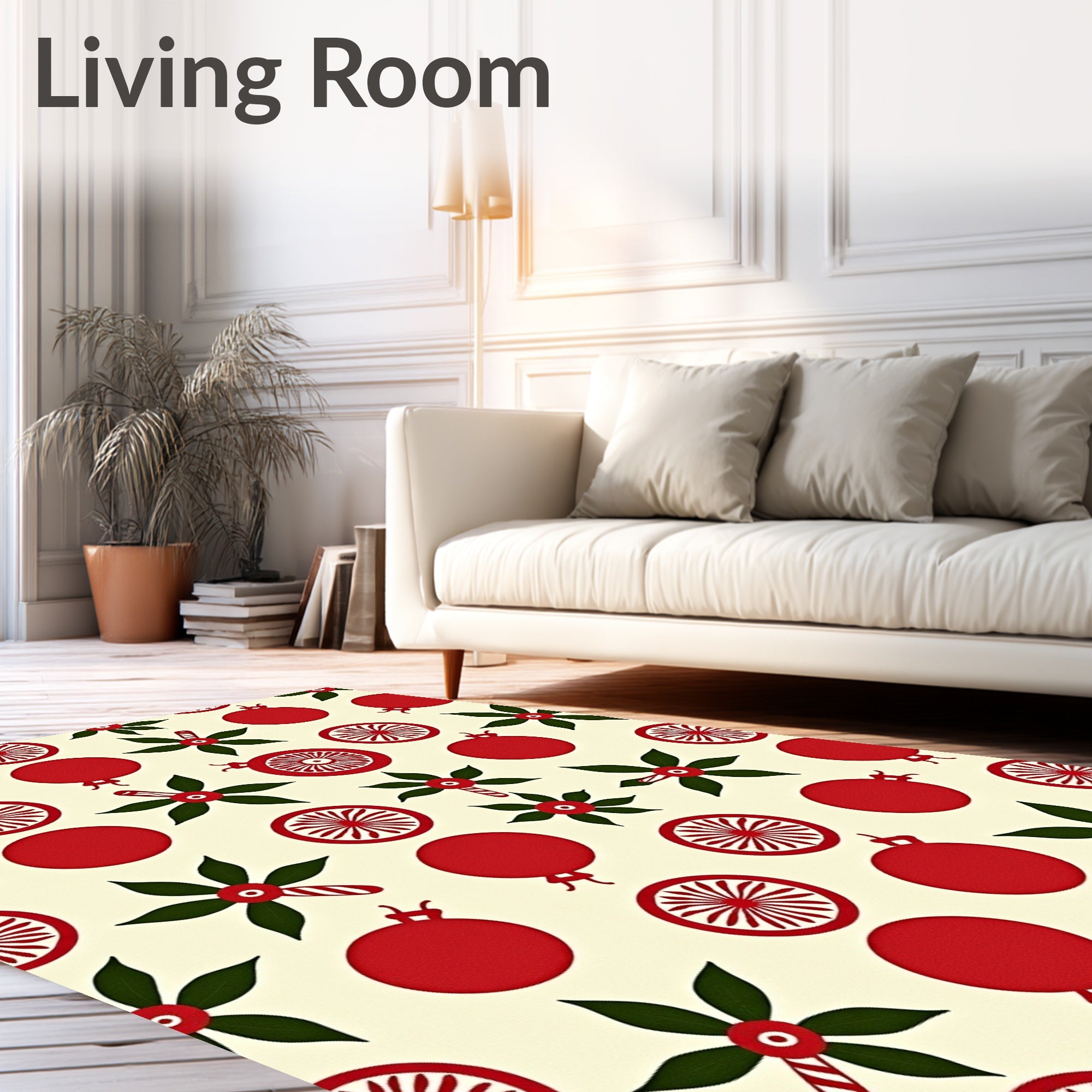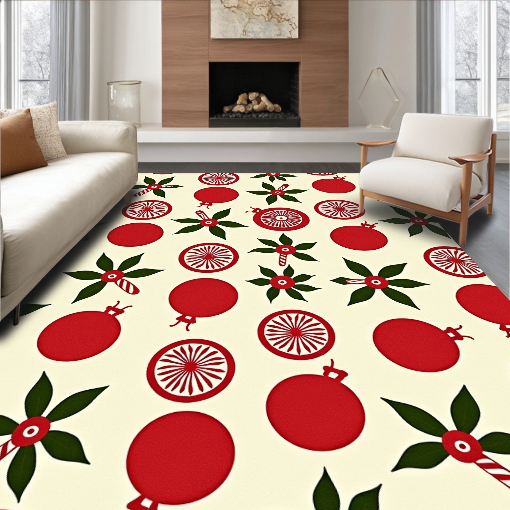 Flatwoven High Traffic Area Rug, Nostalgic Yuletide Collage Welcome, Non Slip, Stain Resistant, Washable Area Rugs for Living Room, Bedroom (Beige) Overview: