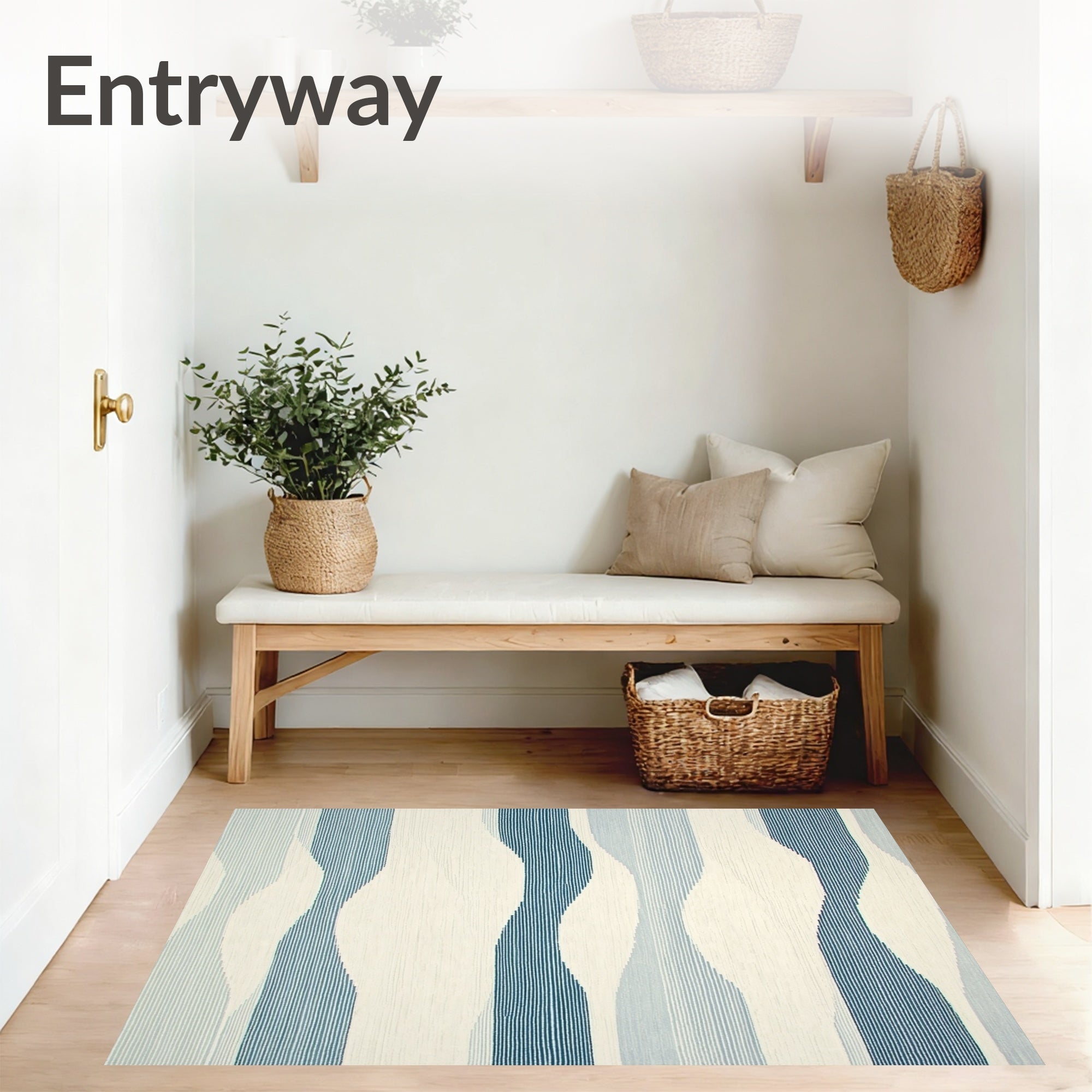 Ultra Soft Area Rug, Non Slip, Stain Resistant, Washable Area Rugs for Living Room, Bedroom, Ocean Breeze Striped Easy Care Non Shedding Patio(Beige) Overview: