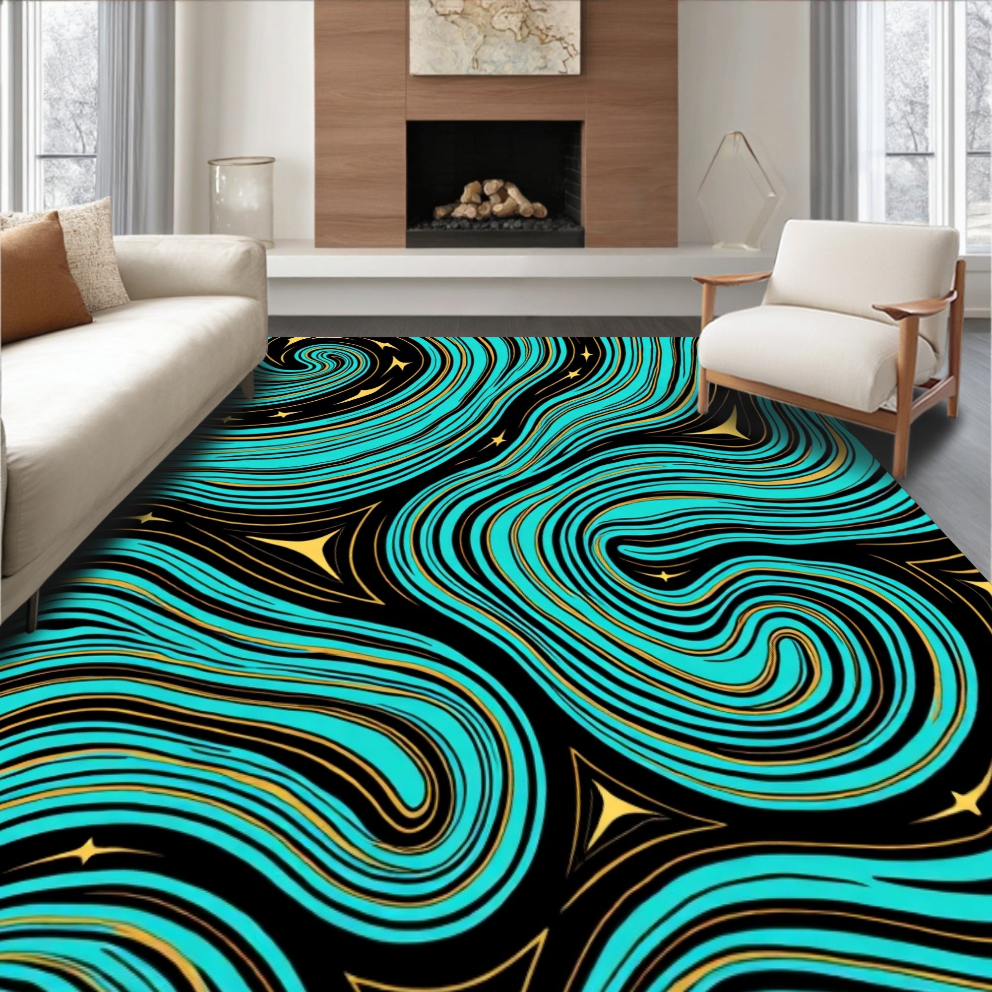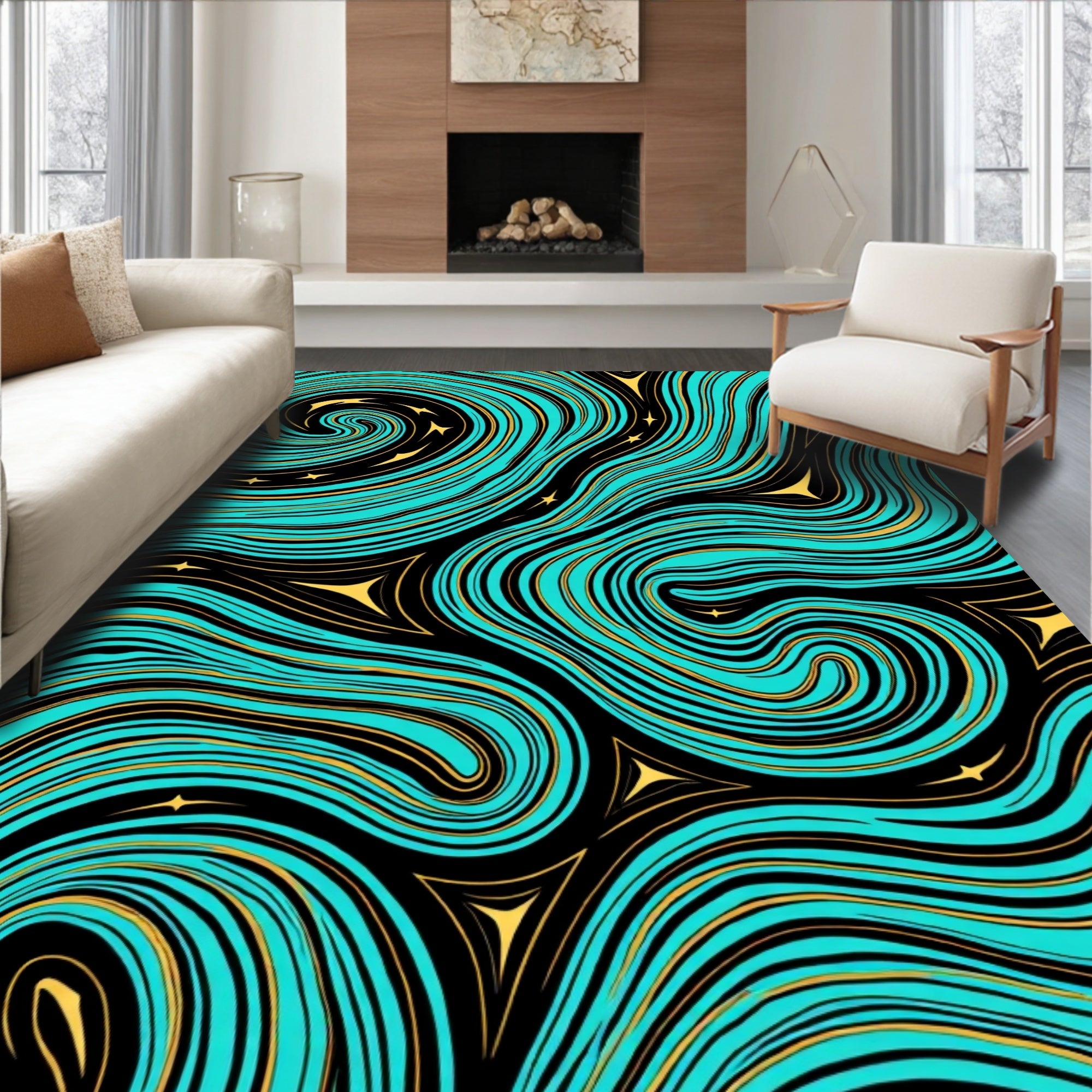 Ultra Soft Area Rug, Non Slip, Stain Resistant, Washable Area Rugs for Living Room, Bedroom, Ocean Wave Decorative Splash Collection(Blue) Overview: