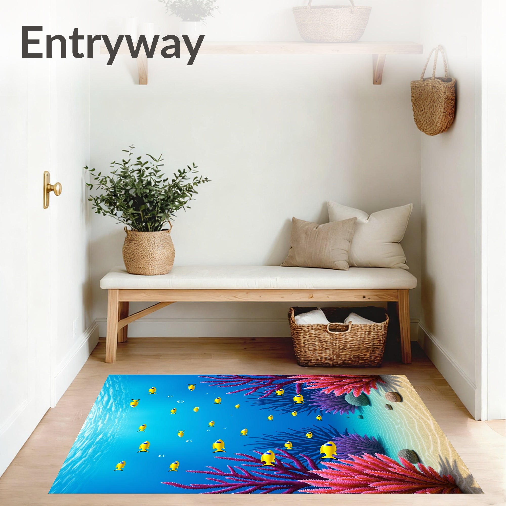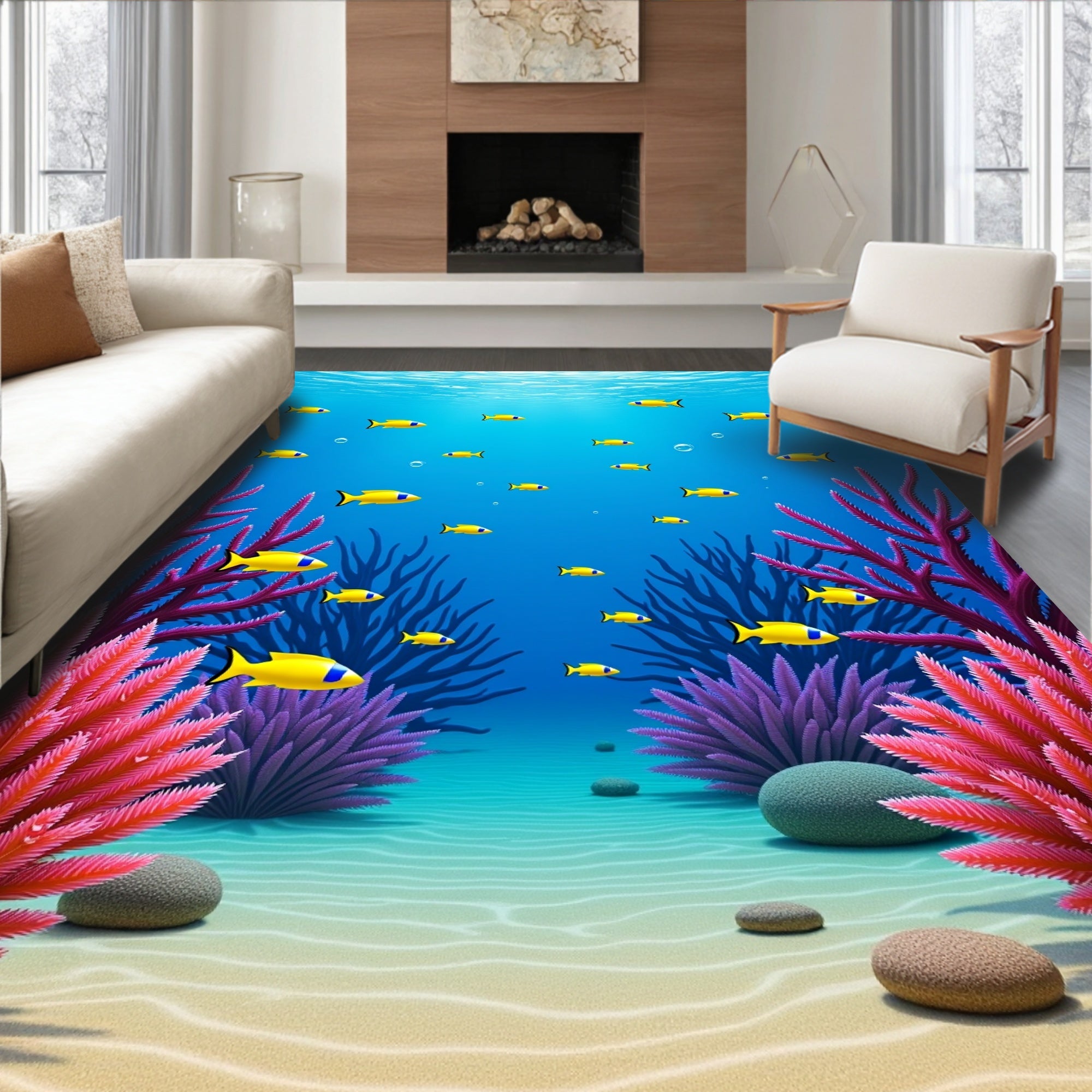 Ultra Soft Area Rug, Non Slip, Stain Resistant, Washable Area Rugs for Living Room, Bedroom, Oceanic Discovery Vibrant Aquarium Life Decorative Hallway Treasure(Blue) Overview: