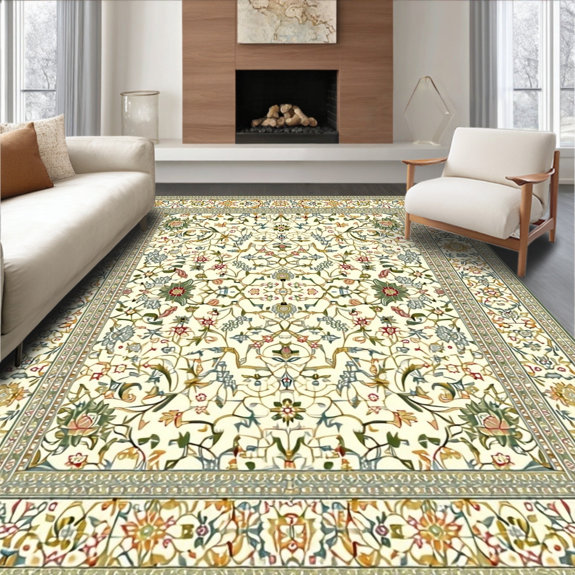 Ultra Soft Area Rug, Non Slip, Stain Resistant, Washable Area Rugs for Living Room, Bedroom, Olive and Neutral with Richly Detailed(Ivory) Overview: