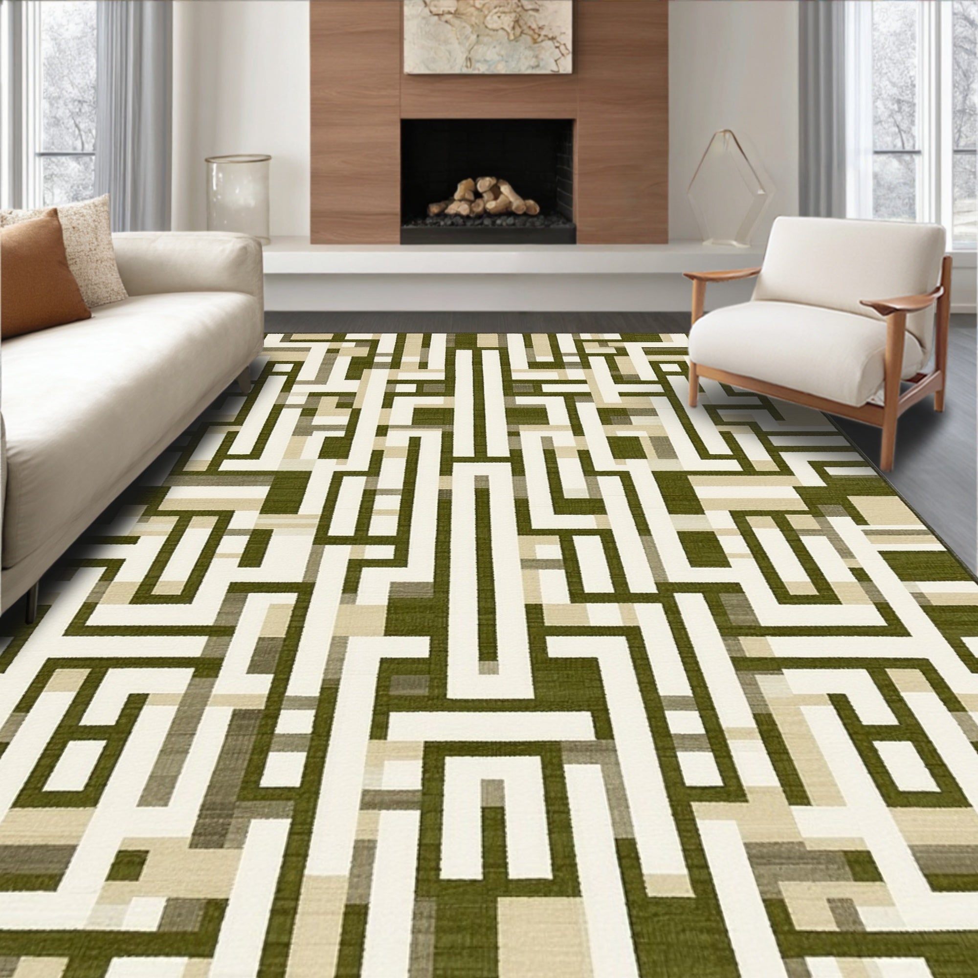 Ultra Soft Area Rug, Non Slip, Stain Resistant, Washable Area Rugs for Living Room, Bedroom, Olive Beige Area Versatile Style Non Shed Weave Fringed Borders(Green) Overview: