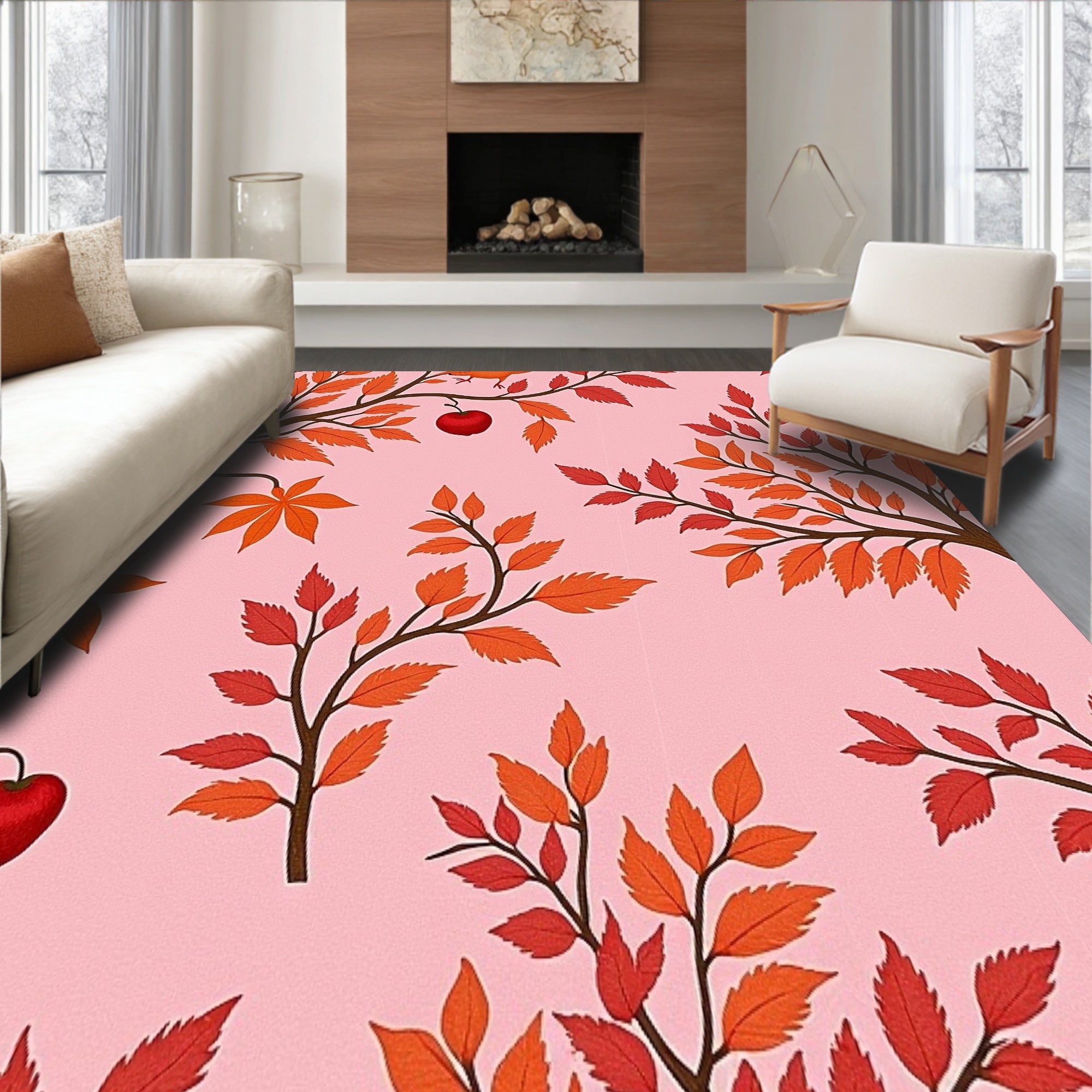 Ultra Soft Area Rug, Non Slip, Stain Resistant, Washable Area Rugs for Living Room, Bedroom, Orchard Songbird Melody Seasonal Fruit Branch(Pink) Overview: