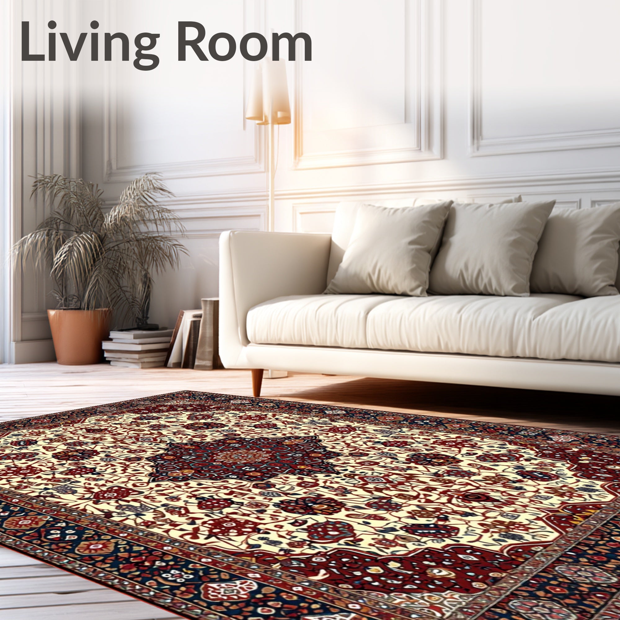 Ultra Soft Area Rug, Non Slip, Stain Resistant, Washable Area Rugs for Living Room, Bedroom, Ornate Area(White) Overview: