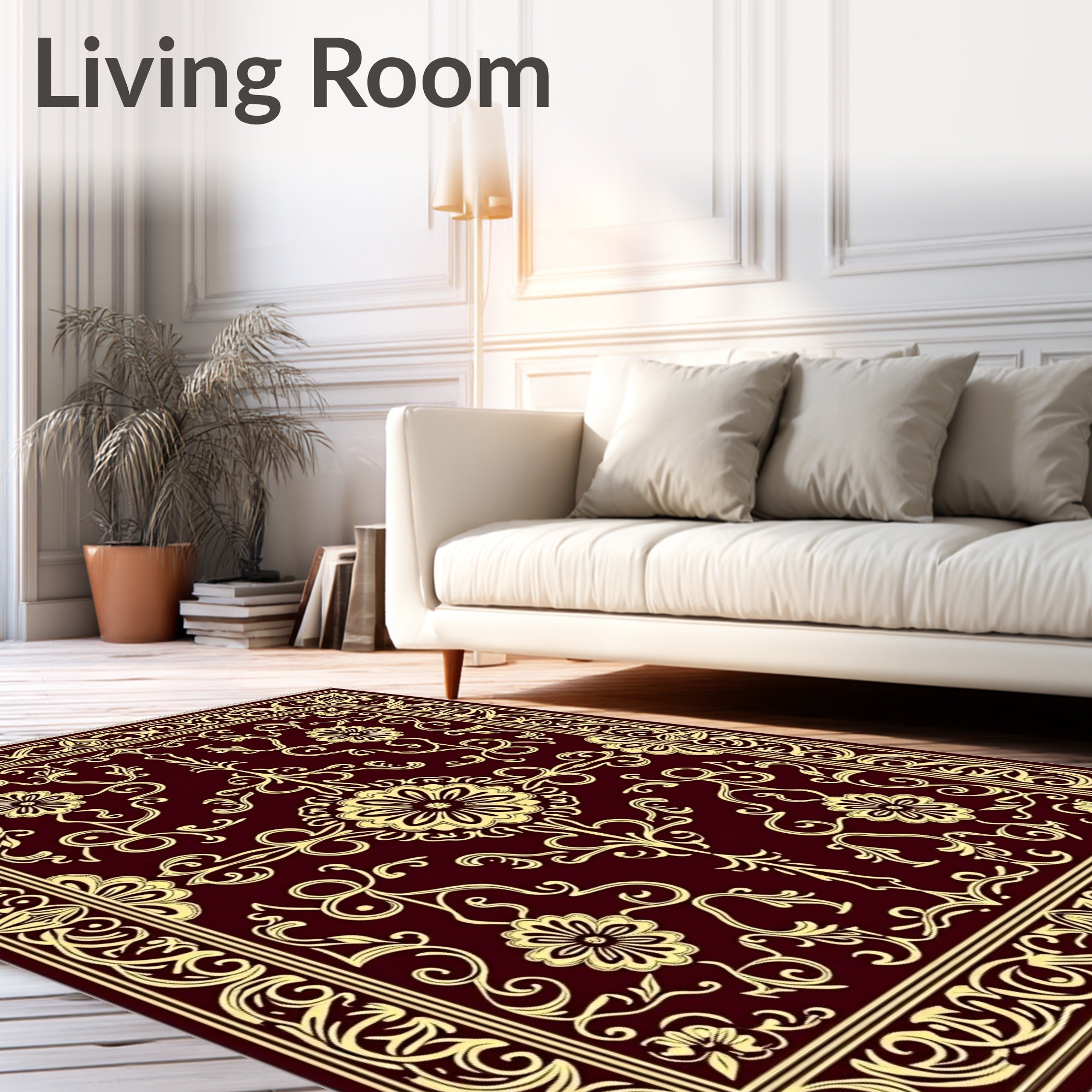 Flatwoven High Traffic Area Rug, Ornate Baroque Inspired Swirling Vine, Non Slip, Stain Resistant, Washable Area Rugs for Living Room, Bedroom (Brown) Overview: