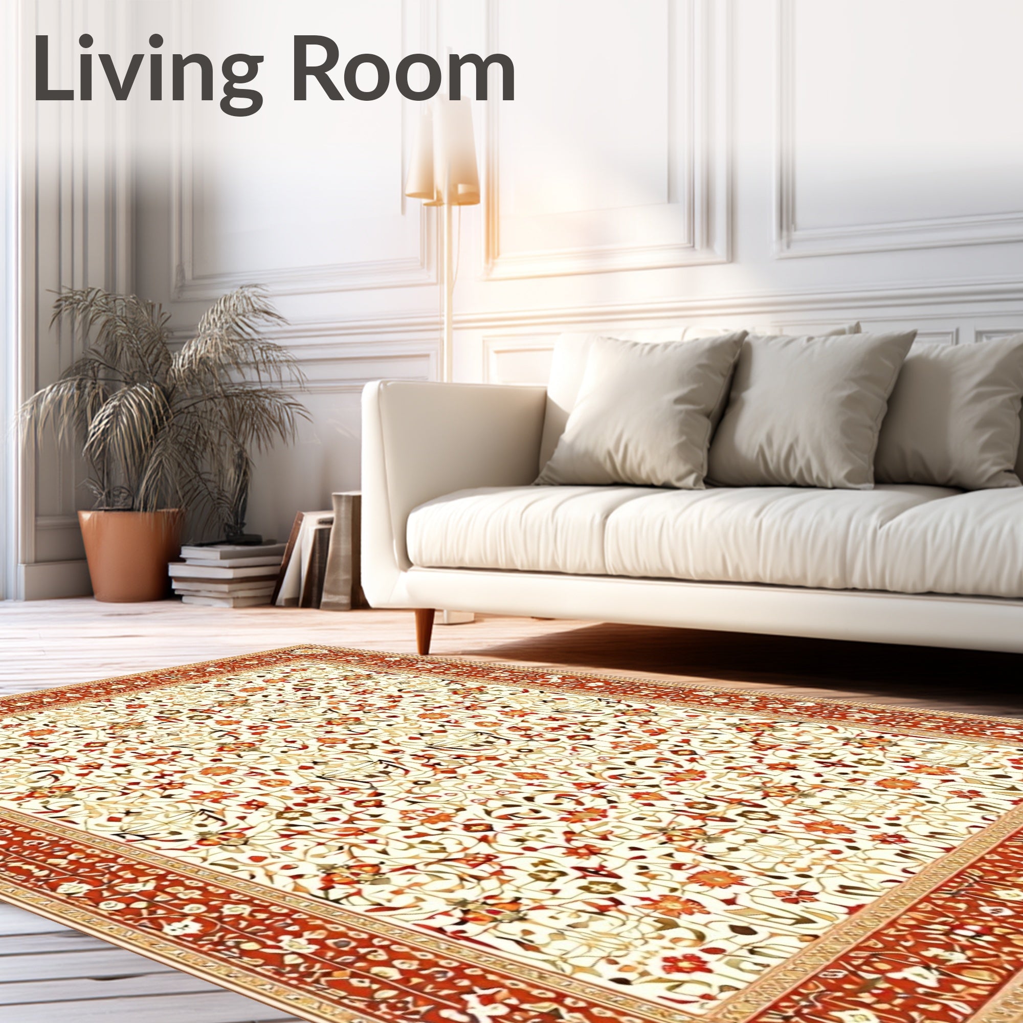 Ultra Soft Area Rug, Non Slip, Stain Resistant, Washable Area Rugs for Living Room, Bedroom, Ornate Beige Terracotta(White) Overview: