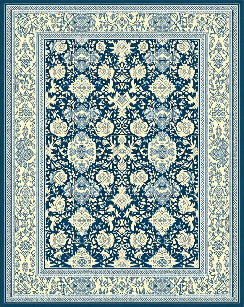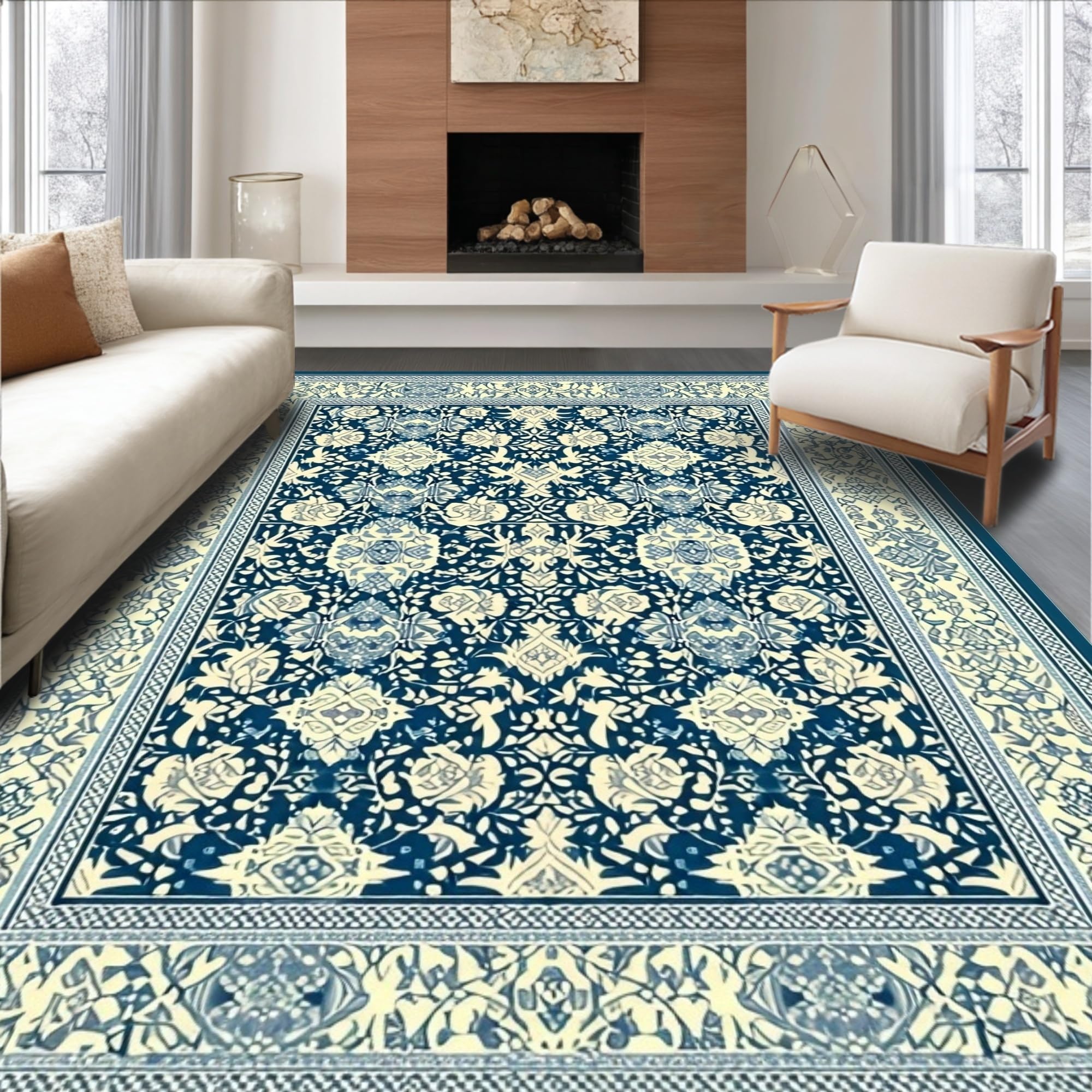 Ultra Soft Area Rug, Non Slip, Stain Resistant, Washable Area Rugs for Living Room, Bedroom, Ornate Damask and Artful Boho Flourishes(Blue) Overview: