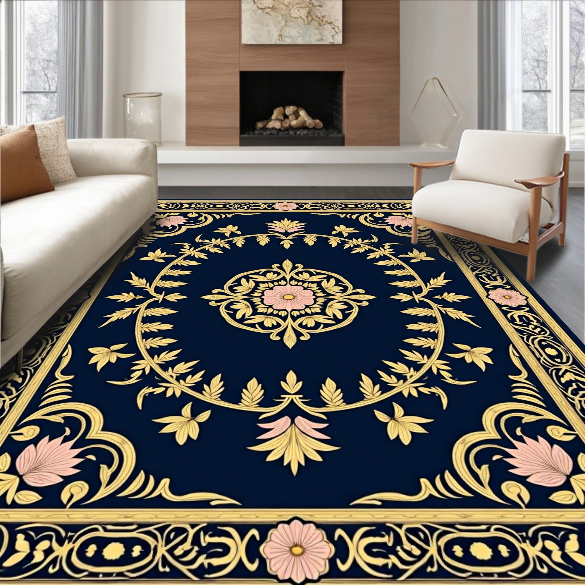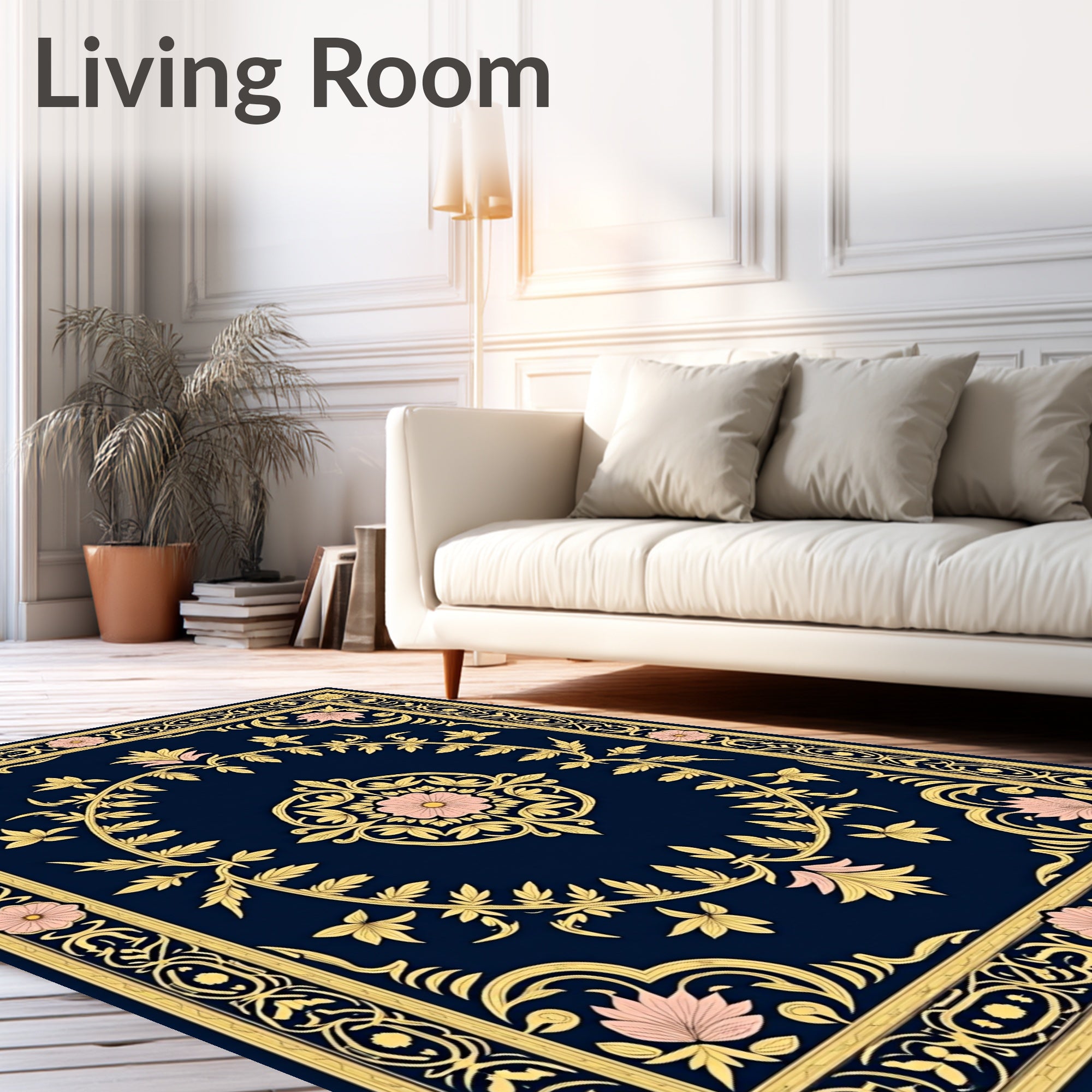 Ultra Soft Area Rug, Non Slip, Stain Resistant, Washable Area Rugs for Living Room, Bedroom, Ornate Fleur Medley with Ethereal Vinework(Gold) Overview: