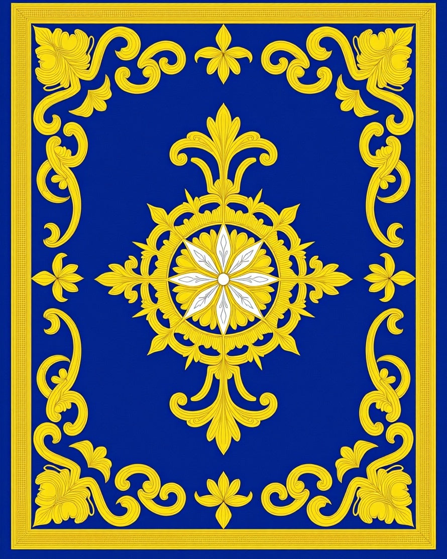Ornate Floral Medallion Motif with Curved Scrollwork Details(Blue)
