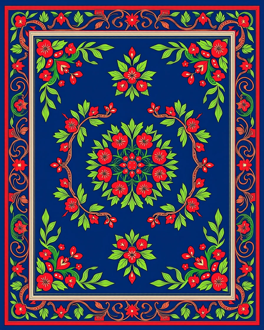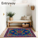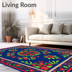 Flatwoven High Traffic Area Rug, Ornate Holly Berry and Leaf Design Hallway, Non Slip, Stain Resistant, Washable Area Rugs for Living Room, Bedroom (Blue) Overview: