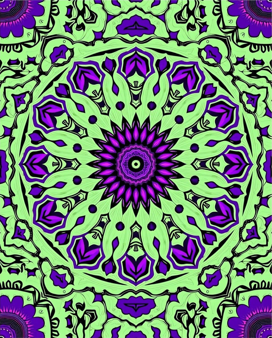Ornate Tapestry Design with Intricate Floral Motifs(Green)