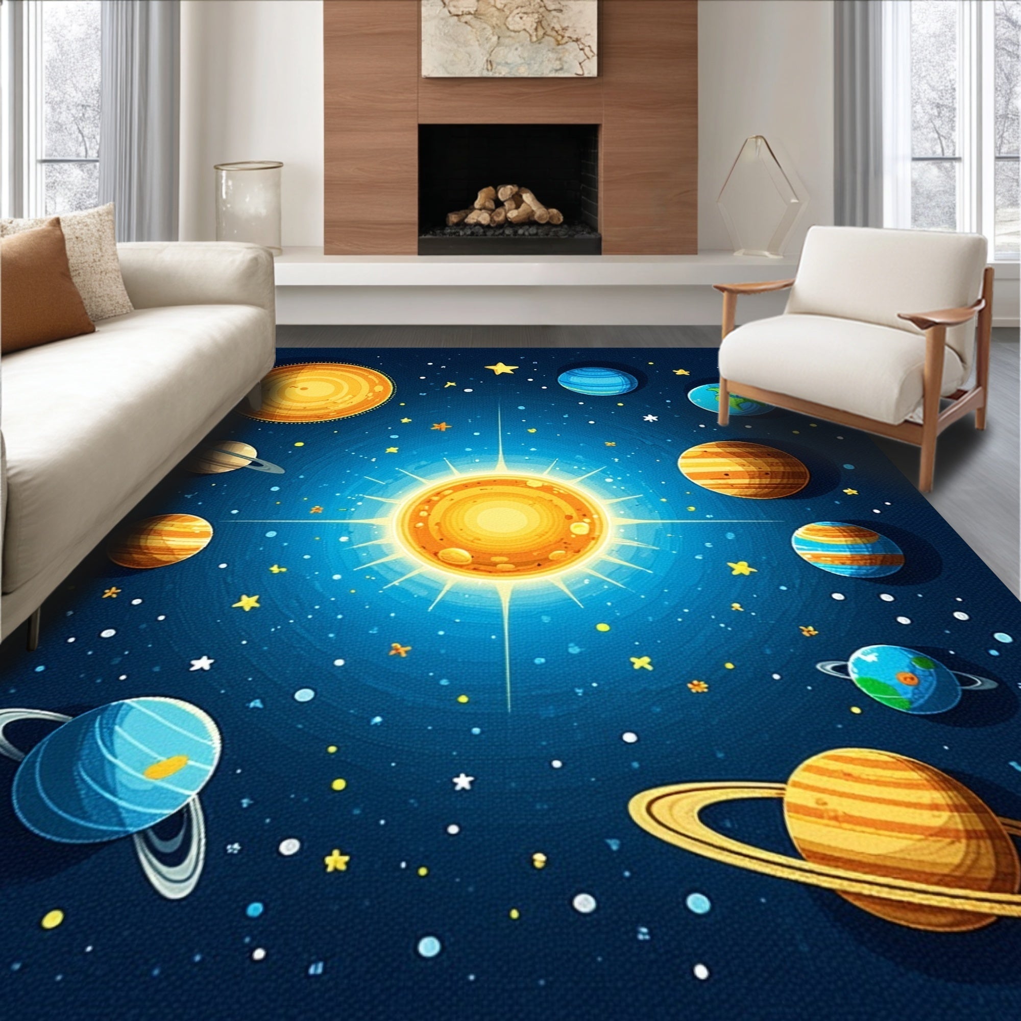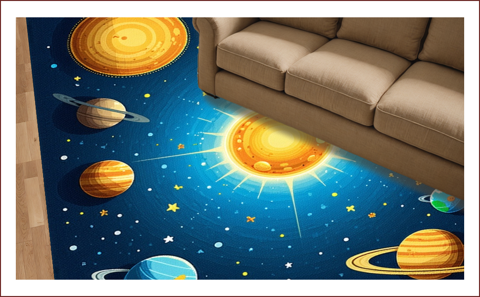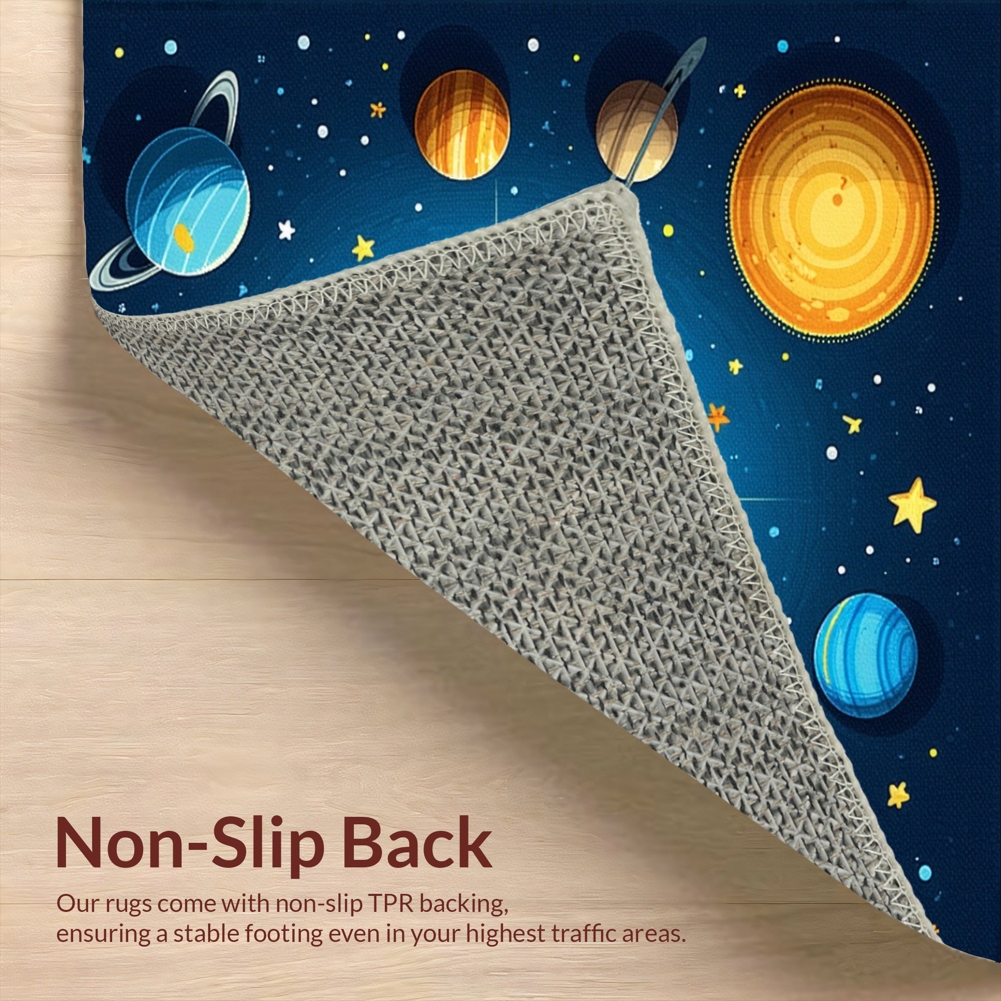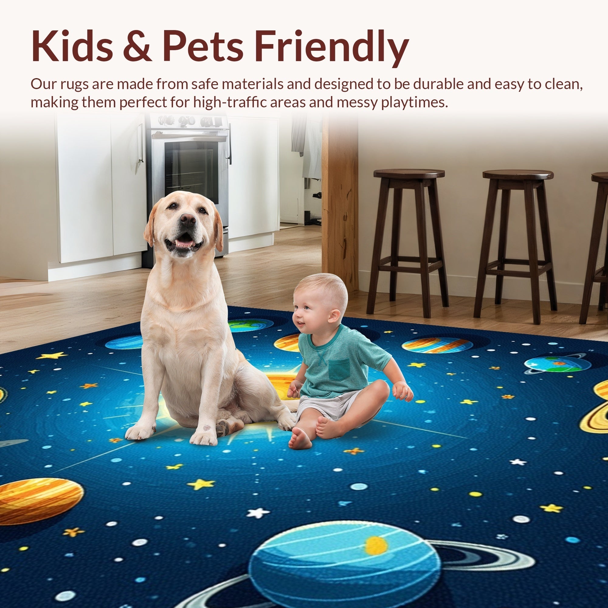 Ultra Soft Area Rug, Non Slip, Stain Resistant, Washable Area Rugs for Living Room, Bedroom, Outer Space Boys Bedroom Vibrant Planet Theme Rug(Blue) Overview: