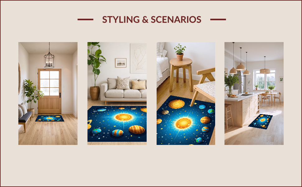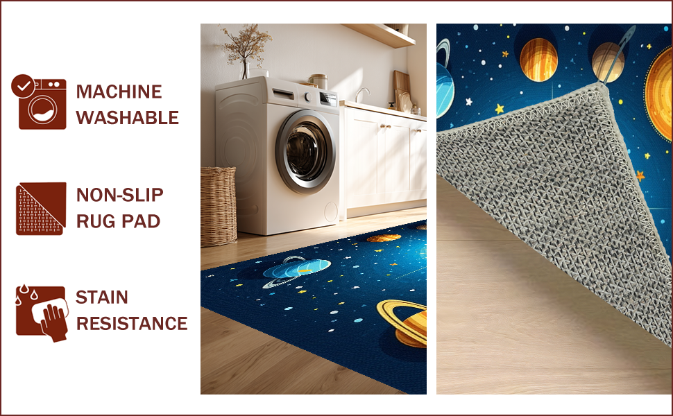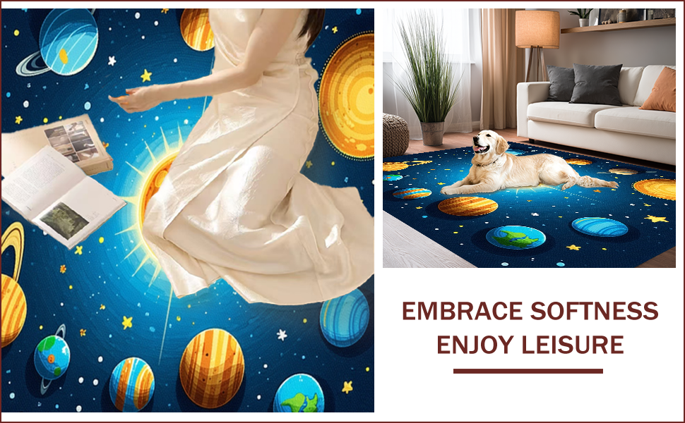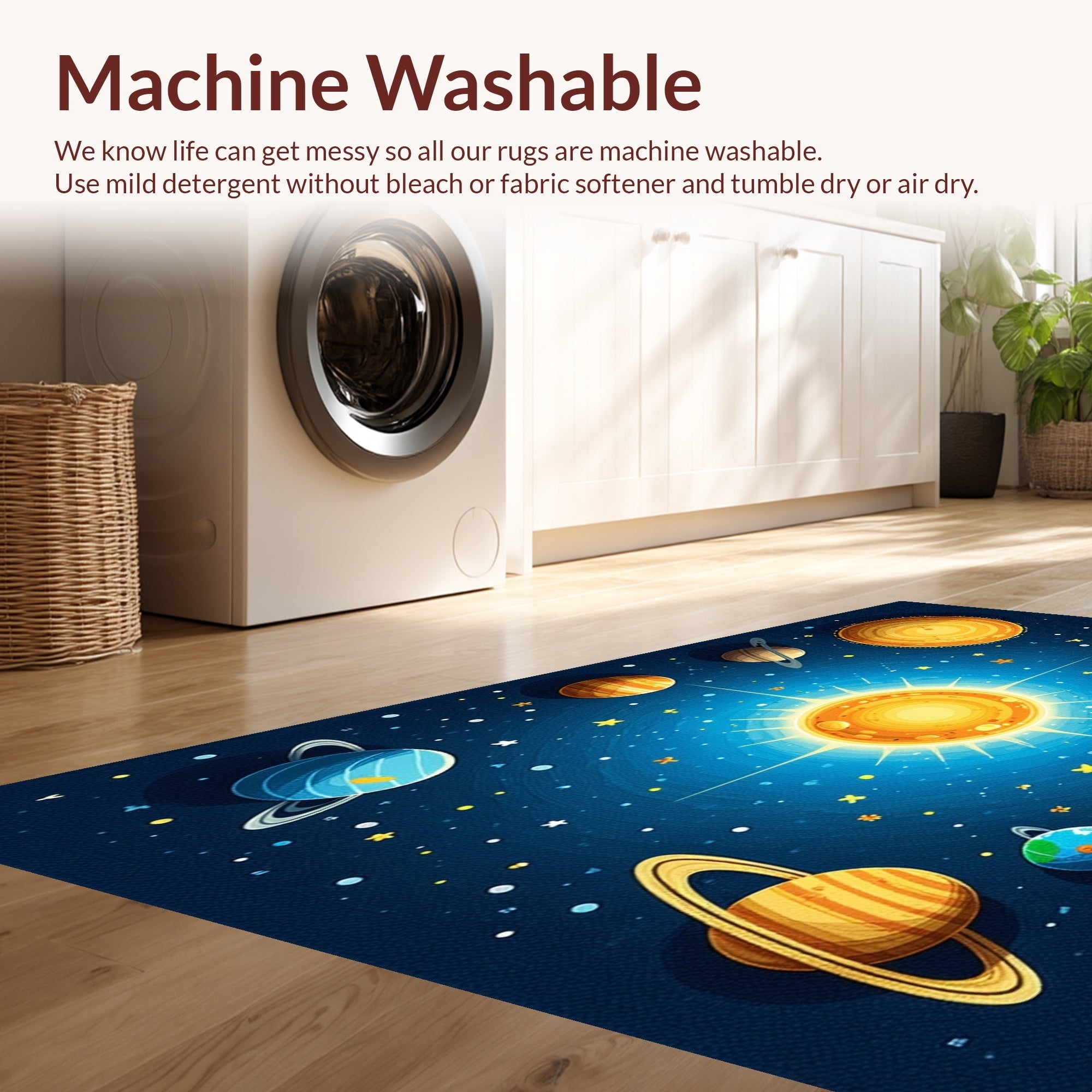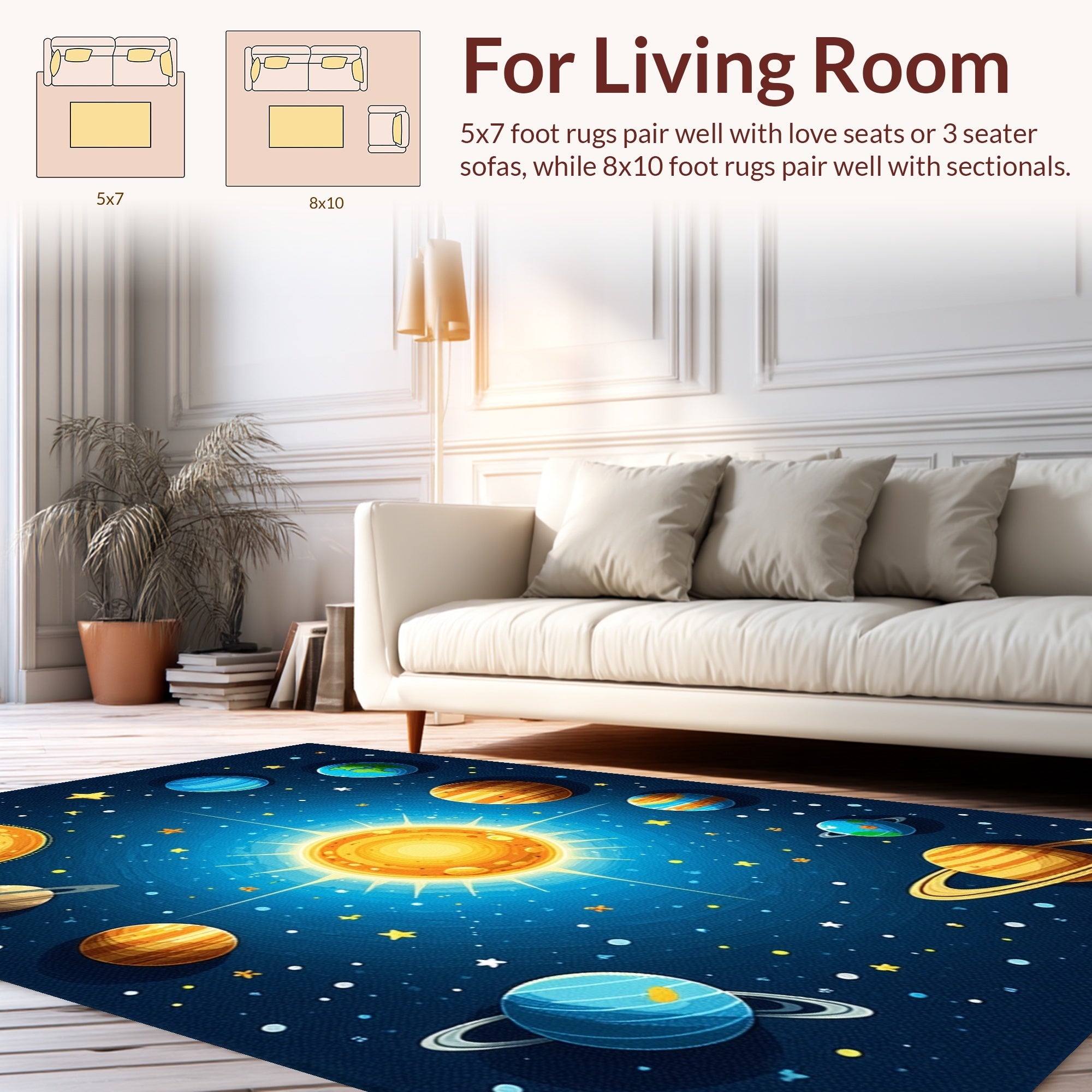 Ultra Soft Area Rug, Non Slip, Stain Resistant, Washable Area Rugs for Living Room, Bedroom, Outer Space Boys Bedroom Vibrant Planet Theme Rug(Blue) Overview: