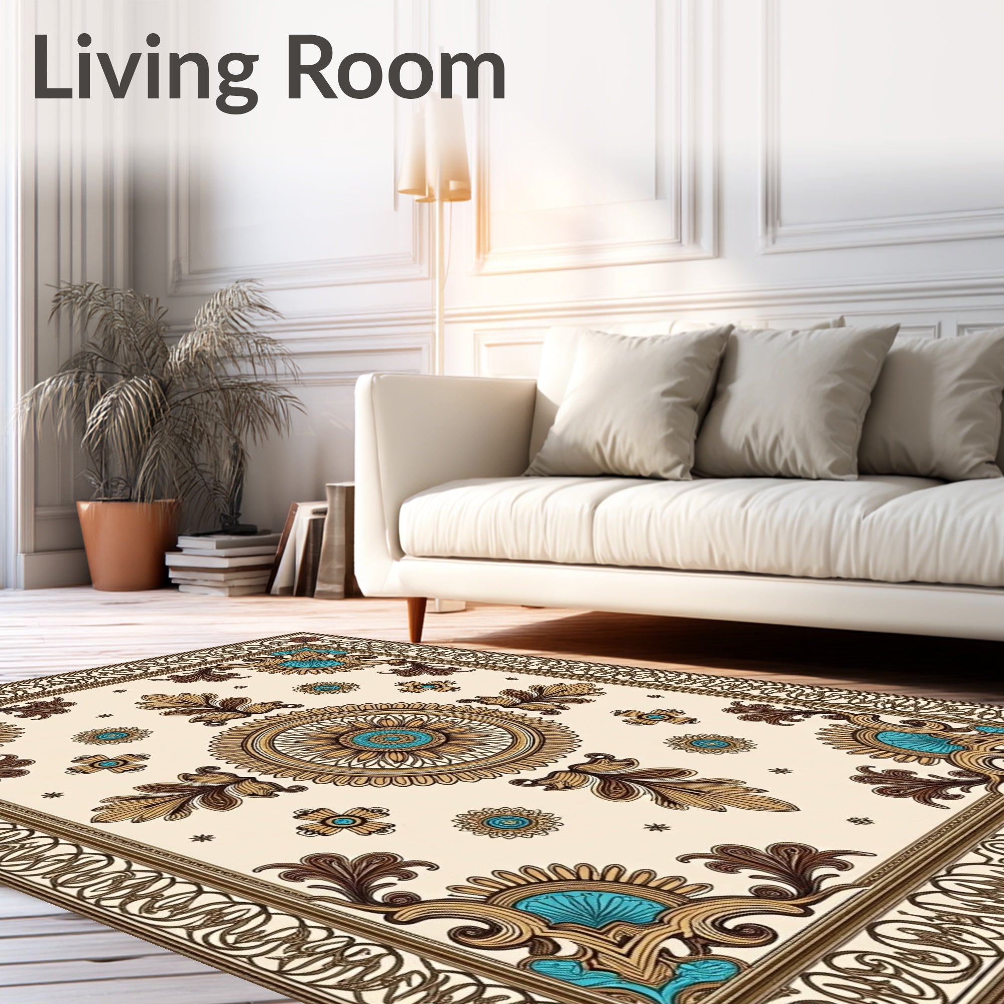 Ultra Soft Area Rug, Non Slip, Stain Resistant, Washable Area Rugs for Living Room, Bedroom, Paisley Medallion Symmetrical Dynasty Heritage(Beige) Overview: