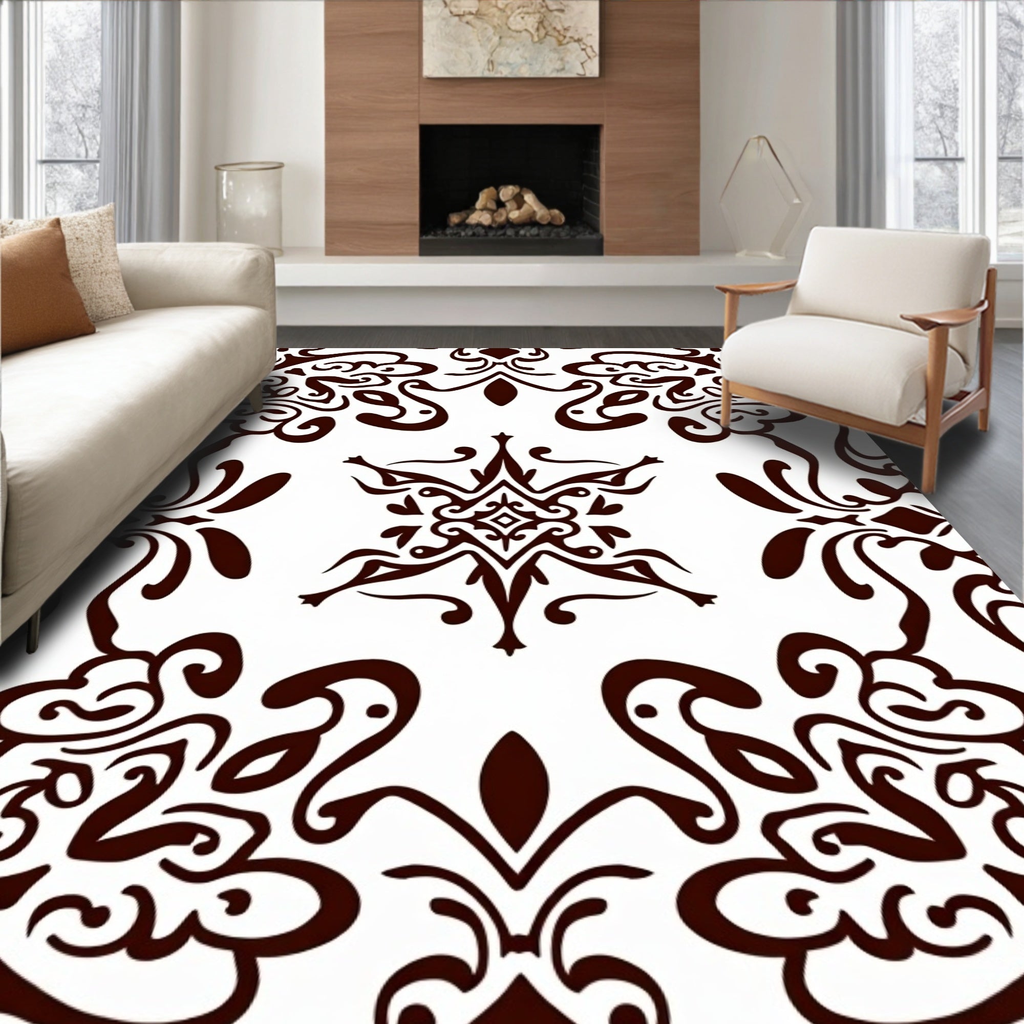 Flatwoven High Traffic Area Rug, Paisley Swirl Enchanted Dreamy Whimsical Wonderland, Non Slip, Stain Resistant, Washable Area Rugs for Living Room, Bedroom (Brown) Overview: