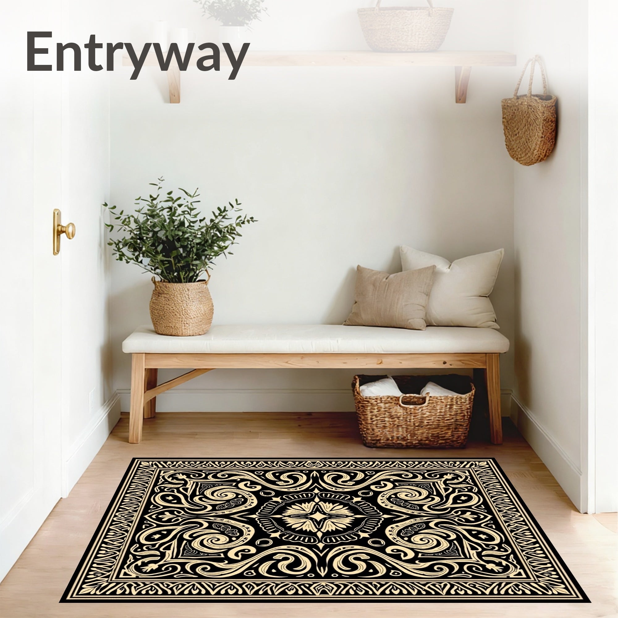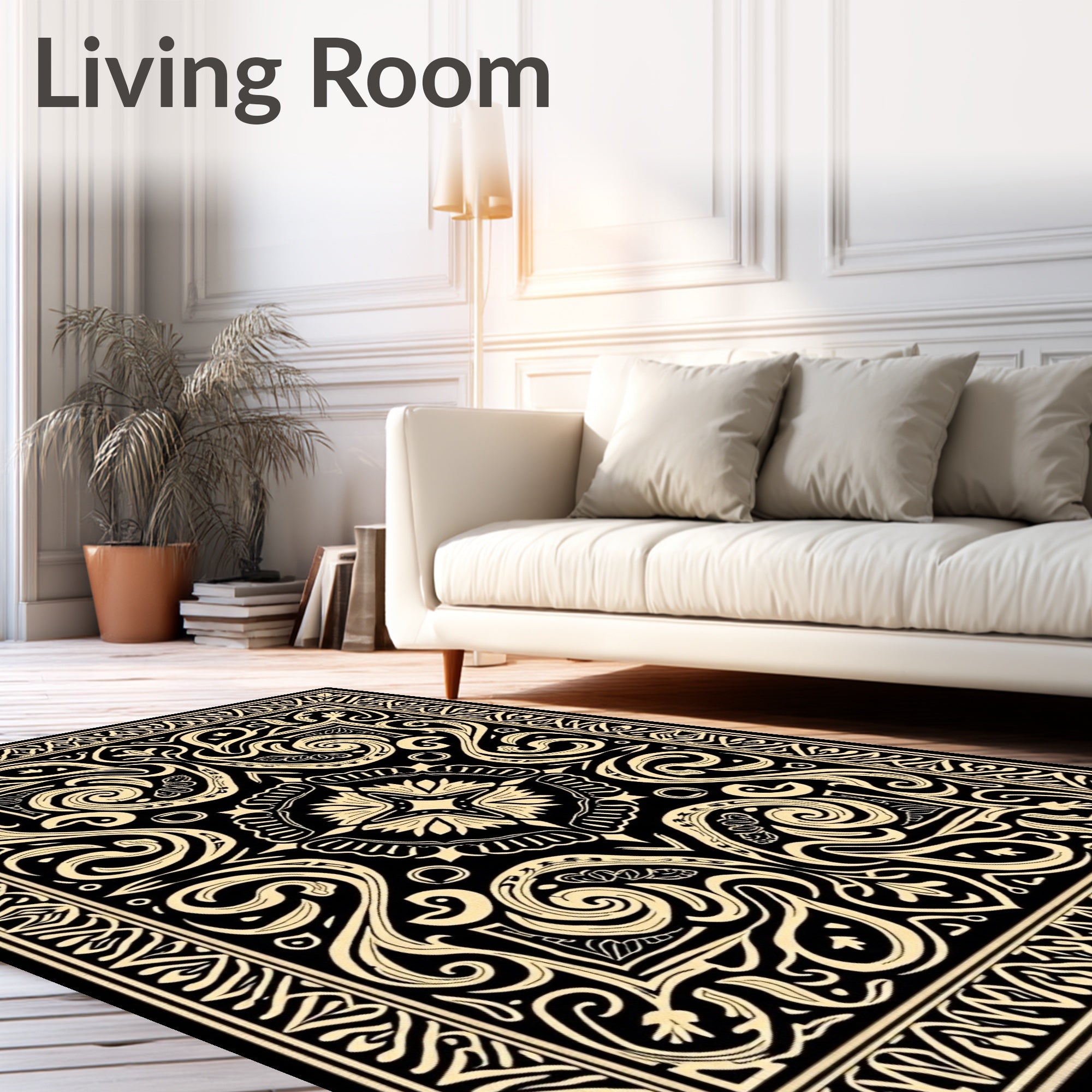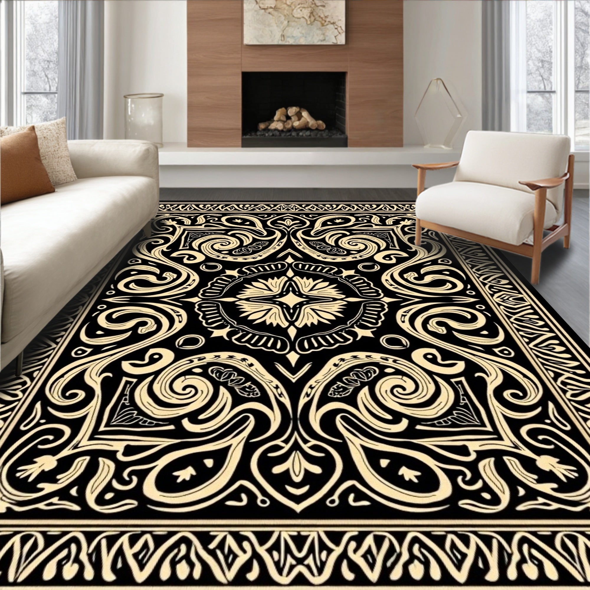 Ultra Soft Area Rug, Non Slip, Stain Resistant, Washable Area Rugs for Living Room, Bedroom, Paisley Swirl Teardrop Bohemian Ethnic Heritage(Black) Overview:
