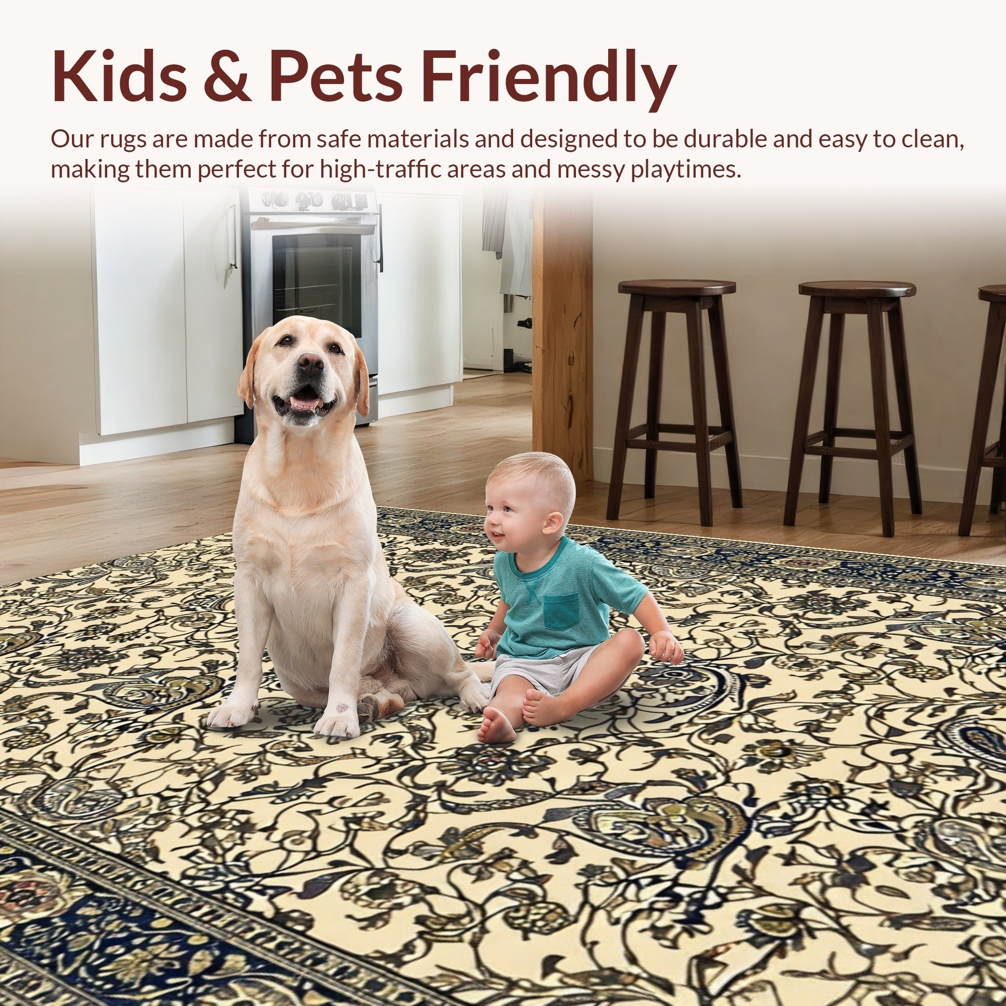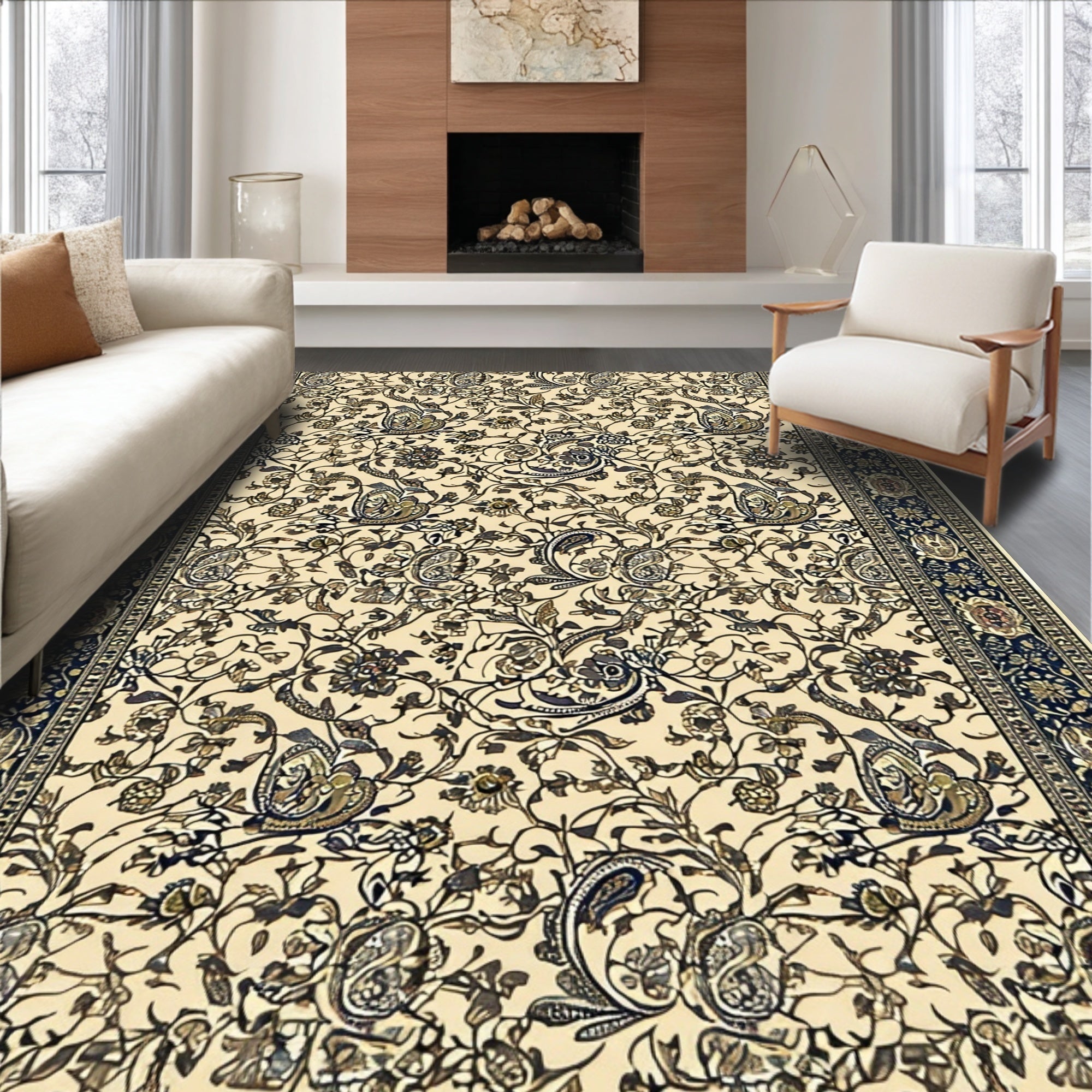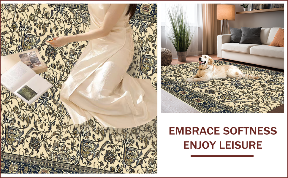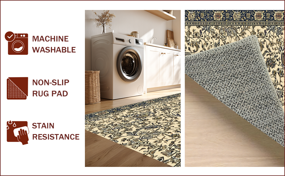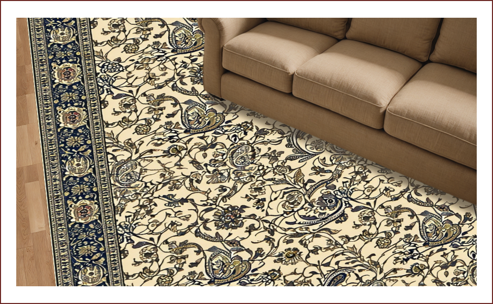 Ultra Soft Area Rug, Non Slip, Stain Resistant, Washable Area Rugs for Living Room, Bedroom, Paisley Traditional Rubberback(Beige) Overview: