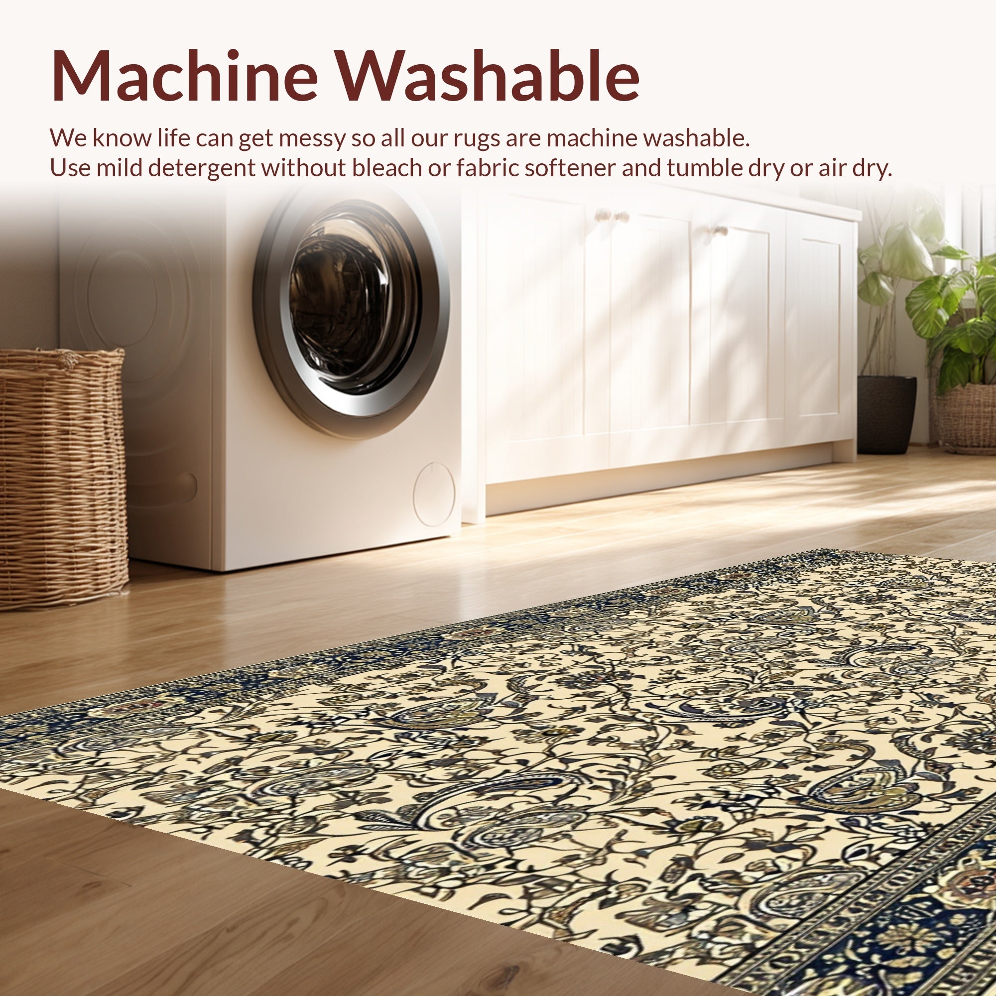 - Machine Washable: Our rugs can be easily thrown in the wash machine.