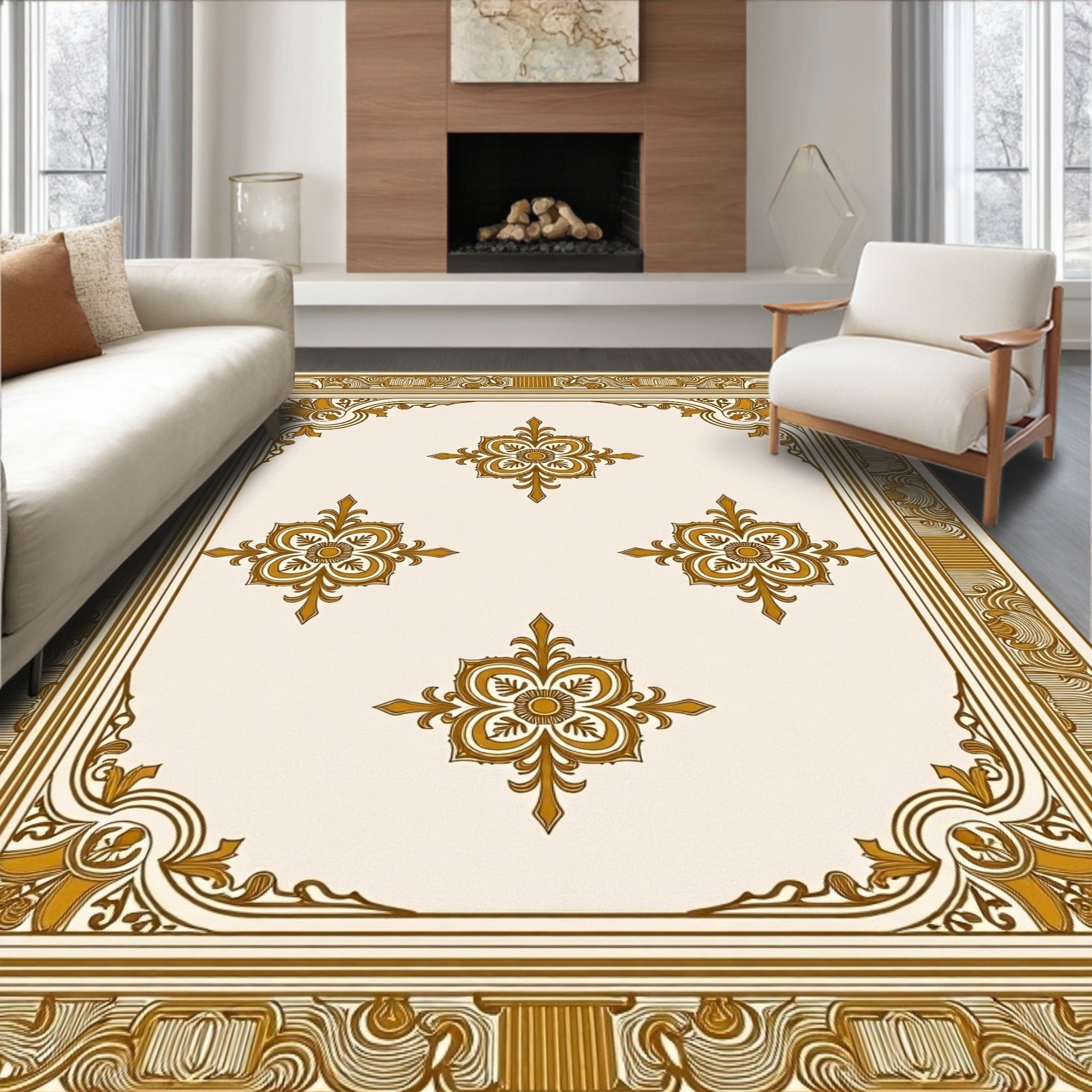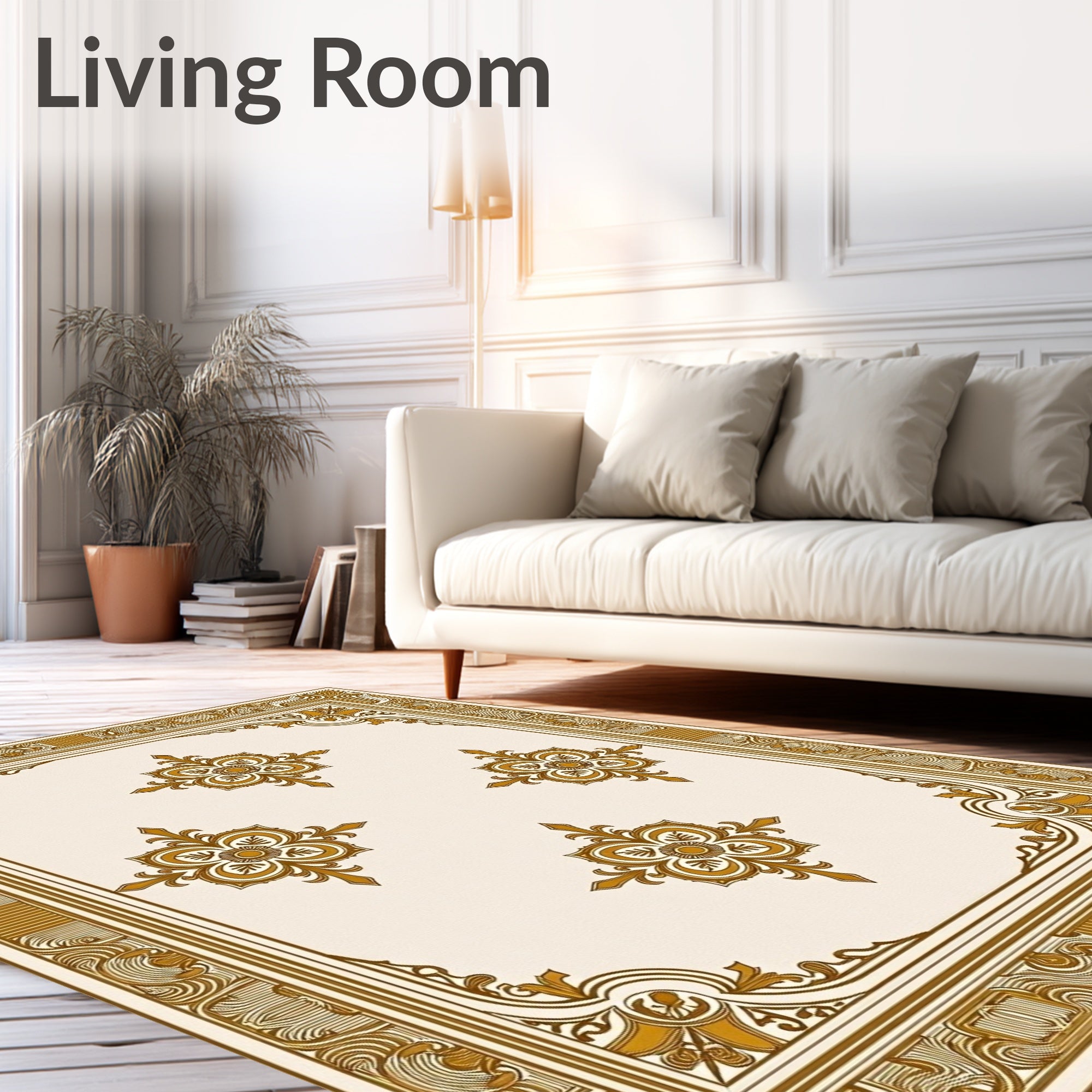 Ultra Soft Area Rug, Non Slip, Stain Resistant, Washable Area Rugs for Living Room, Bedroom, Palace Brocade Damask(Gold) Overview: