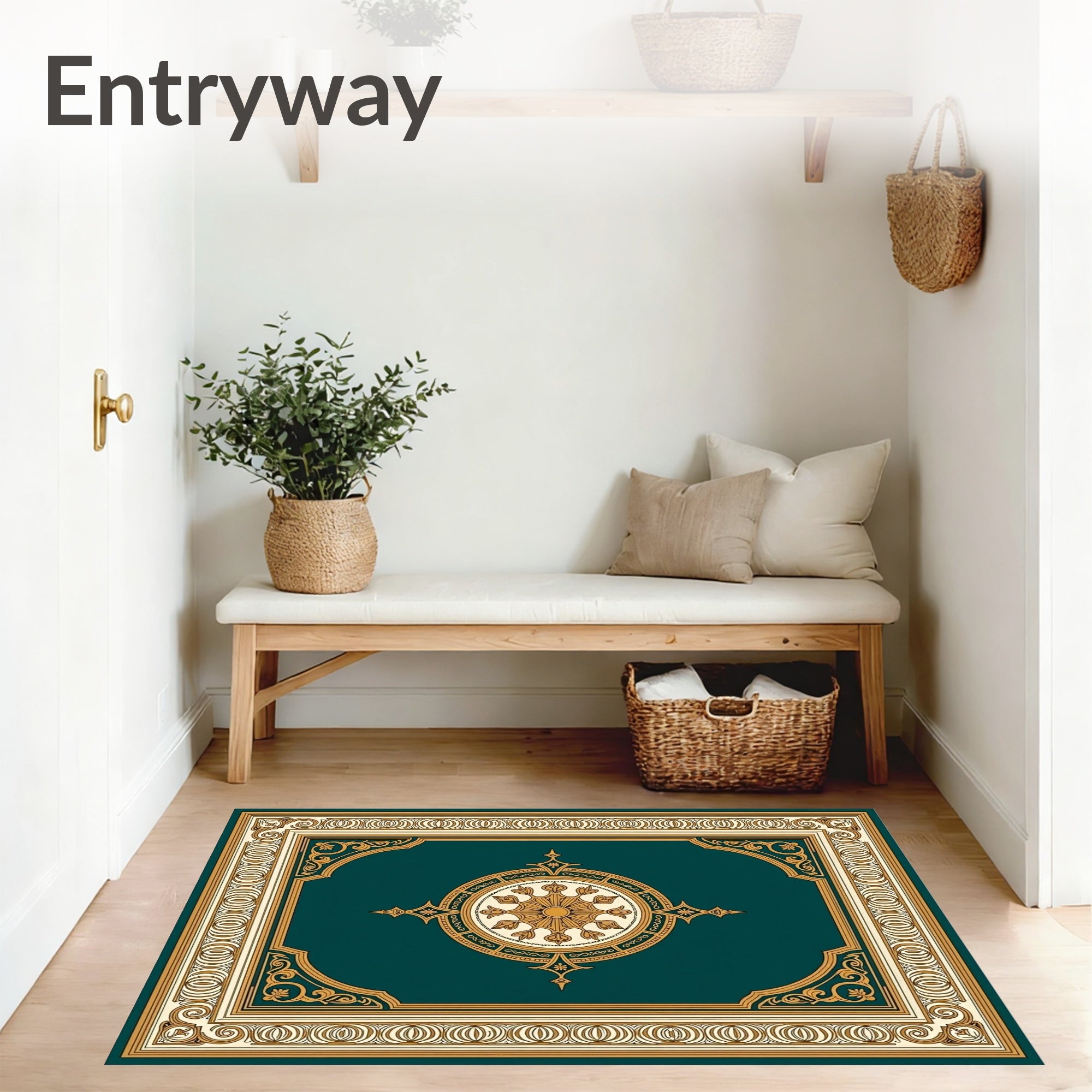 Ultra Soft Area Rug, Non Slip, Stain Resistant, Washable Area Rugs for Living Room, Bedroom, Palace Treasure Enchanted Labyrinth Artistry(Gold) Overview:
