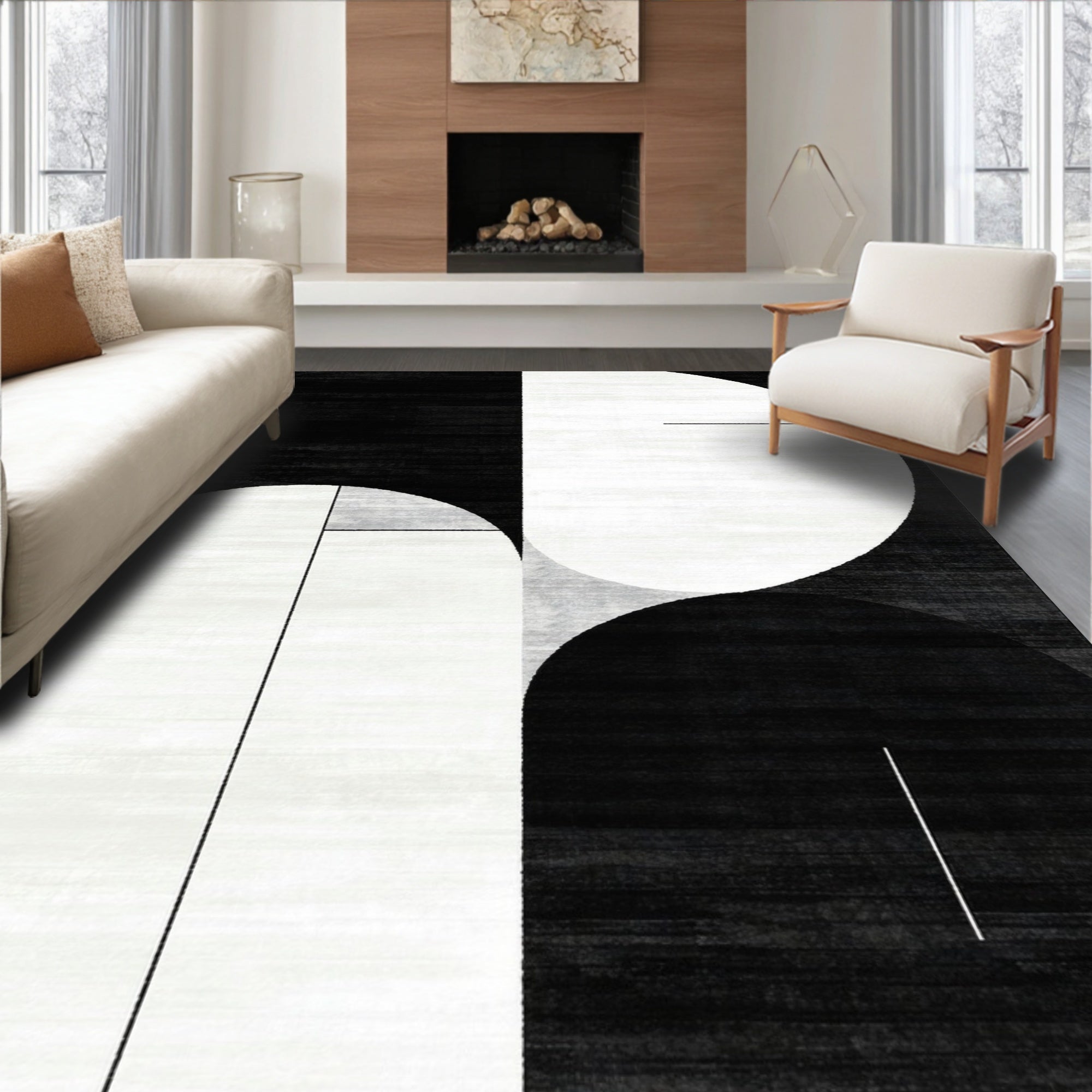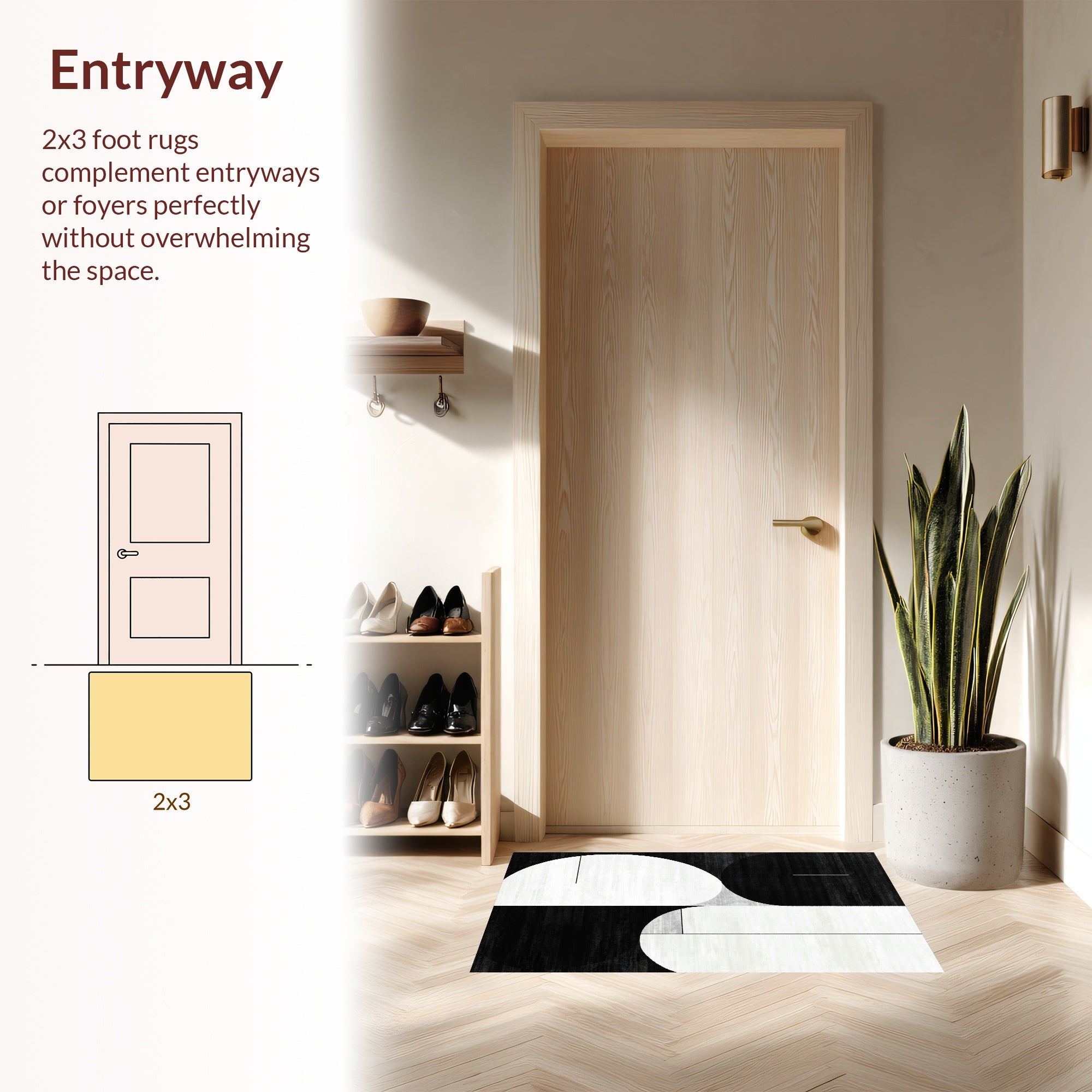 Flatwoven High Traffic Area Rug, Partial Abstract Line Composition with Intersecting Arc Segments, Non Slip, Stain Resistant, Washable Area Rugs for Living Room, Bedroom (Black) Overview: