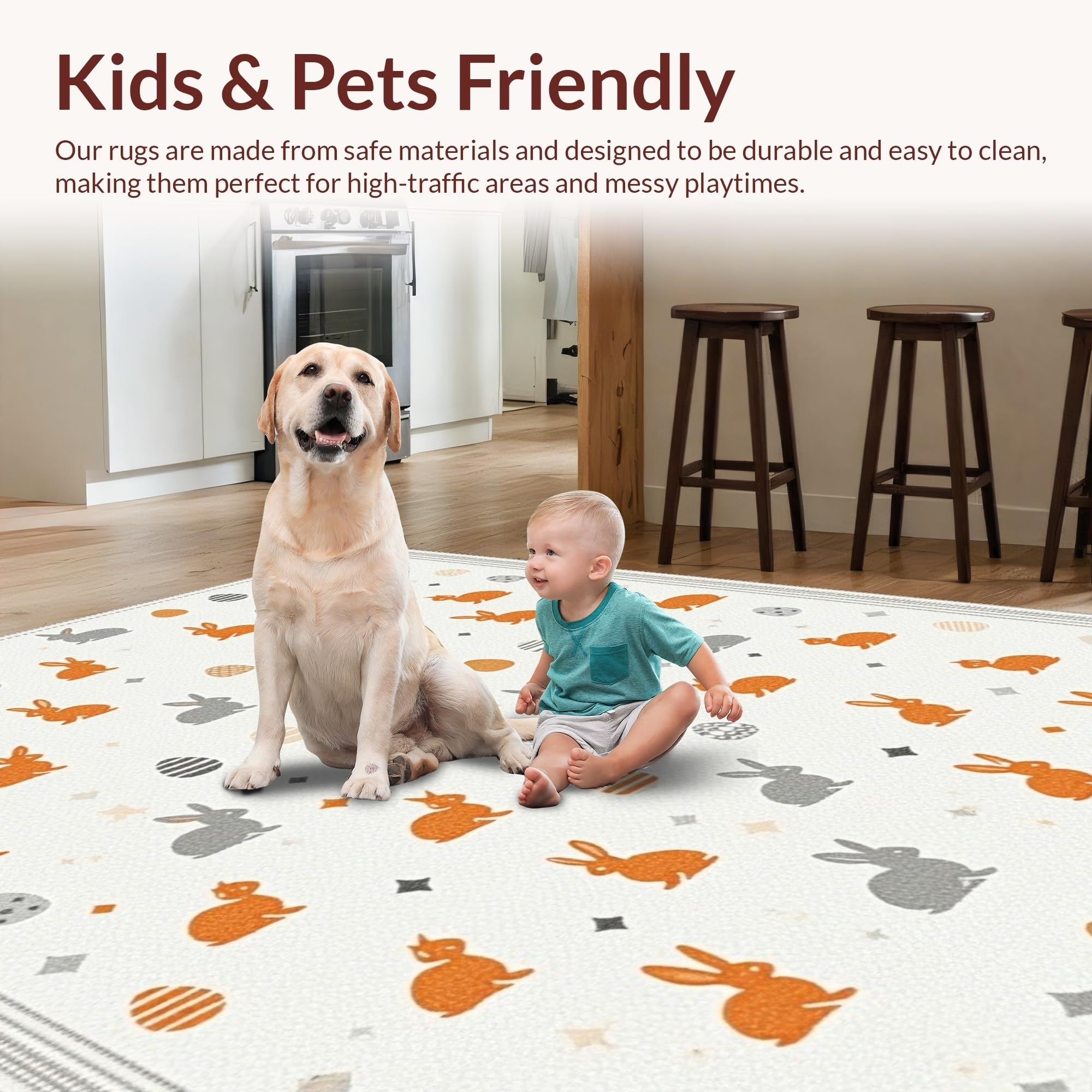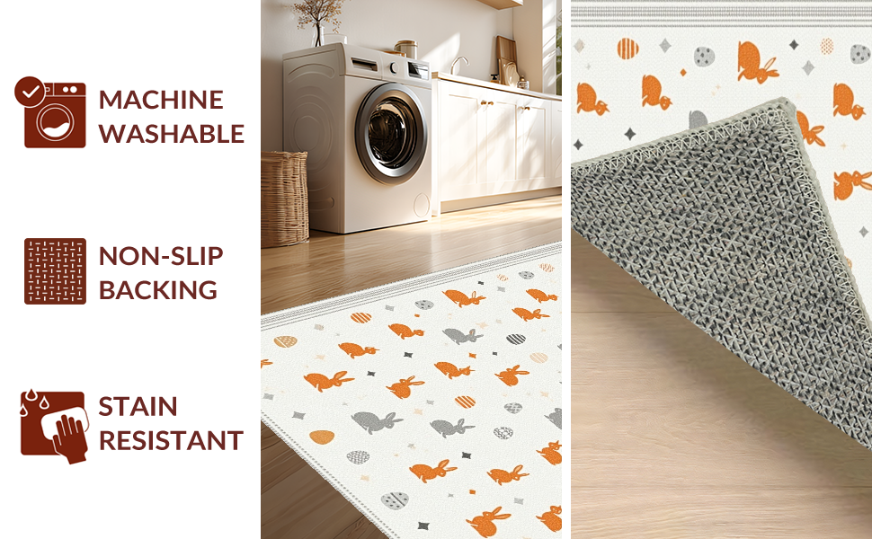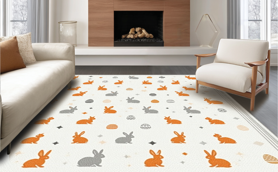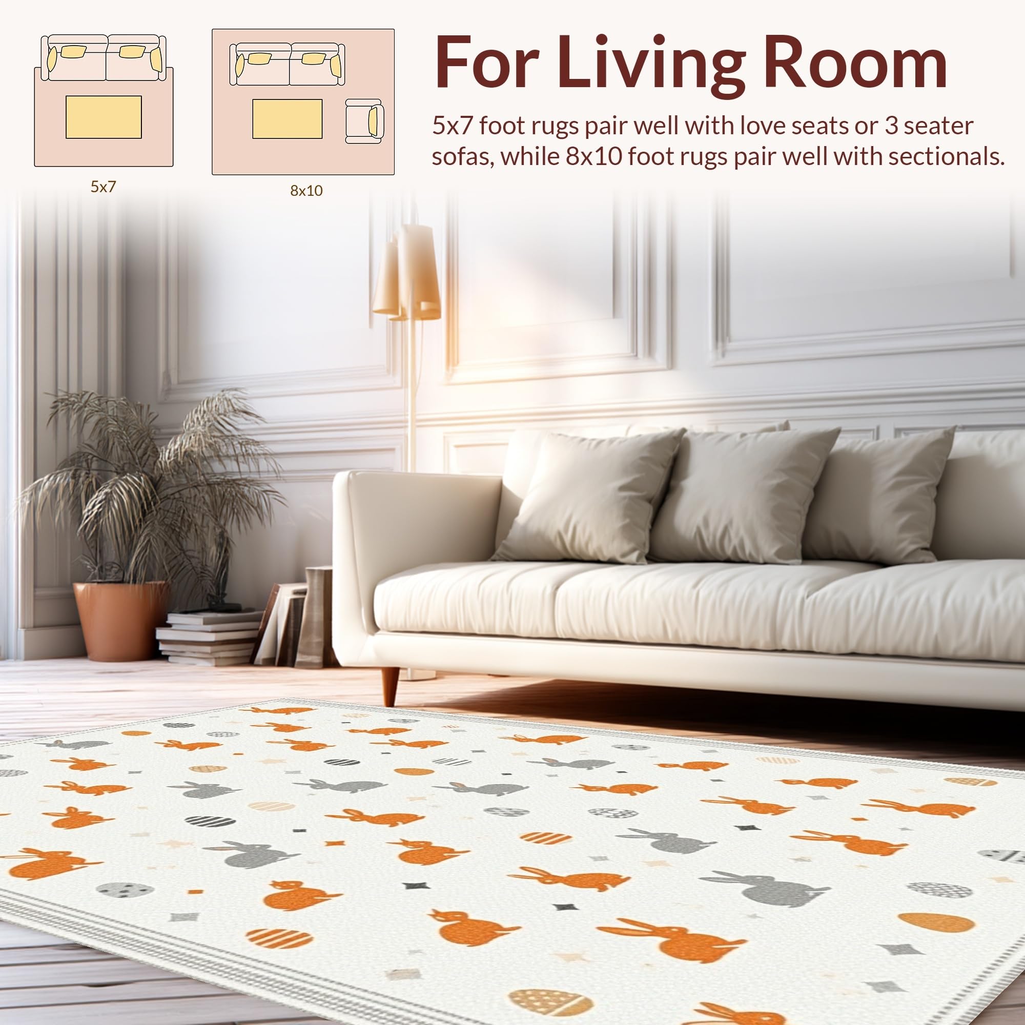 Ultra Soft Area Rug, Non Slip, Stain Resistant, Washable Area Rugs for Living Room, Bedroom, Pastel Farmhouse Easter Aesthetic(Ivory) Overview: