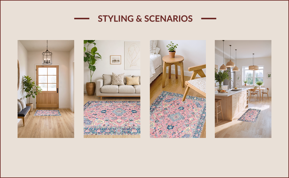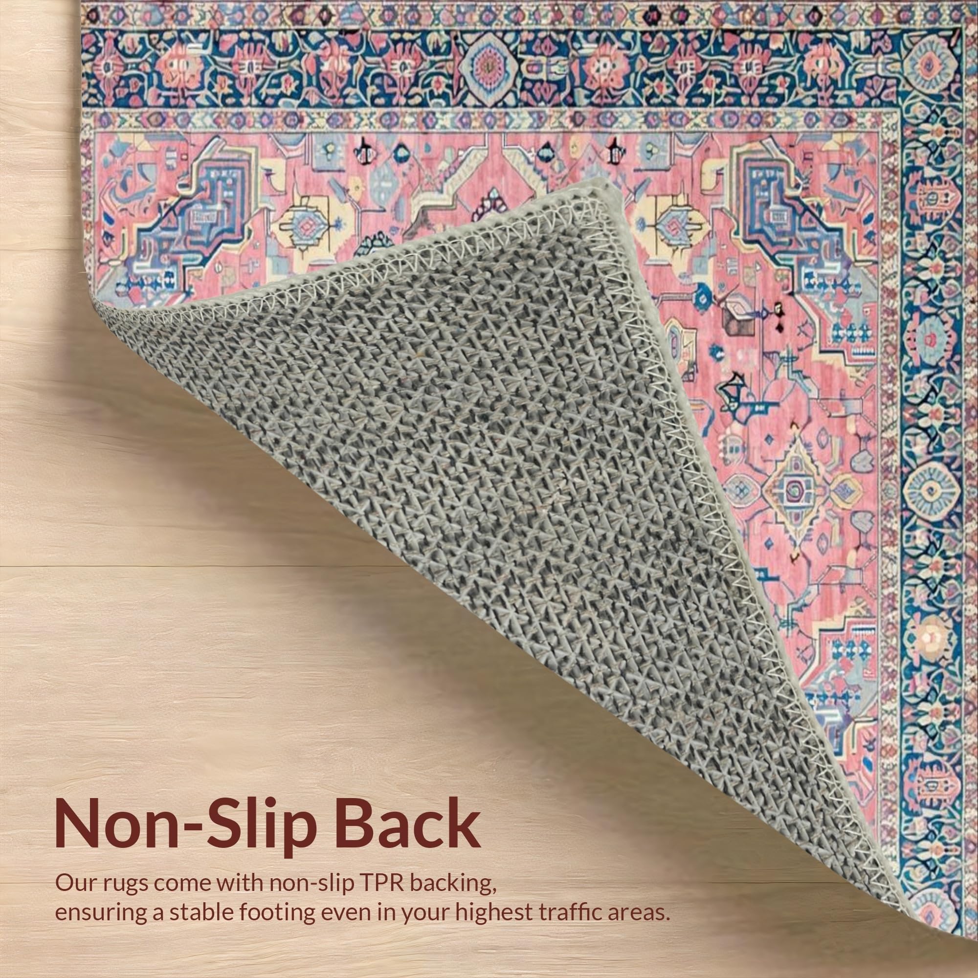 Ultra Soft Area Rug, Non Slip, Stain Resistant, Washable Area Rugs for Living Room, Bedroom, Pastel Floral Medallion Elegance(Pink) Overview: