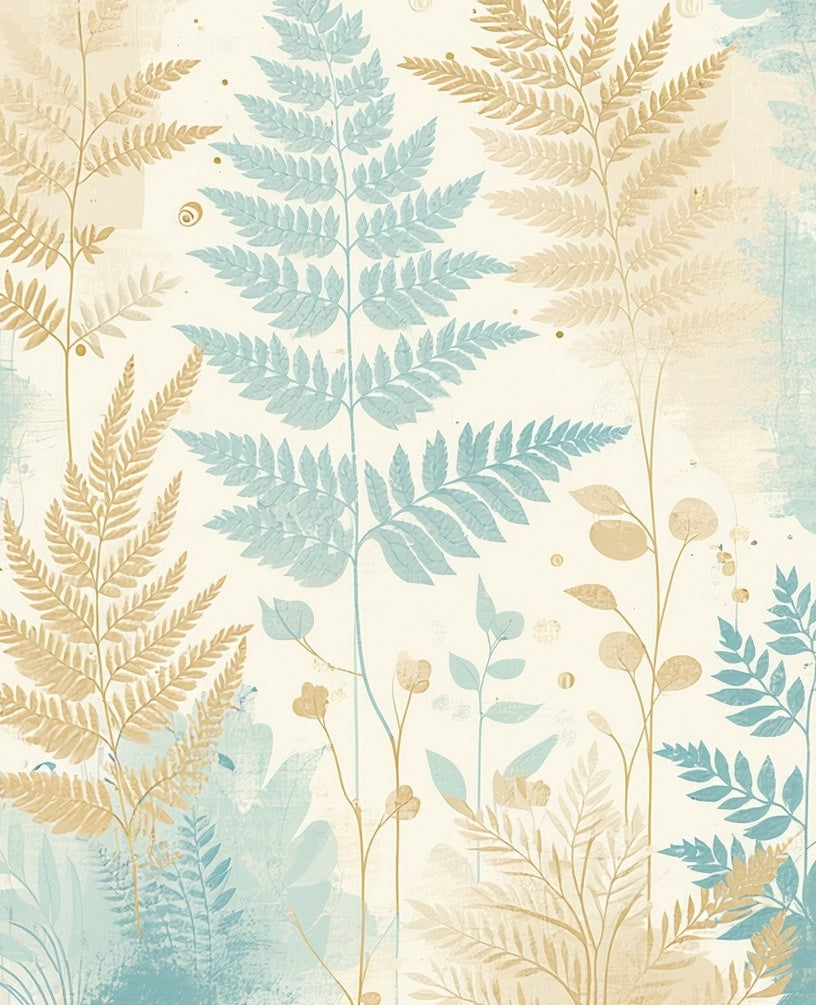 Pastel Harmony with Beige Ferns and Light Blue Abstract Botanical Shapes(Beige)