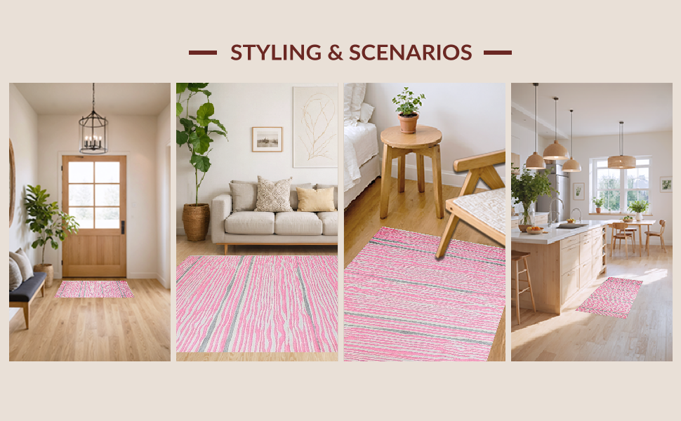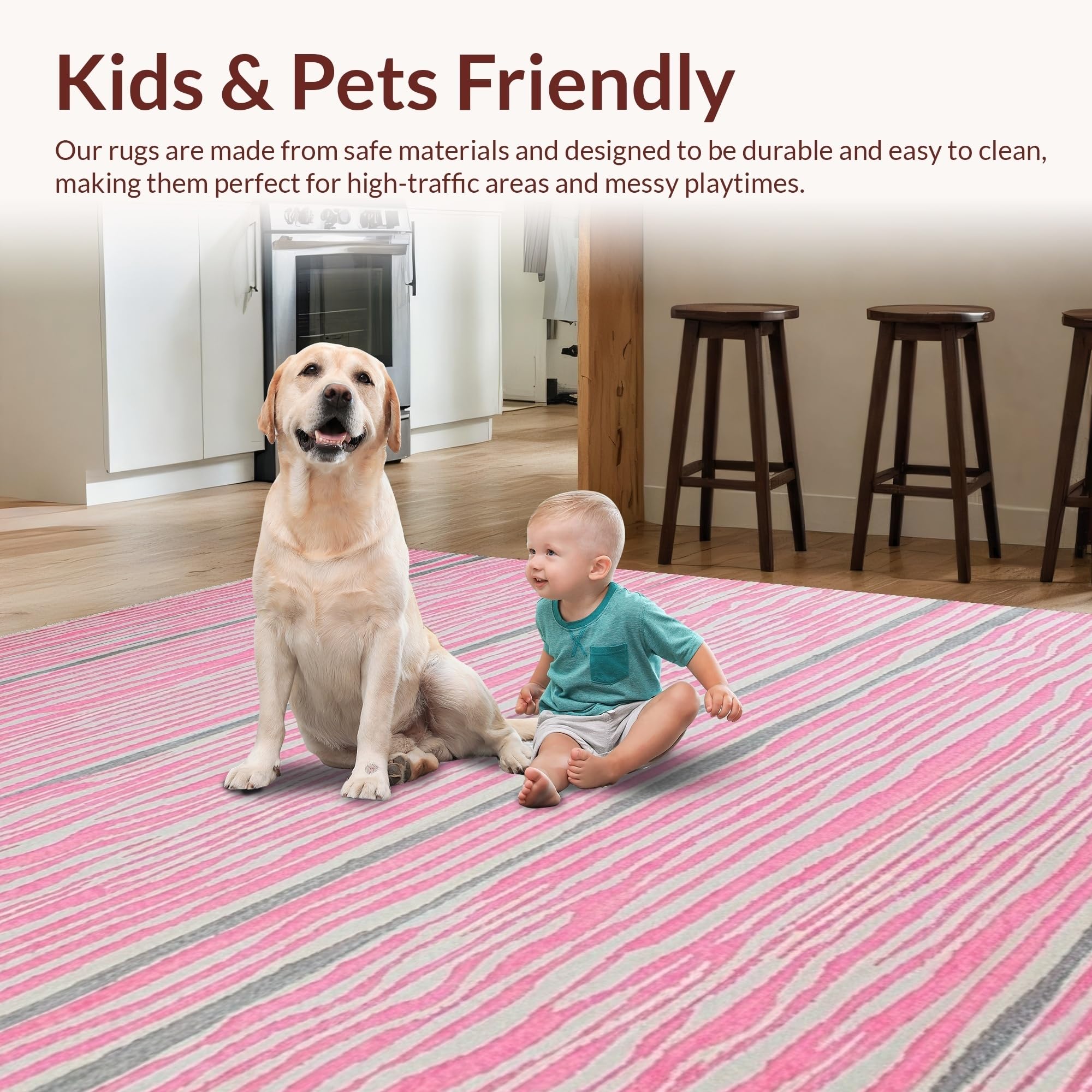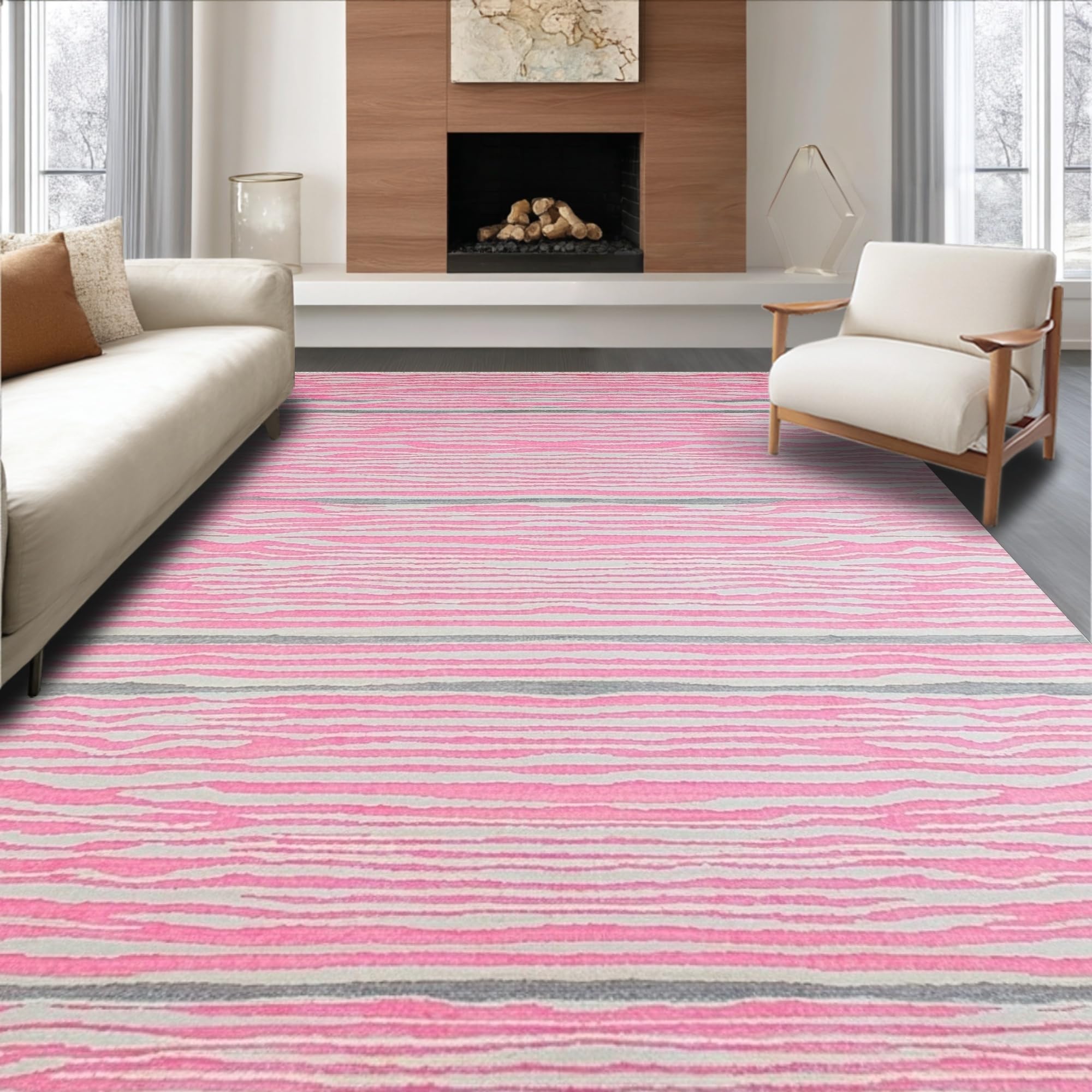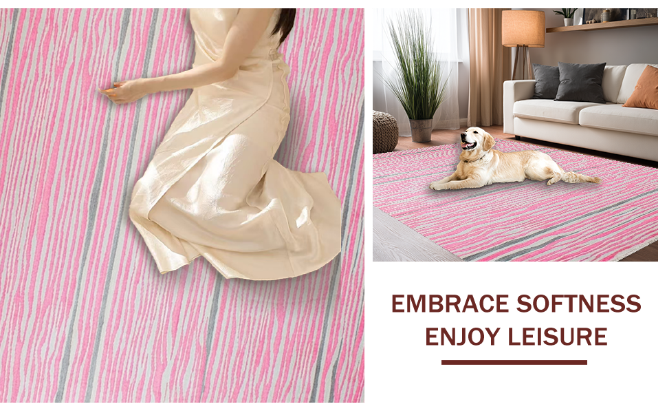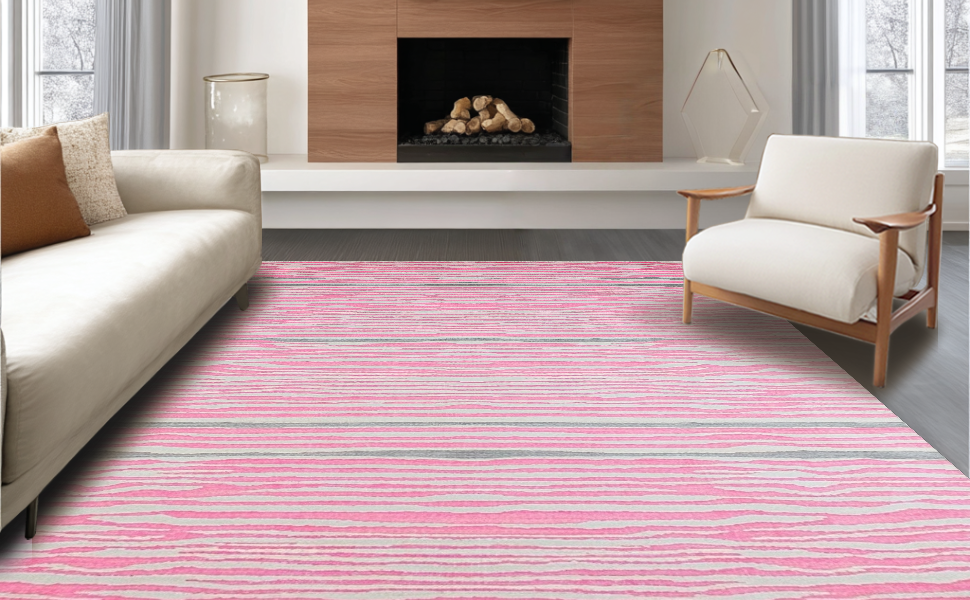 Ultra Soft Area Rug, Non Slip, Stain Resistant, Washable Area Rugs for Living Room, Bedroom, Pastel Pink Striped Elegance(Pink) Overview: