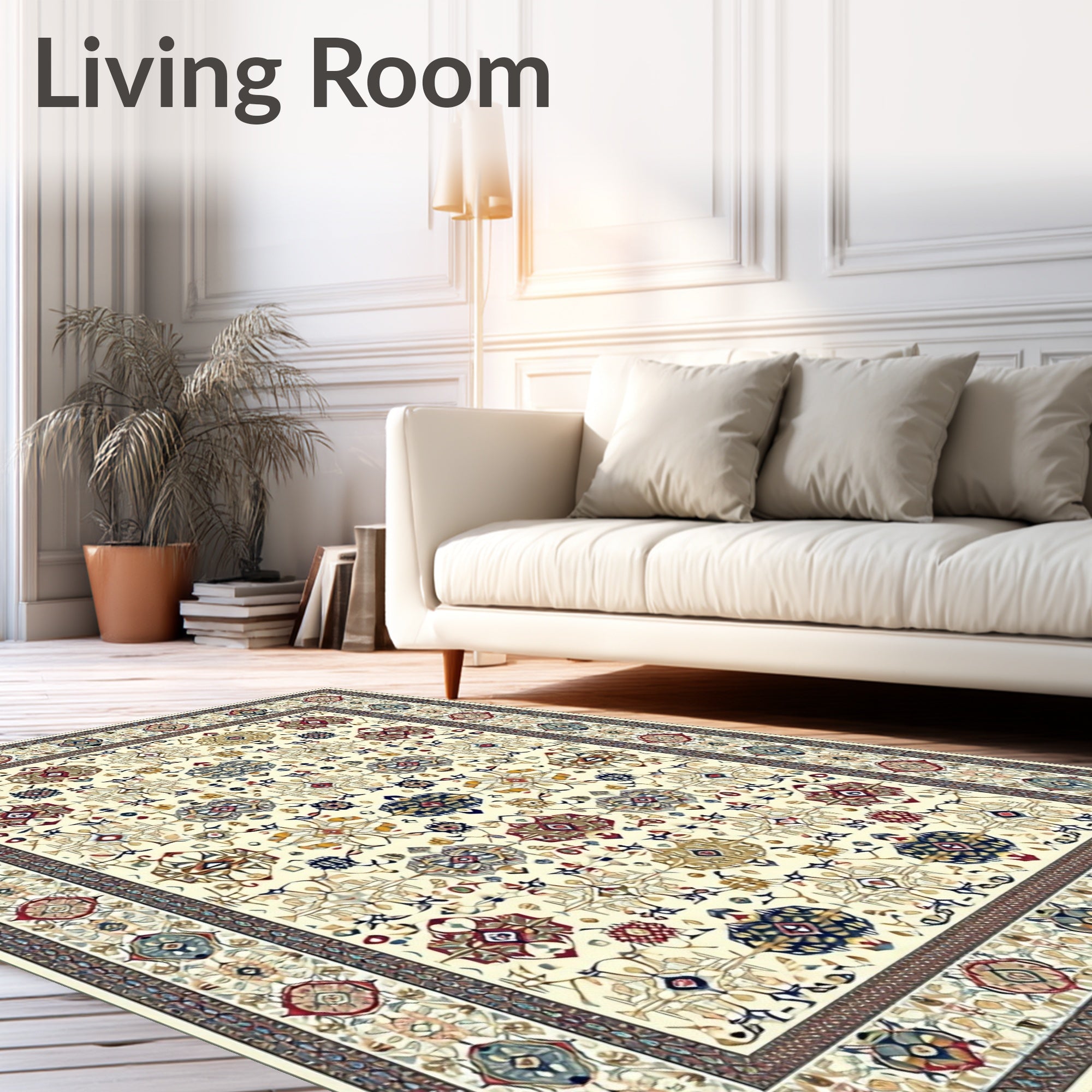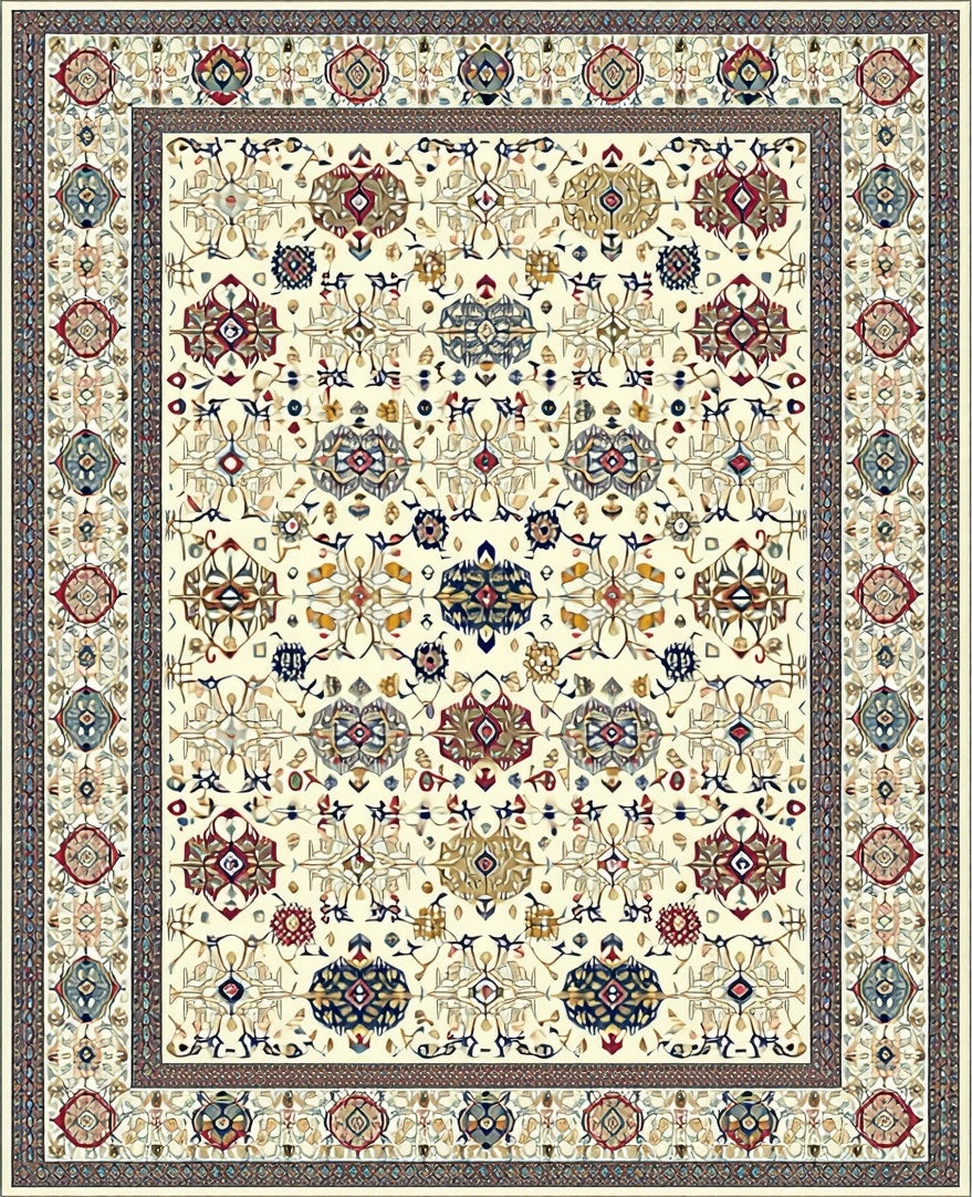 Ultra Soft Area Rug, Non Slip, Stain Resistant, Washable Area Rugs for Living Room, Bedroom, Peaceful Beige Stair Runner Central Asian Textures(Ivory) Overview: