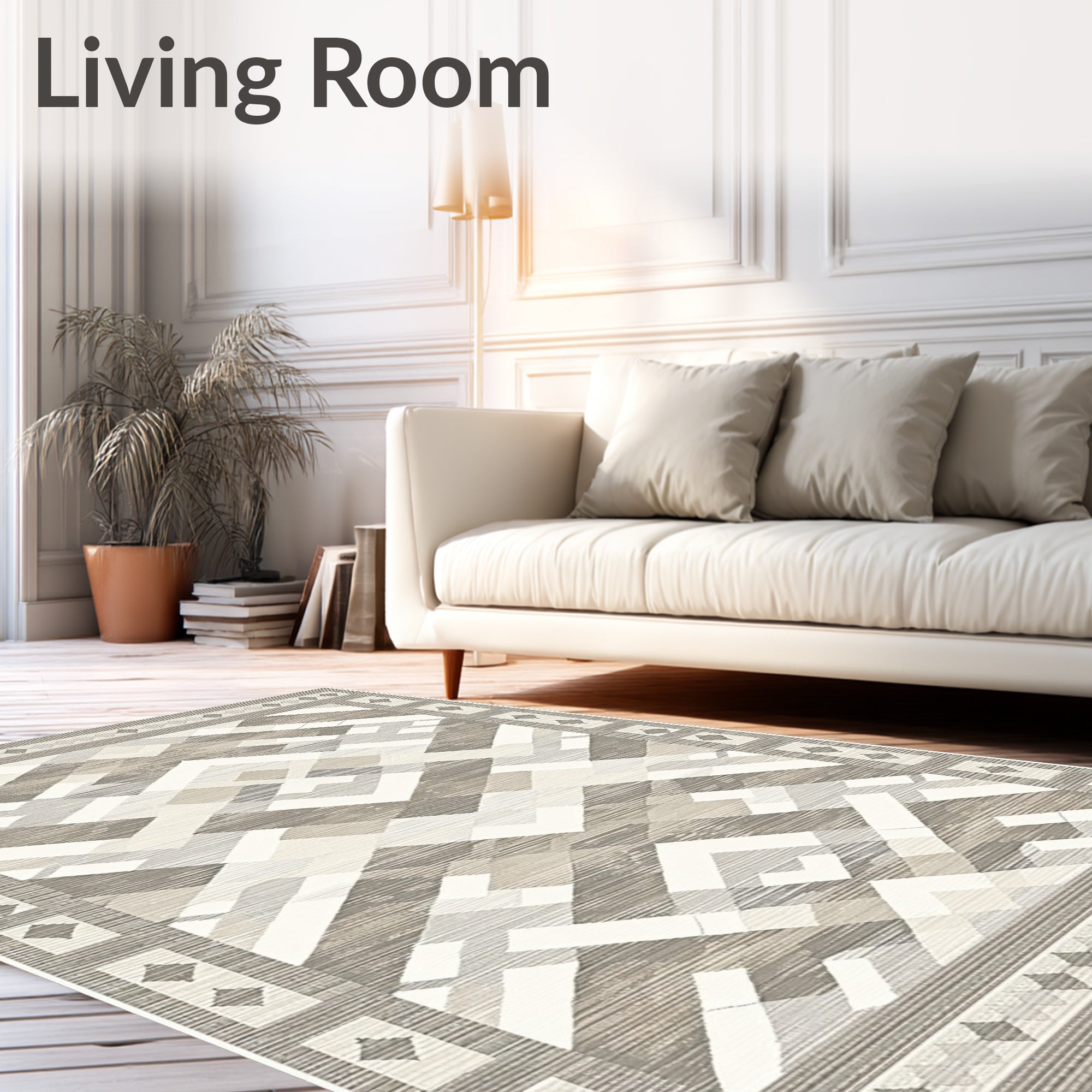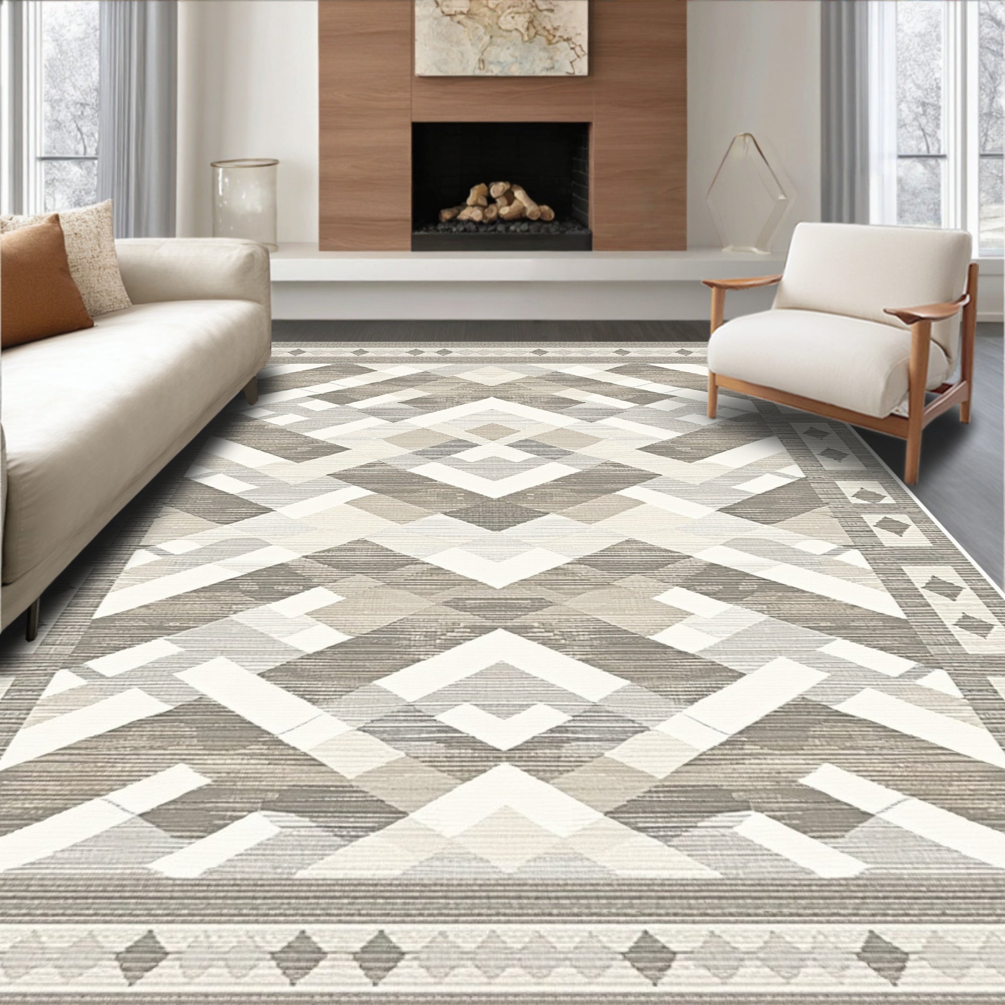 Ultra Soft Area Rug, Non Slip, Stain Resistant, Washable Area Rugs for Living Room, Bedroom, Pet Friendly Geometric Diamond Area With Modern Farmhouse Flair(Beige) Overview: