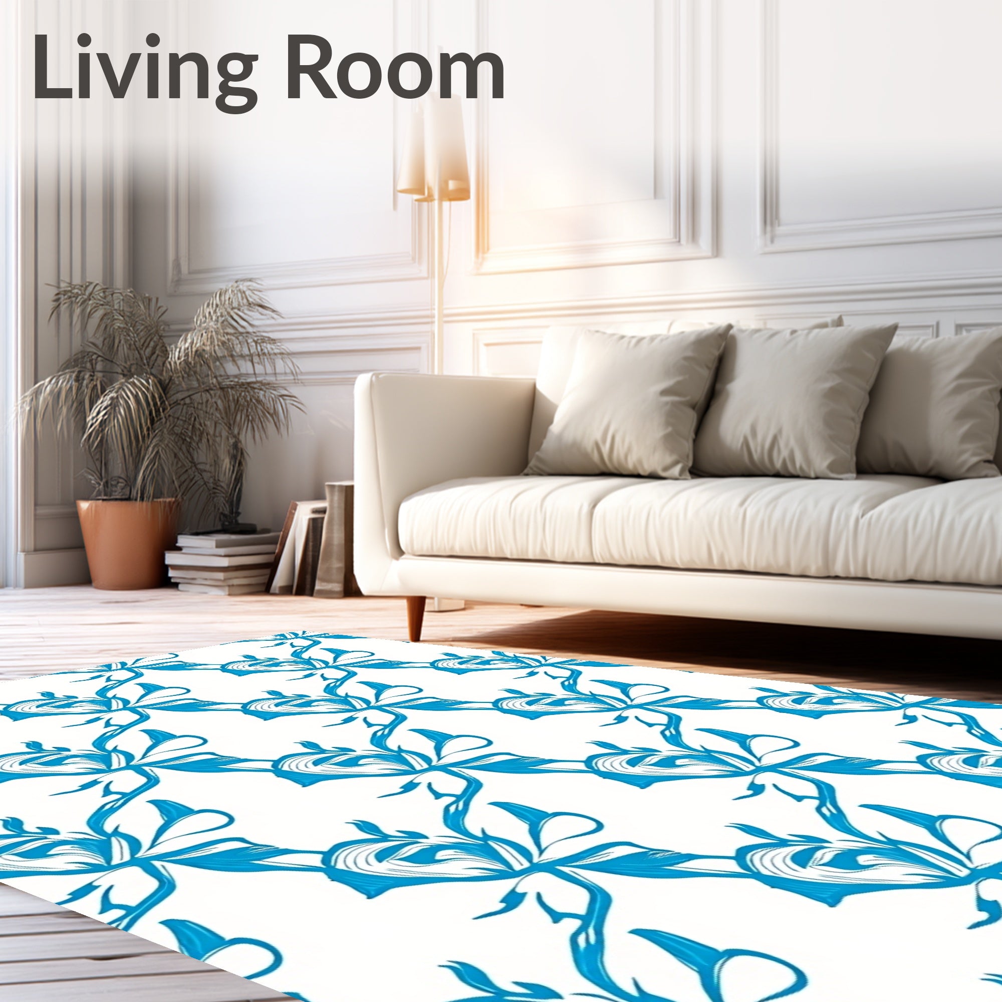 Ultra Soft Area Rug, Non Slip, Stain Resistant, Washable Area Rugs for Living Room, Bedroom, Petal Bloom Cascade Elegant Floral Accent(Blue) Overview: