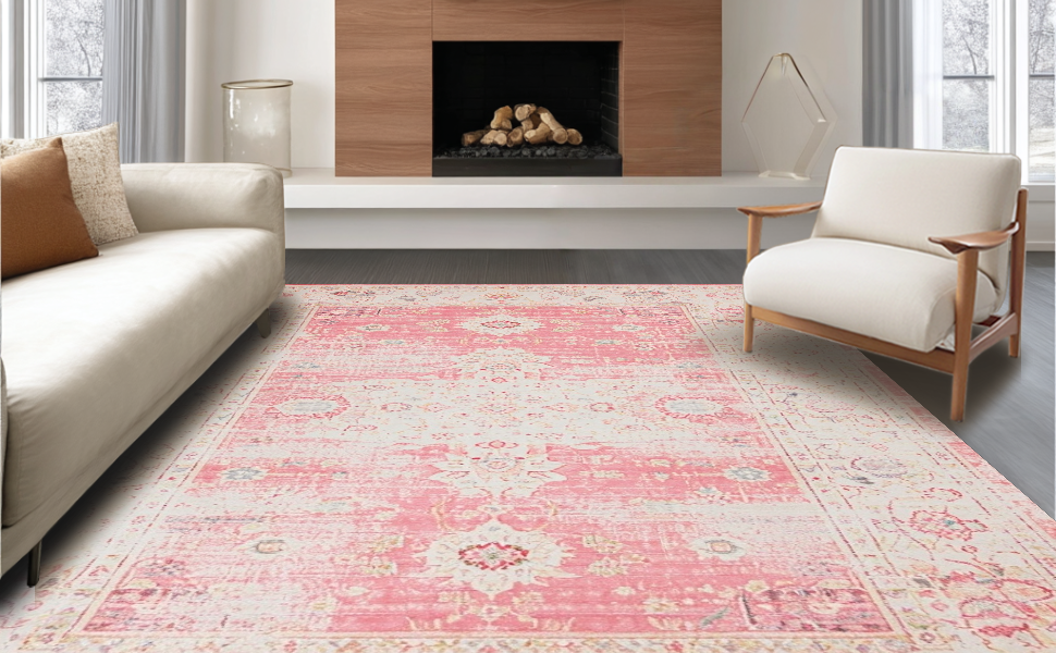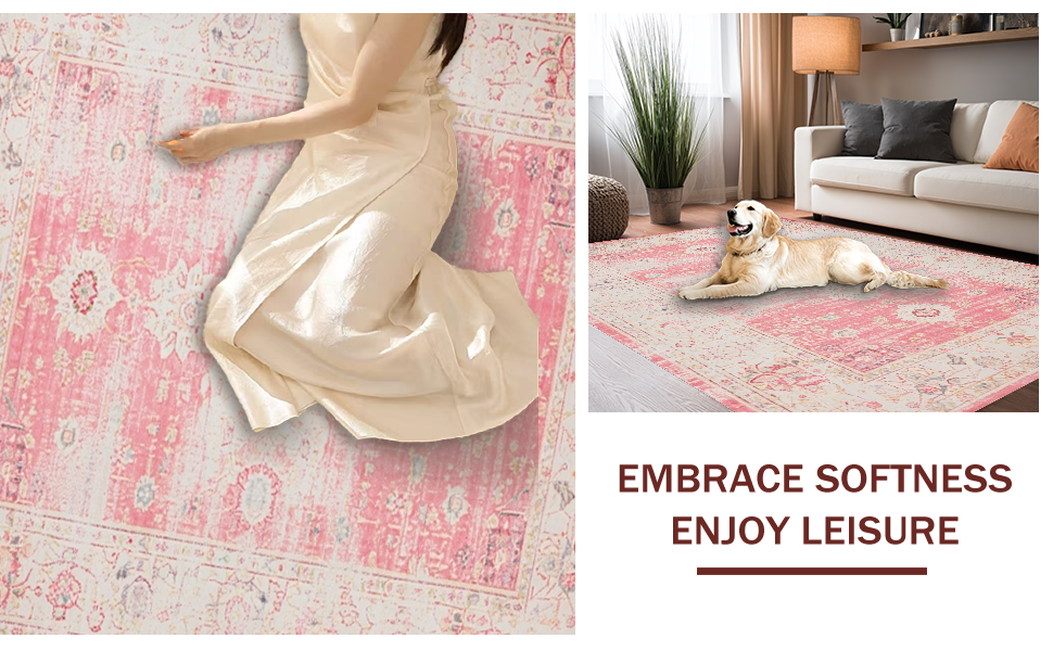 Ultra Soft Area Rug, Non Slip, Stain Resistant, Washable Area Rugs for Living Room, Bedroom, Playful Abstract Colorful Display(Pink) Overview: