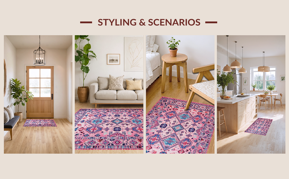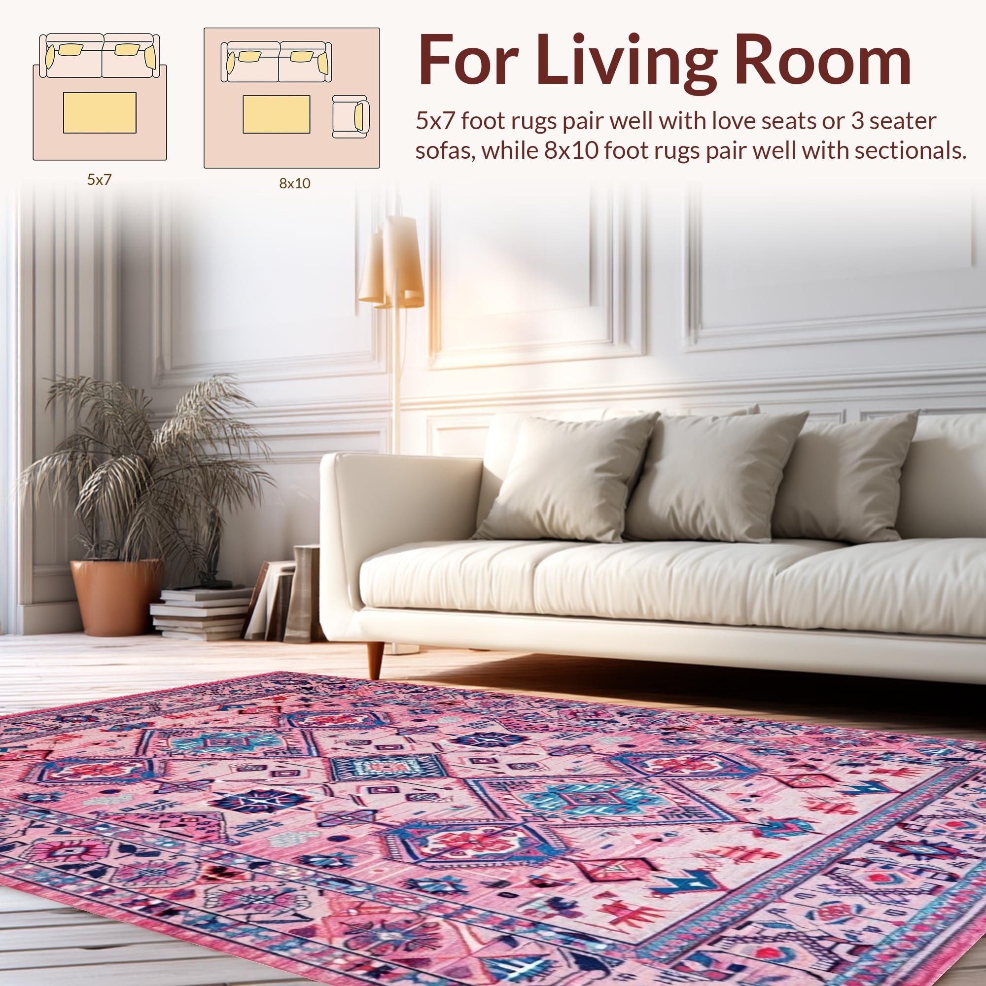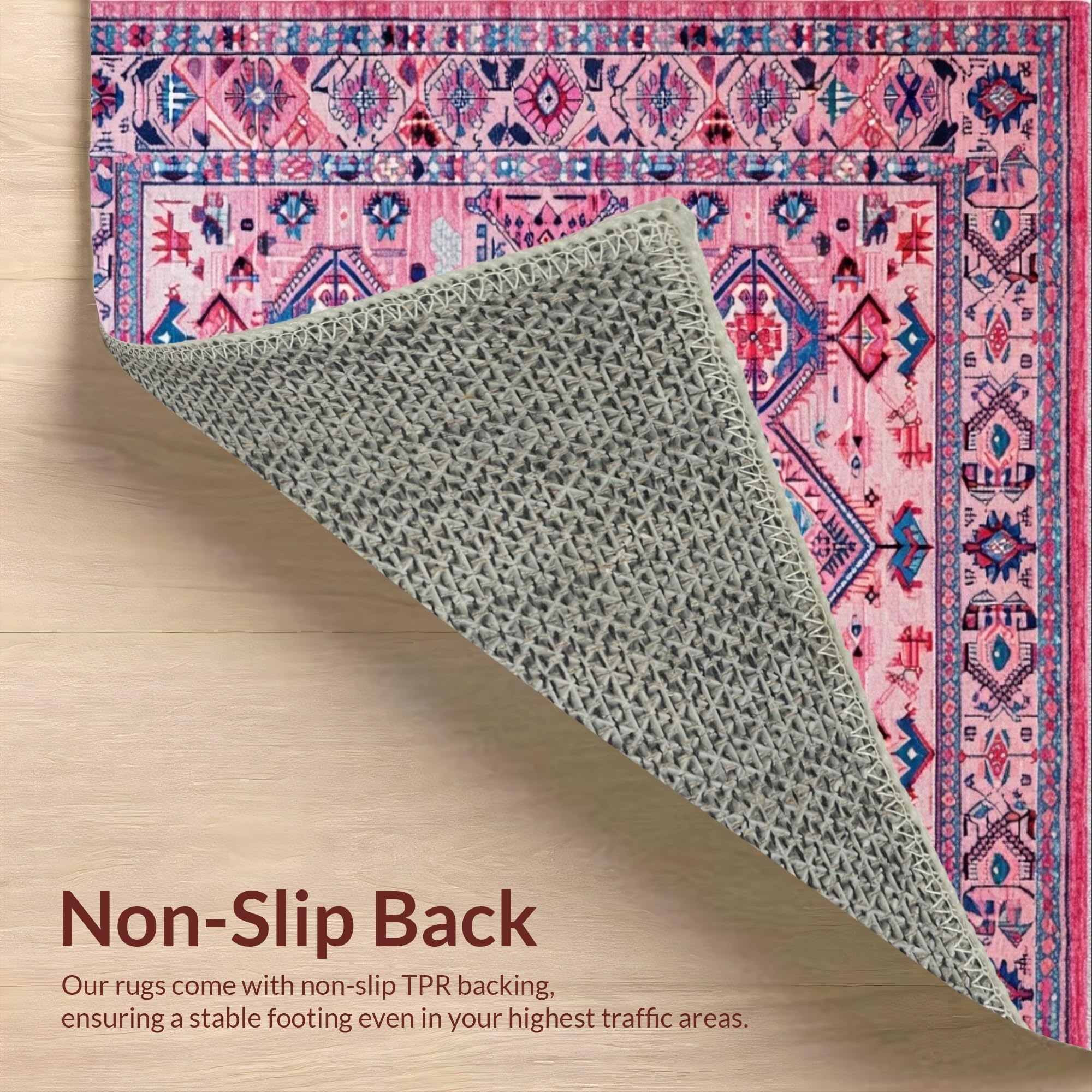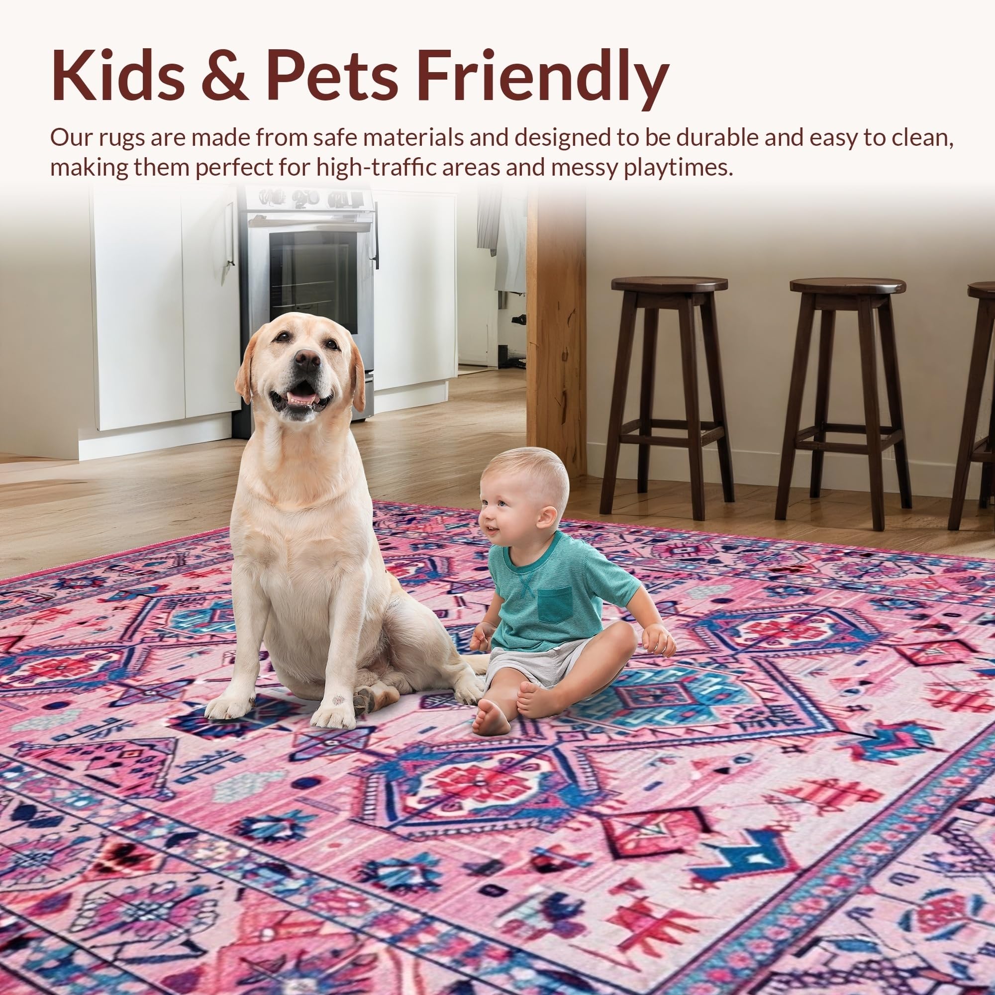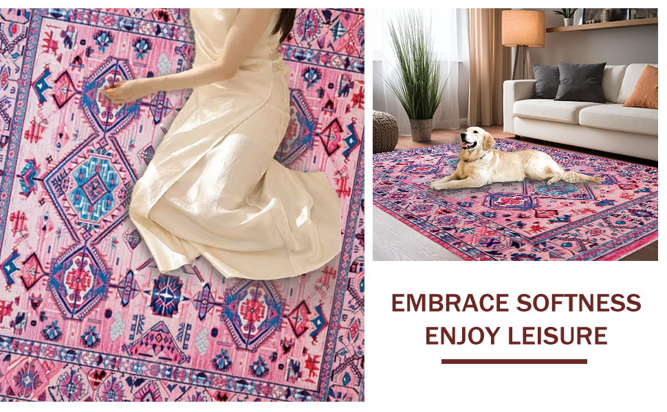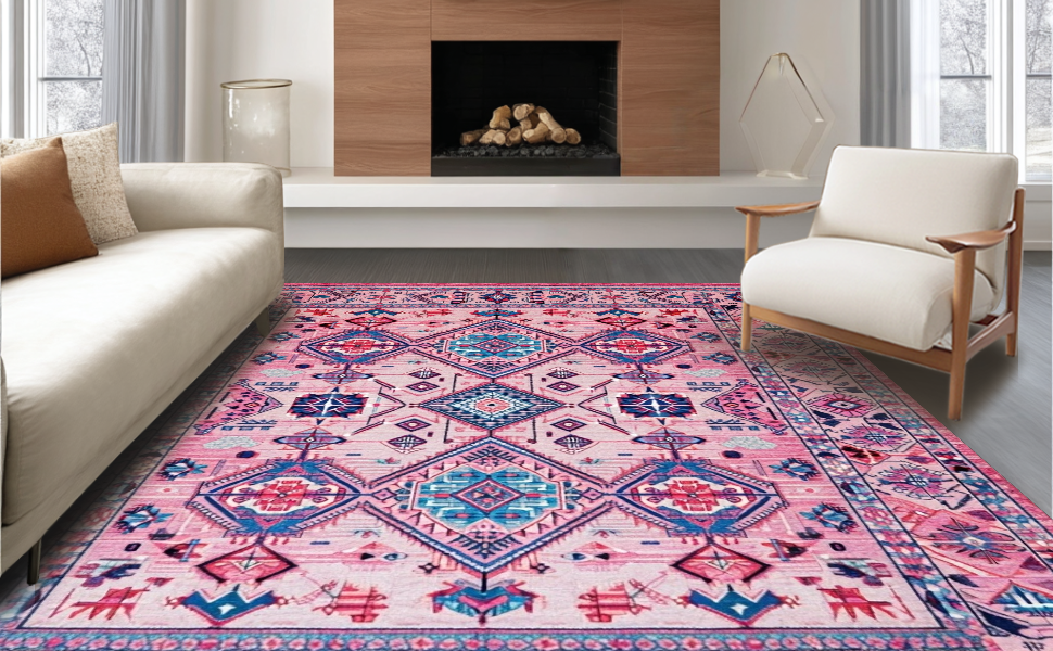 Ultra Soft Area Rug, Non Slip, Stain Resistant, Washable Area Rugs for Living Room, Bedroom, Playful Abstract Floral Arrangement(Pink) Overview: