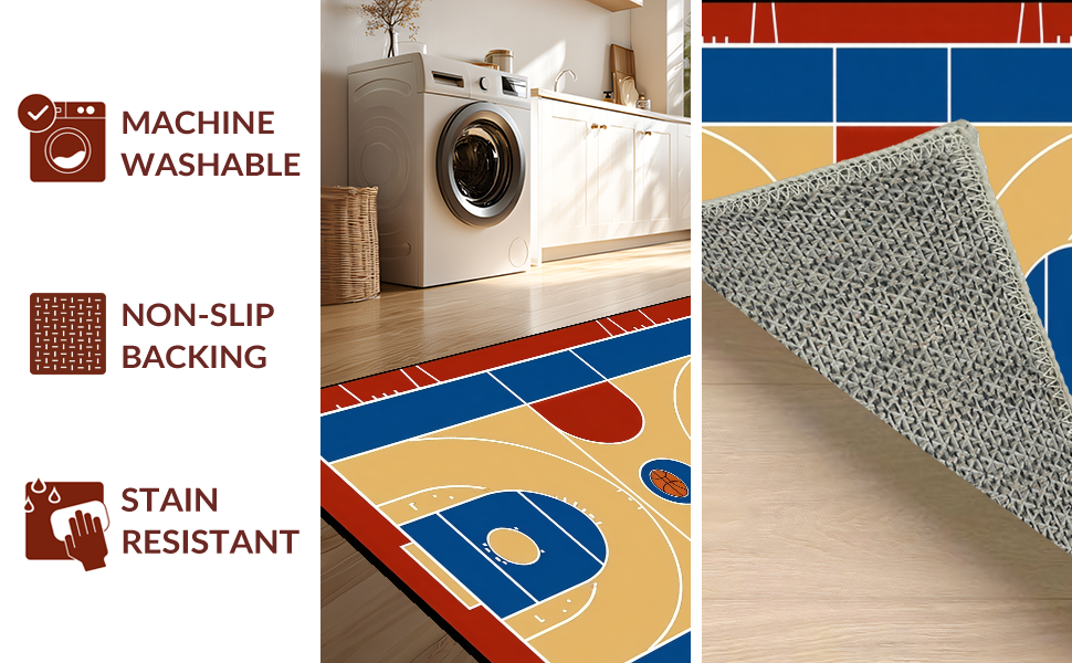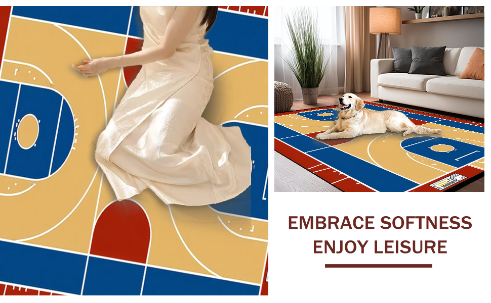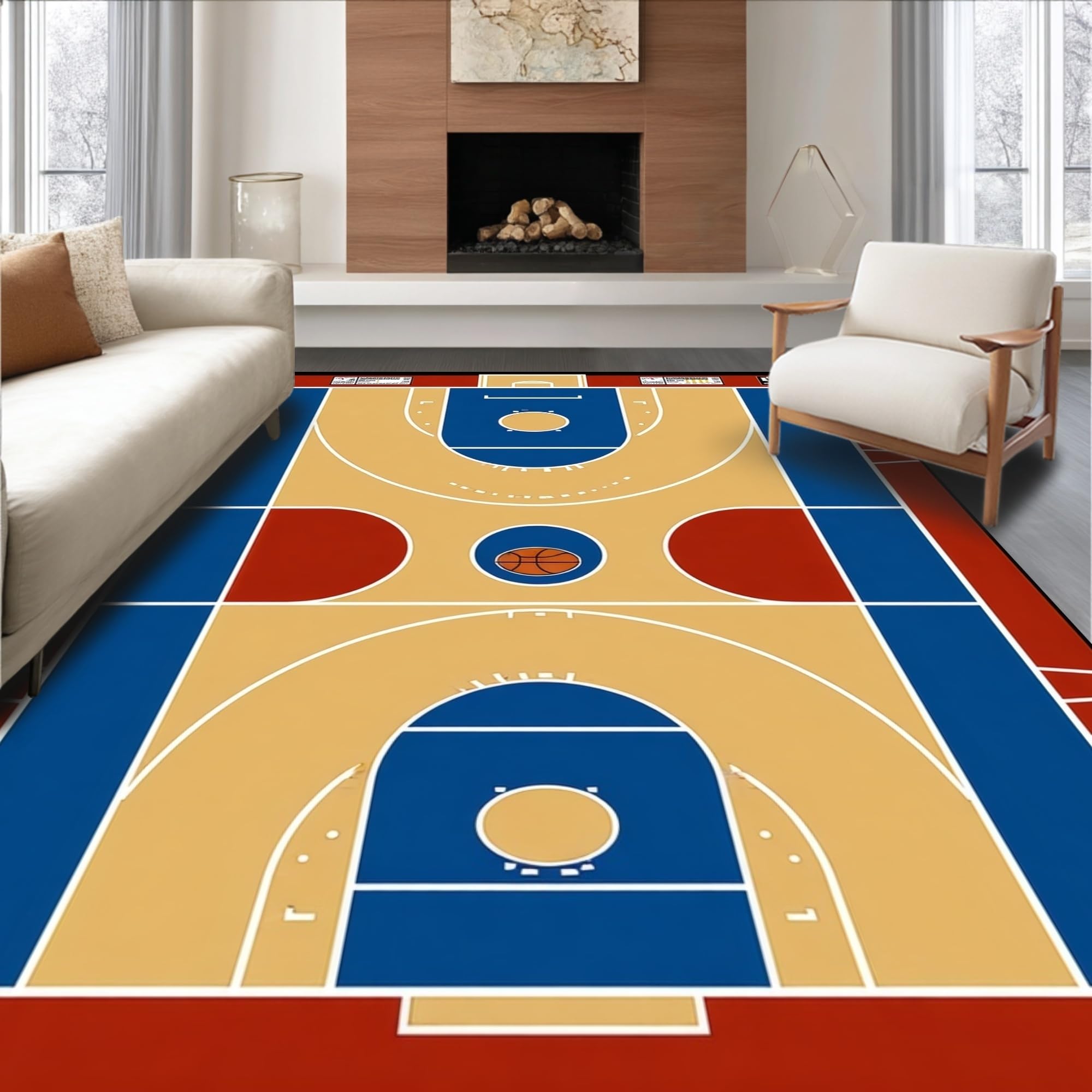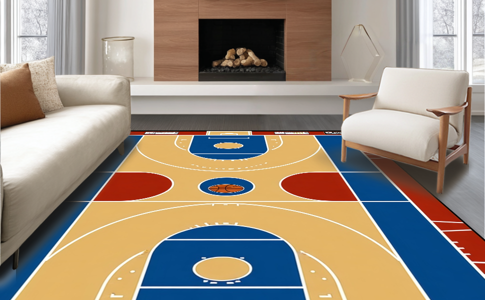 Ultra Soft Area Rug, Non Slip, Stain Resistant, Washable Area Rugs for Living Room, Bedroom, Playful Basketball-Inspired Graphics(Brown) Overview: