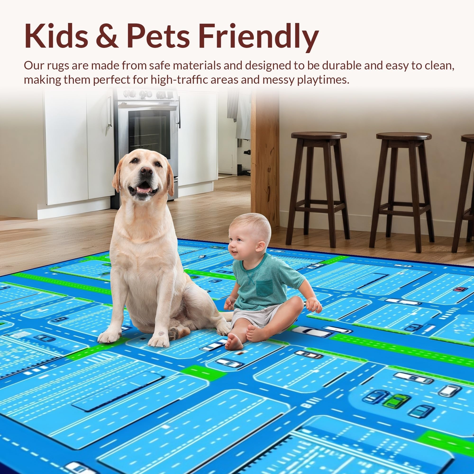 Ultra Soft Area Rug, Non Slip, Stain Resistant, Washable Area Rugs for Living Room, Bedroom, Playful Cartoonish City Scene Rug(Blue) Overview: