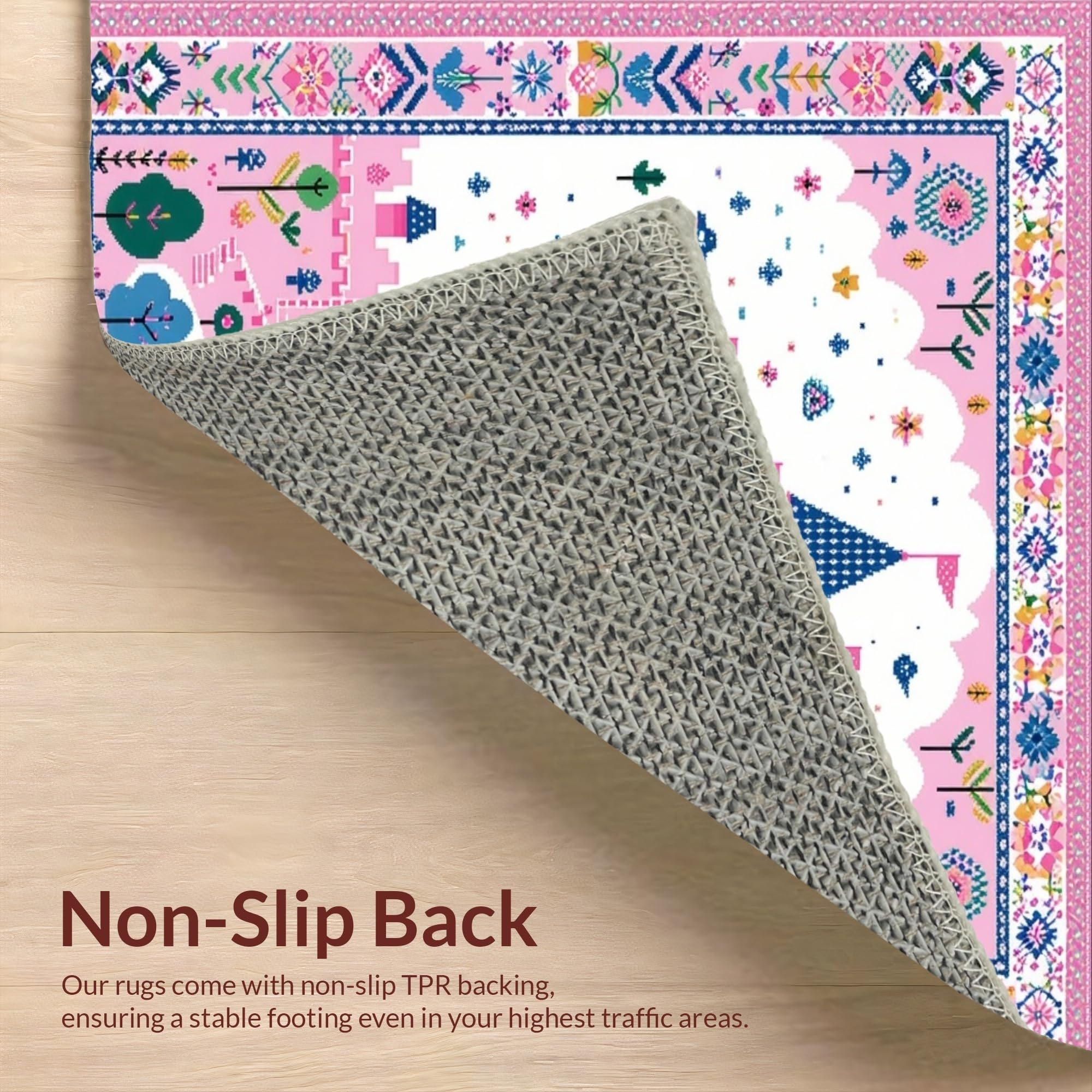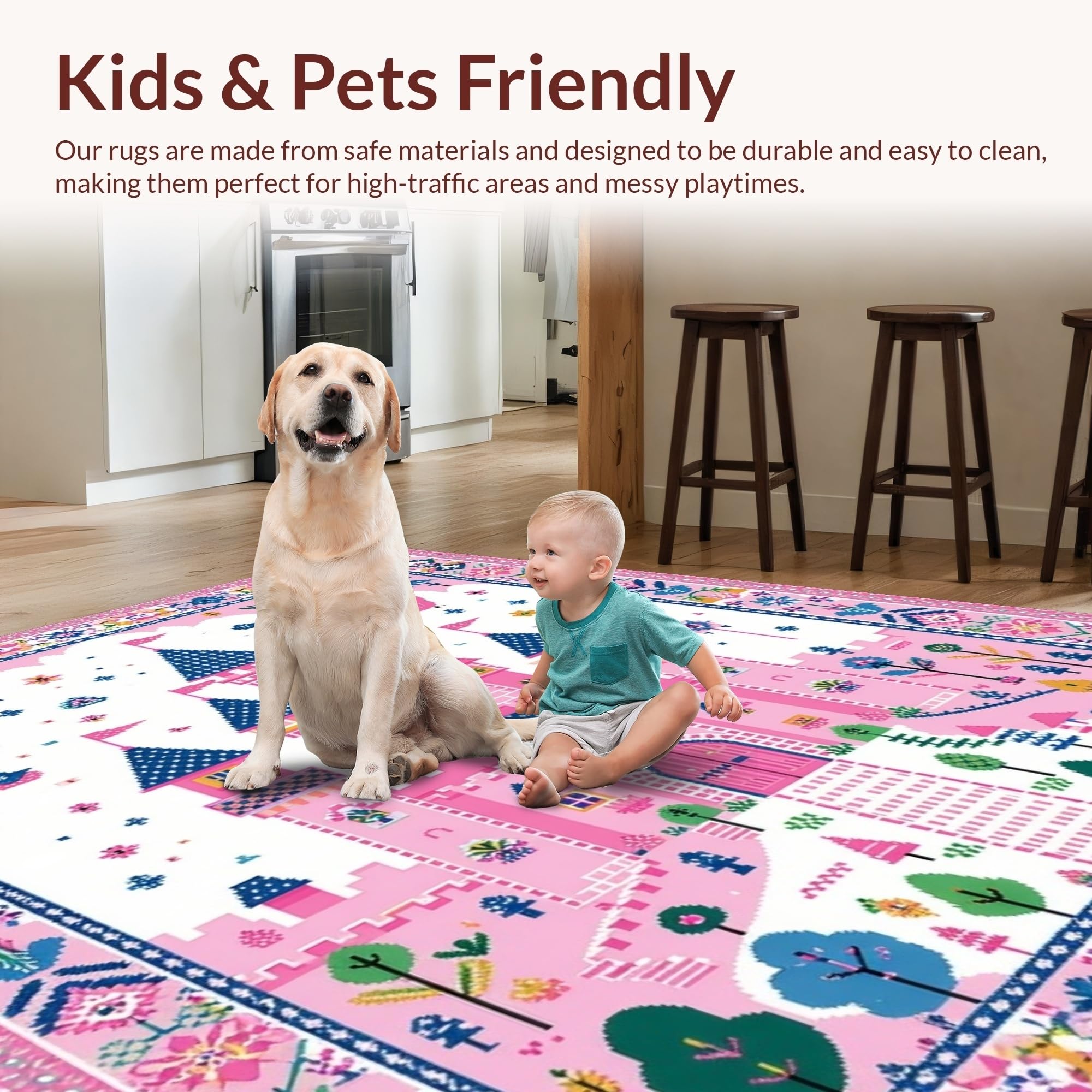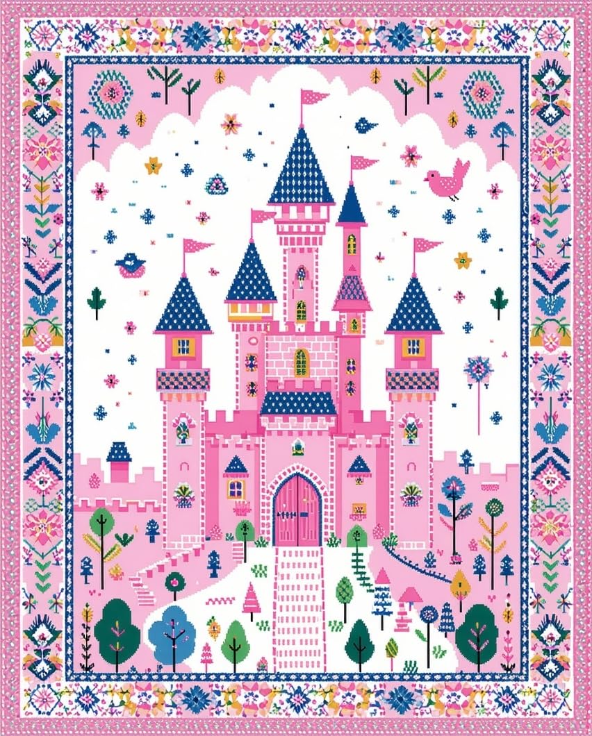Ultra Soft Area Rug, Non Slip, Stain Resistant, Washable Area Rugs for Living Room, Bedroom, Playful Castle Themed Aesthetic(Pink) Overview: