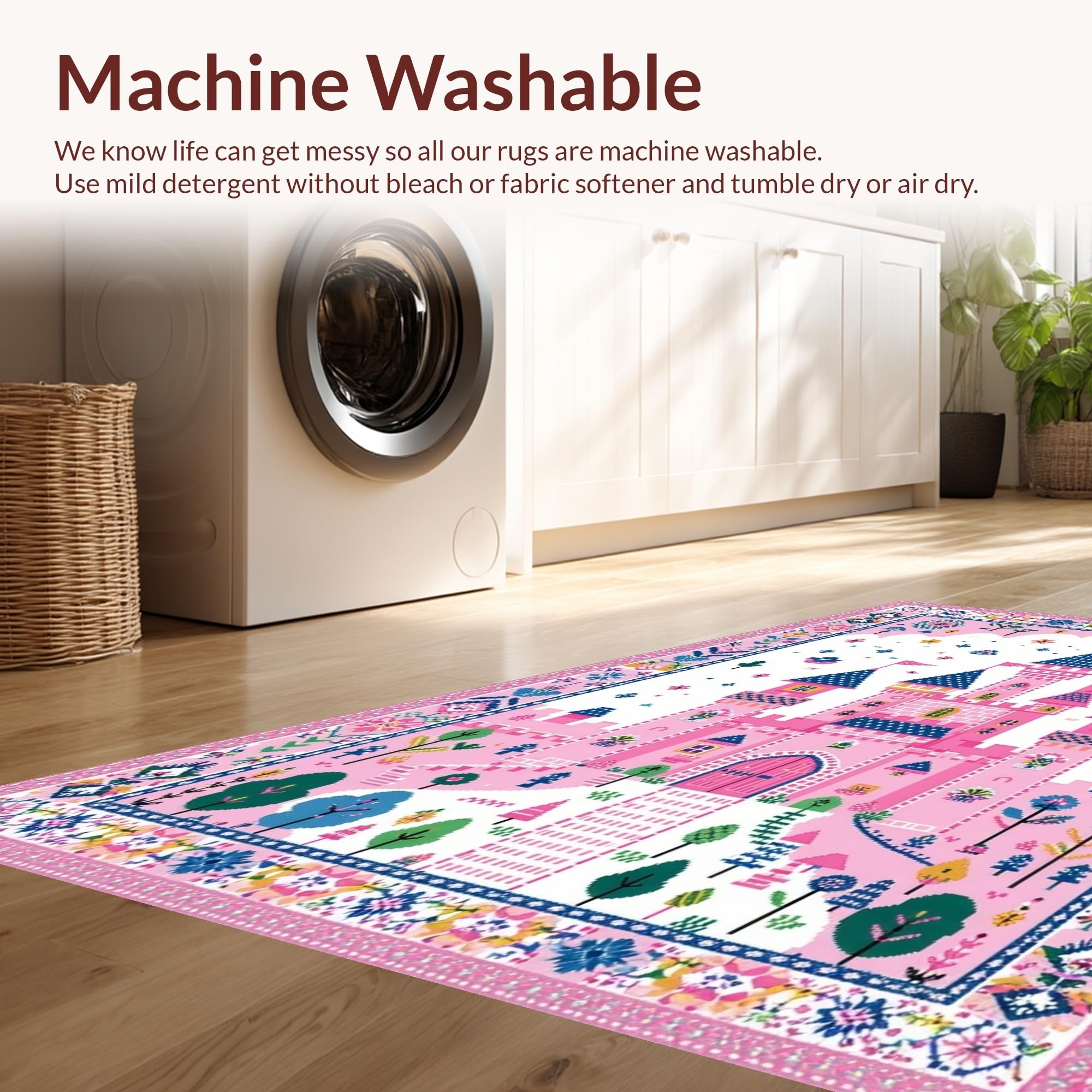 - Machine Washable: Our rugs can be easily thrown in the wash machine.