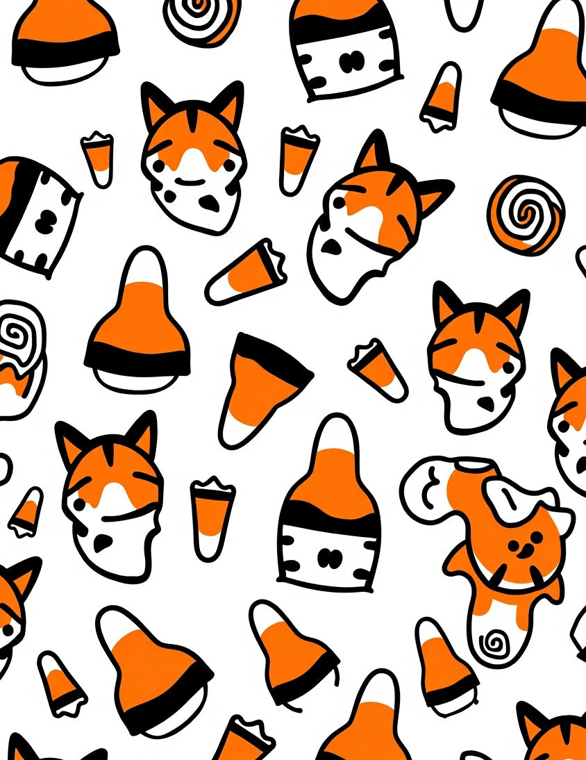 Playful Cat Doodles with Abstract Animal Inspired Design and Corn Accents(Orange)