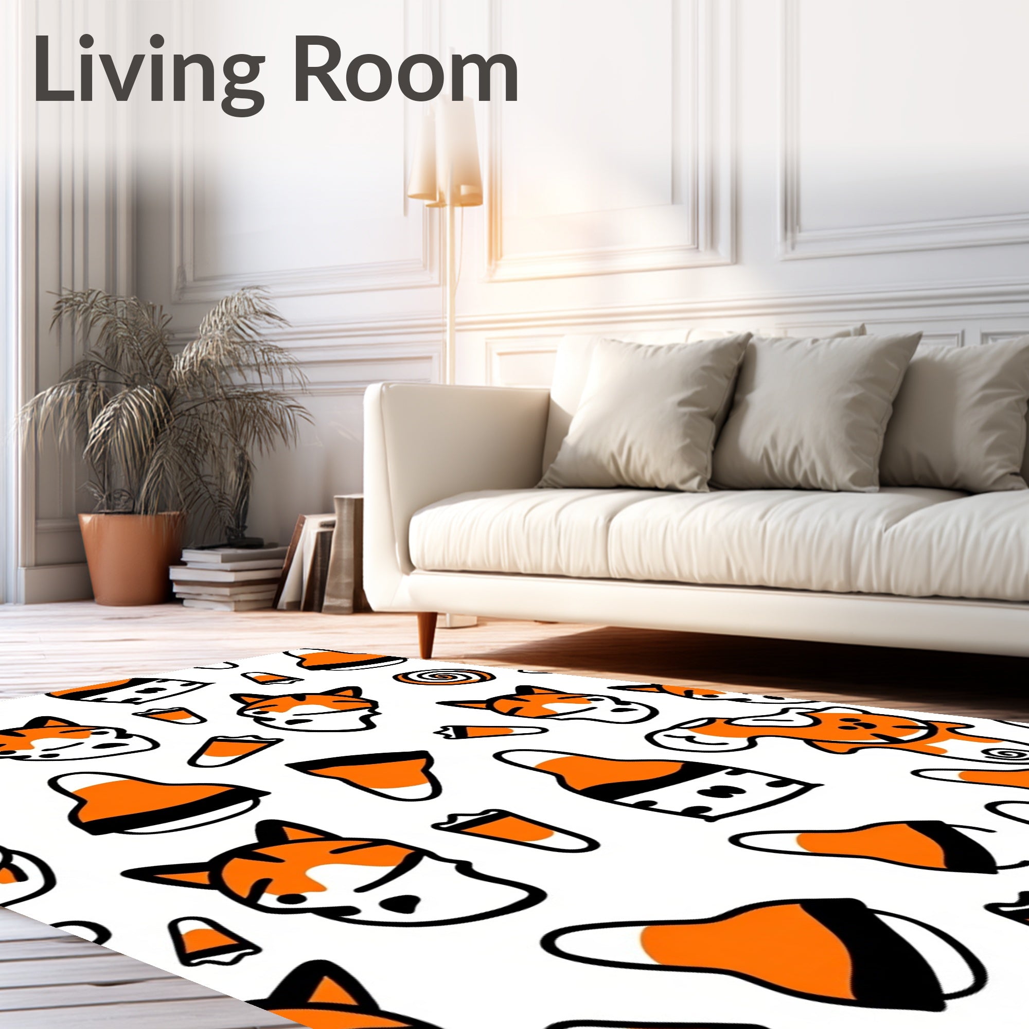 Ultra Soft Area Rug, Non Slip, Stain Resistant, Washable Area Rugs for Living Room, Bedroom, Playful Cat Doodles with Abstract Animal Inspired Design and Corn Accents(Orange) Overview: