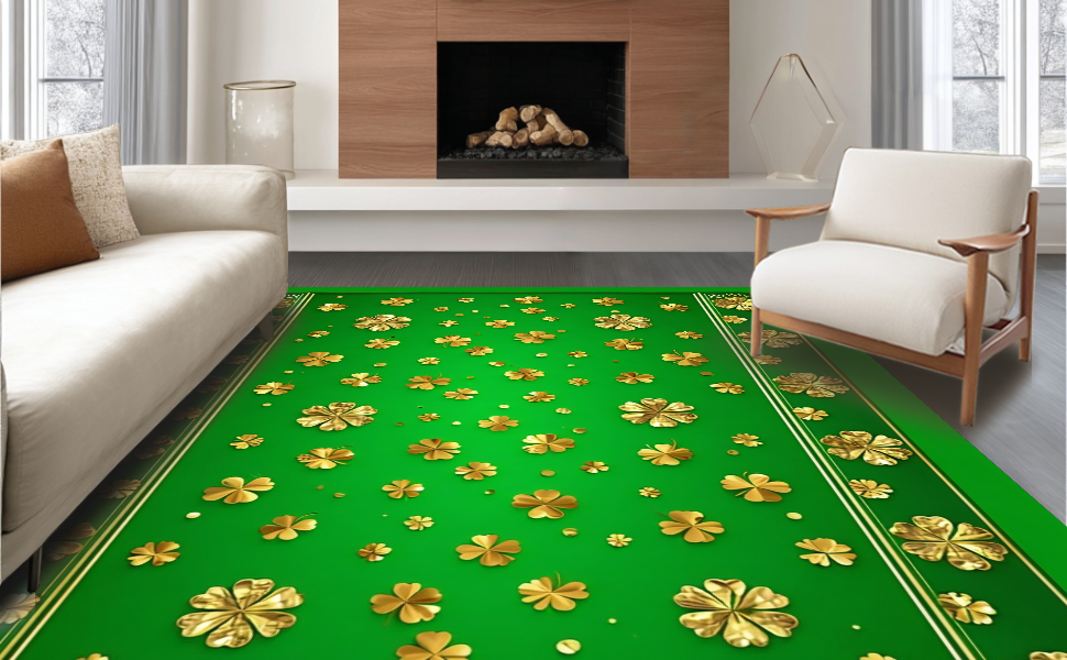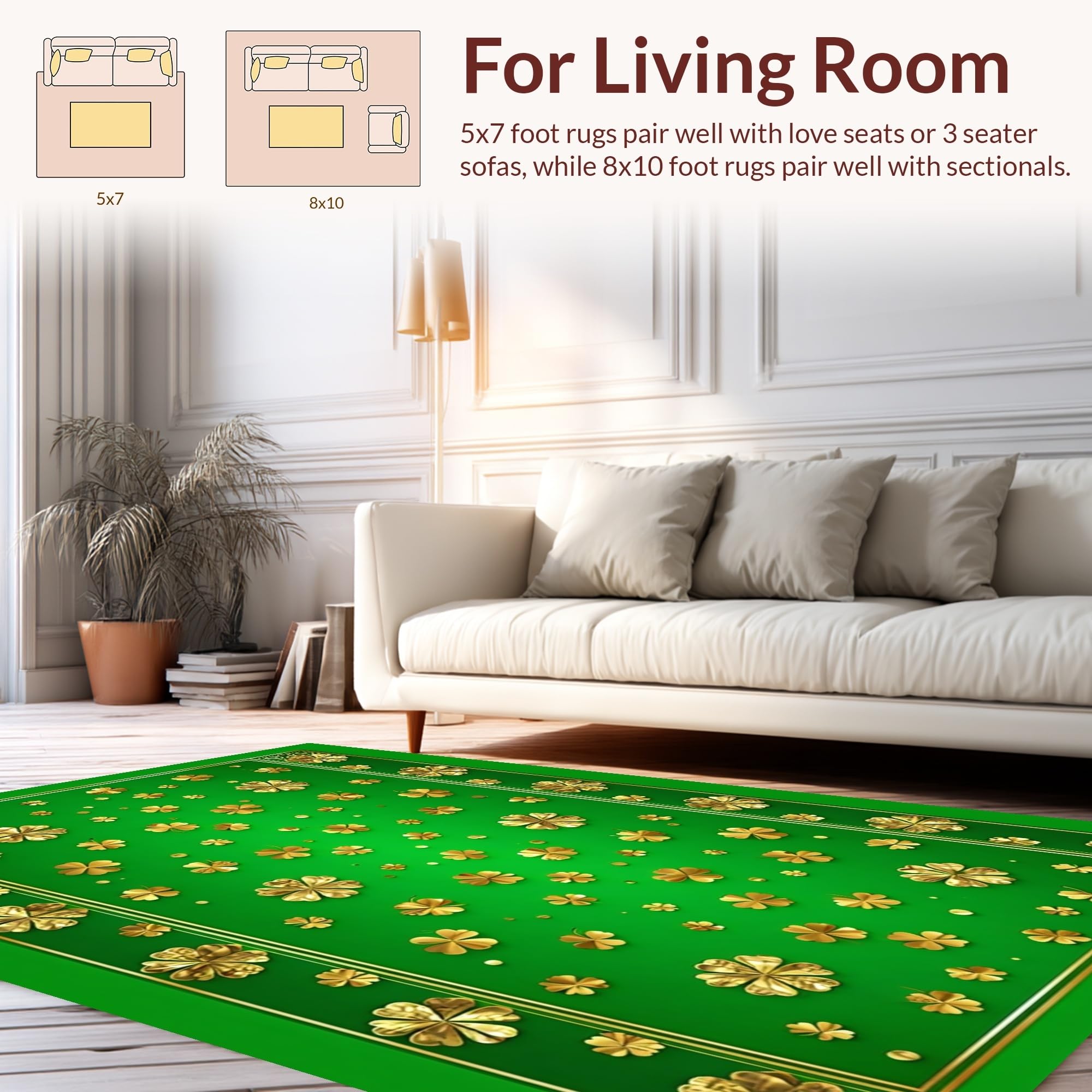 Ultra Soft Area Rug, Non Slip, Stain Resistant, Washable Area Rugs for Living Room, Bedroom, Playful Celtic Knot Visual Theme(Green) Overview: